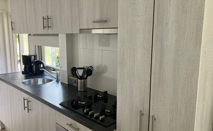 Mobilehome 2+2 is een vrijstaand, gelijkvloers chalet die plaats biedt aan 4 personen. De woonkamer is voorzien van een zithoek met televisie en een aparte eethoek. In de open keuken is onder andere een waterkoker en koffiezetapparaat aanwezig. Dit chalet heeft 2 slaapkamers, 1 slaapkamer met tweepersoonsbed en 1 slaapkamer met een stapelbed. Daarnaast is er een badkamer met douche en toilet aanwezig. Buiten vind je een gemeubileerd terras en parkeergelegenheid voor 1 auto.