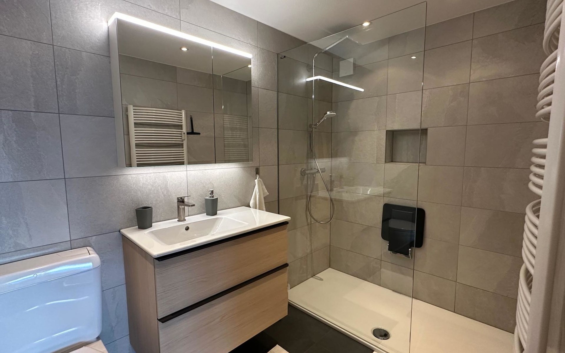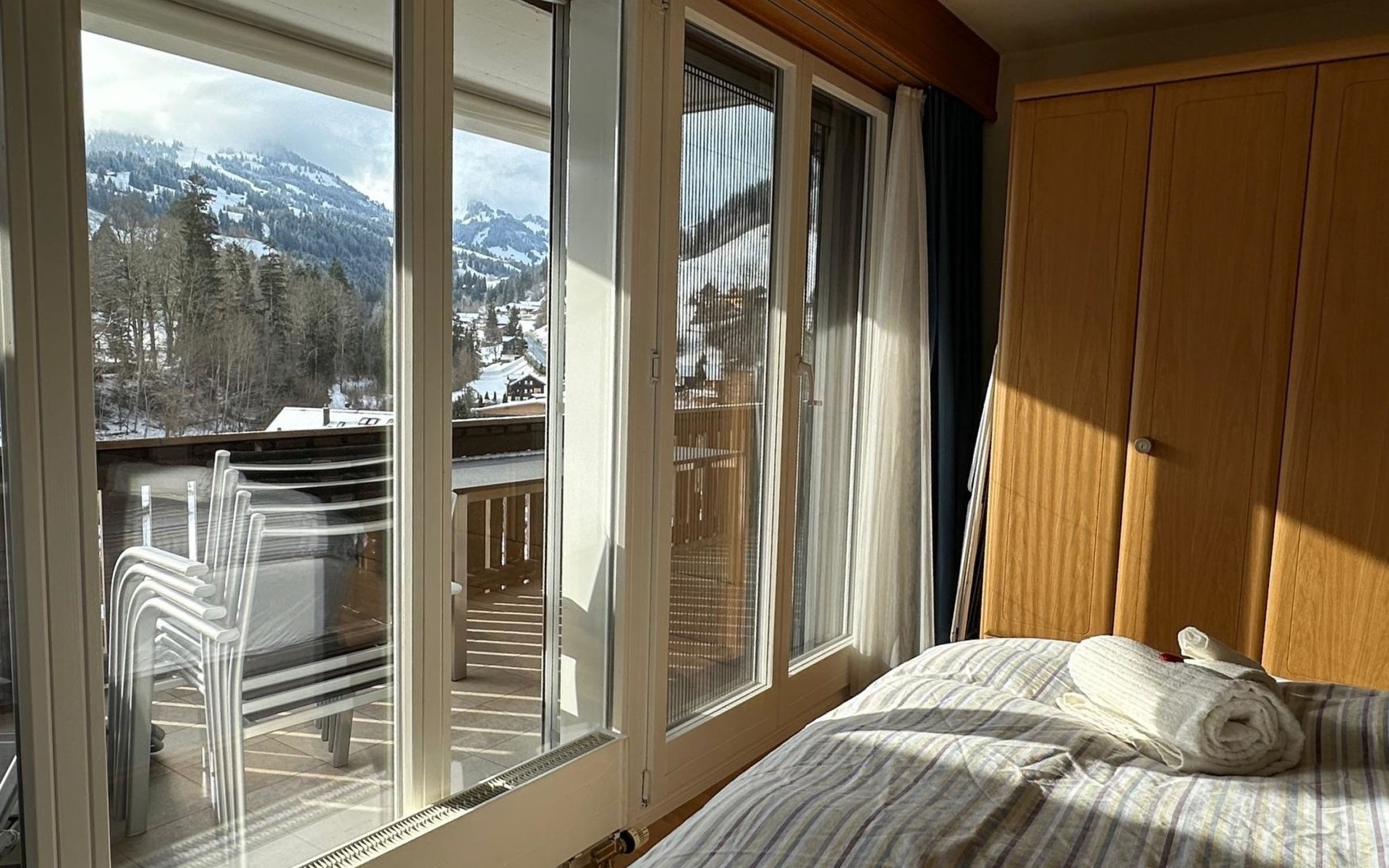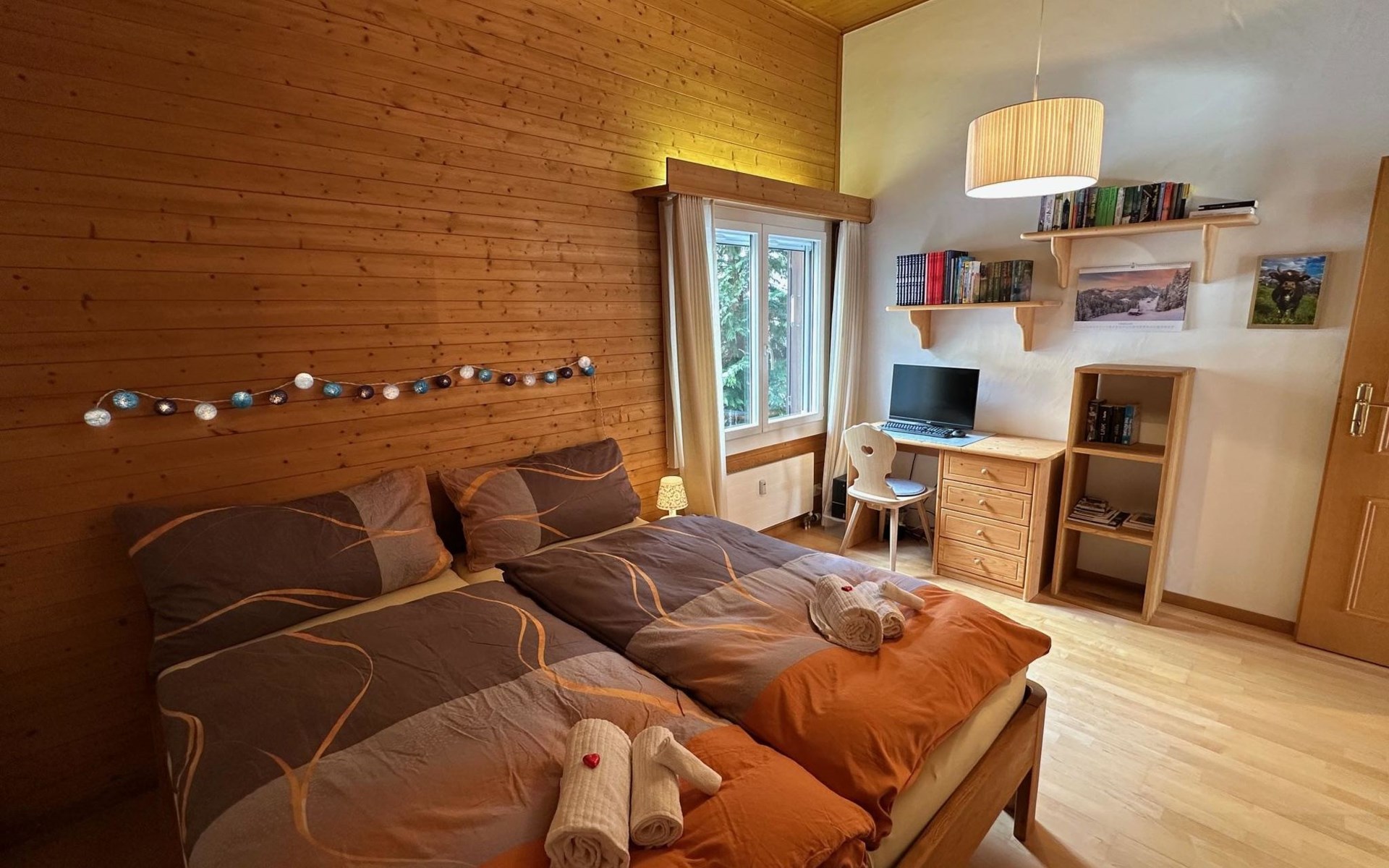 4.5 room apartment on the 1st floor with separte kitchen, 3 bathrooms (2 of which renovated in 2024), dining table for max. 10 people, large balcony. Net living space: 110 sqm living space and 18 sqm balcony. Standard: High-quality fit-out standard following various renovations stages. Furnishings and inventory: Apartment with hight-quality furnishings and complete house inventory, also of high quality. TV/Multimedia: Swisscom connection. SONOS internet radio in every room (can only be controlled via app). Flatscreen TV (swivels towards the dining table). Alll windows and balcony doors with insect screens. 3 skylights. Electric sun blinds. 2 WC's with walk-in showers incl. rain shower. Wardrobes in all bedrooms. Balcony with table and 4 chairs. 2 automatic large sun blinds on the balcony. 3 bedrooms: double bed (160x200cm), double bed (160x200cm) and double bed (2x90x200). Smoking is allowed on the balcony. ***The wood-burning stove in the living room as well as the BBQ barbecue on the balcony is reserved exclusively for the host and is not available for guests to use***