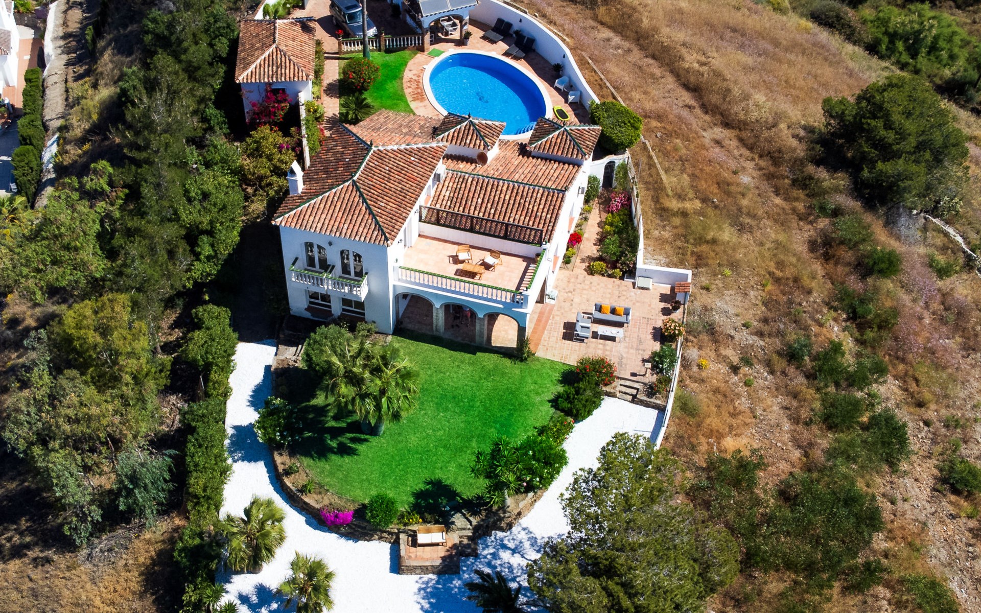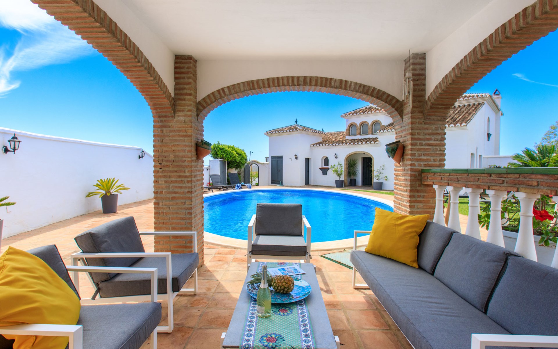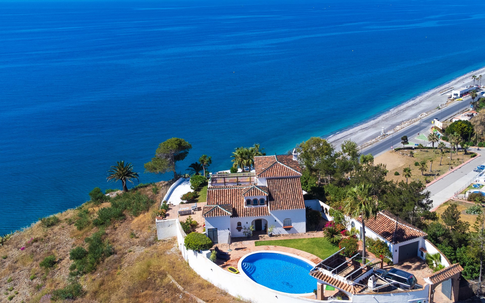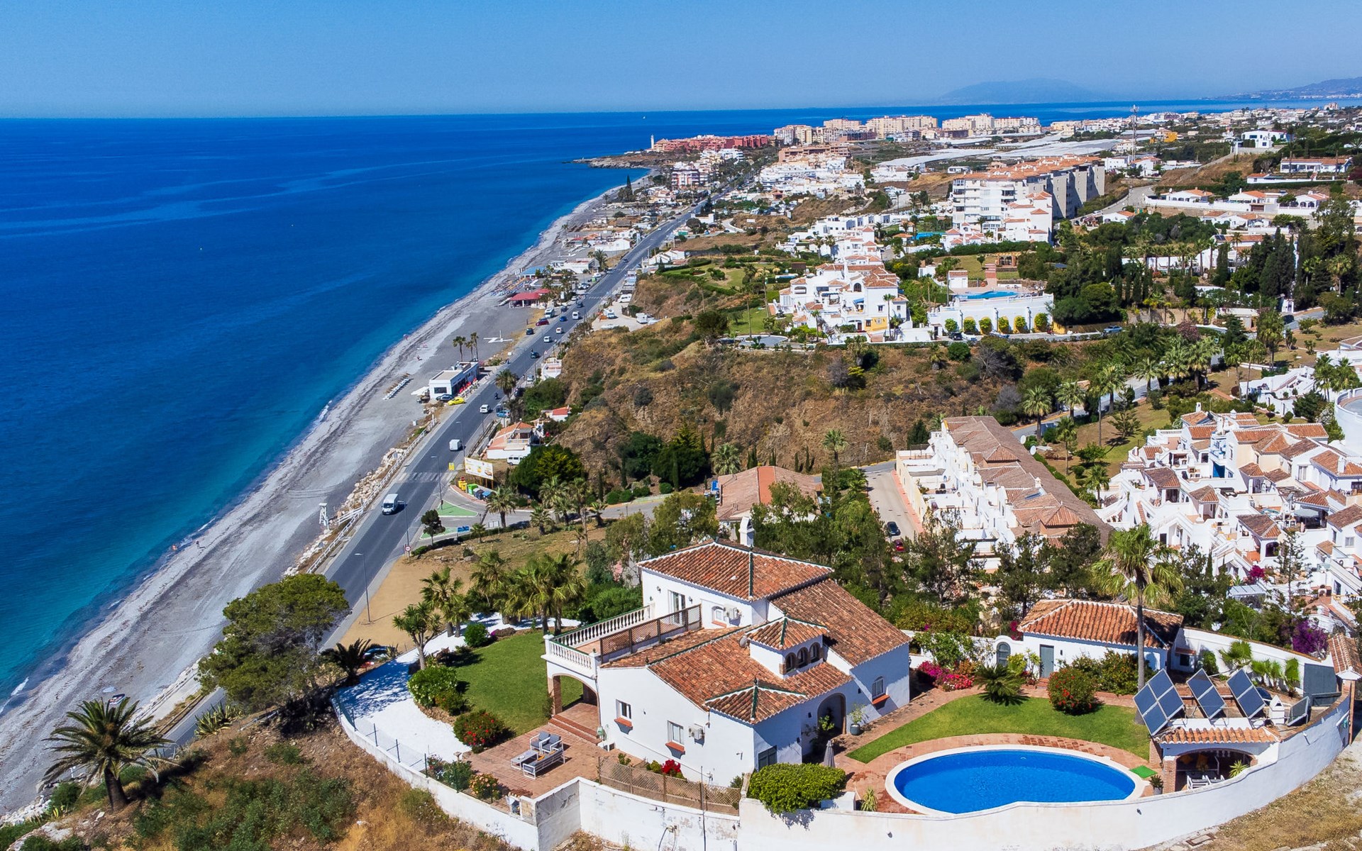 Mooi, gezellige, comfortabele villa "Atardecer". Zonnige ligging villa wijk, 200 m van zee, 200 m van het strand, op het zuiden. Voor alleengebruik: terrein 2.200 m2, mooie tuin ter ontspanning, openluchtzwembad rond (12 x 7 m, 160 - 180 cm diepte, seizoensgebonden beschikbaarheid: 01.Jan. - 31.Dec.). Parkeerplaats (voor 2 auto's) op het terrein. Winkel 2 km, levensmiddelenwinkel 2 km, winkelcentrum 20 km, restaurant 150 m, bakkerij 2 km, café, fietsverhuur 18 km, bushalte 150 m, treinstation "Málaga" 50 km, veerboot "Málaga" 50 km, zandstrand "Calaceite", duikschool 18 km. Jachthaven 27 km, jachthaven 18 km, golfterrein (24 holes) 23 km, surfschool 40 km, zeilschool 27 km, sportcentrum 18 km. Attracties in de buurt: Frigiliana, Competa, Malaga, Nerja, Torre del Mar, Cuevas de Maro. Bekende skigebieden kunnen gemakkelijk worden bereikt: Sierra Nevada. Wandelgebied Sierra Almijara, Sierra Tejeda. Auto noodzakelijk. De eigenaar accepteert geen jeugdgroepen. Laden en lossen van de baggage is mogelijk bij het huis.