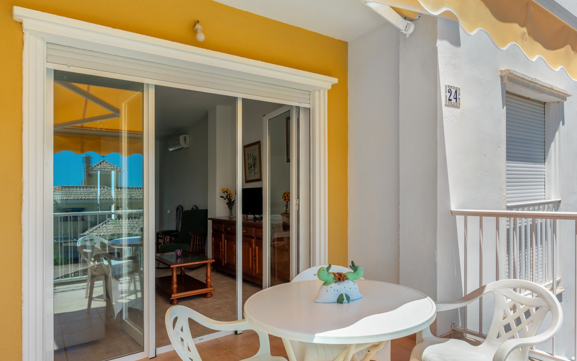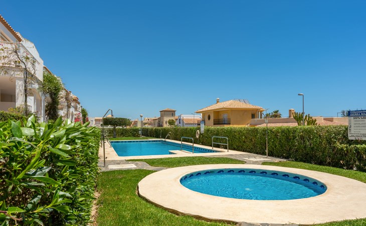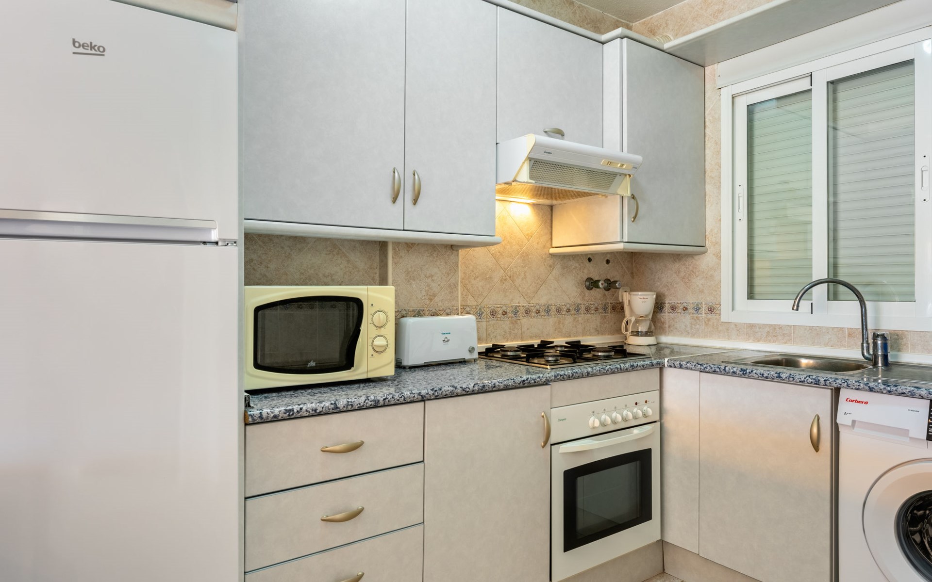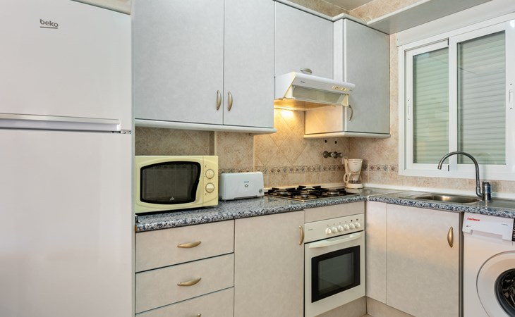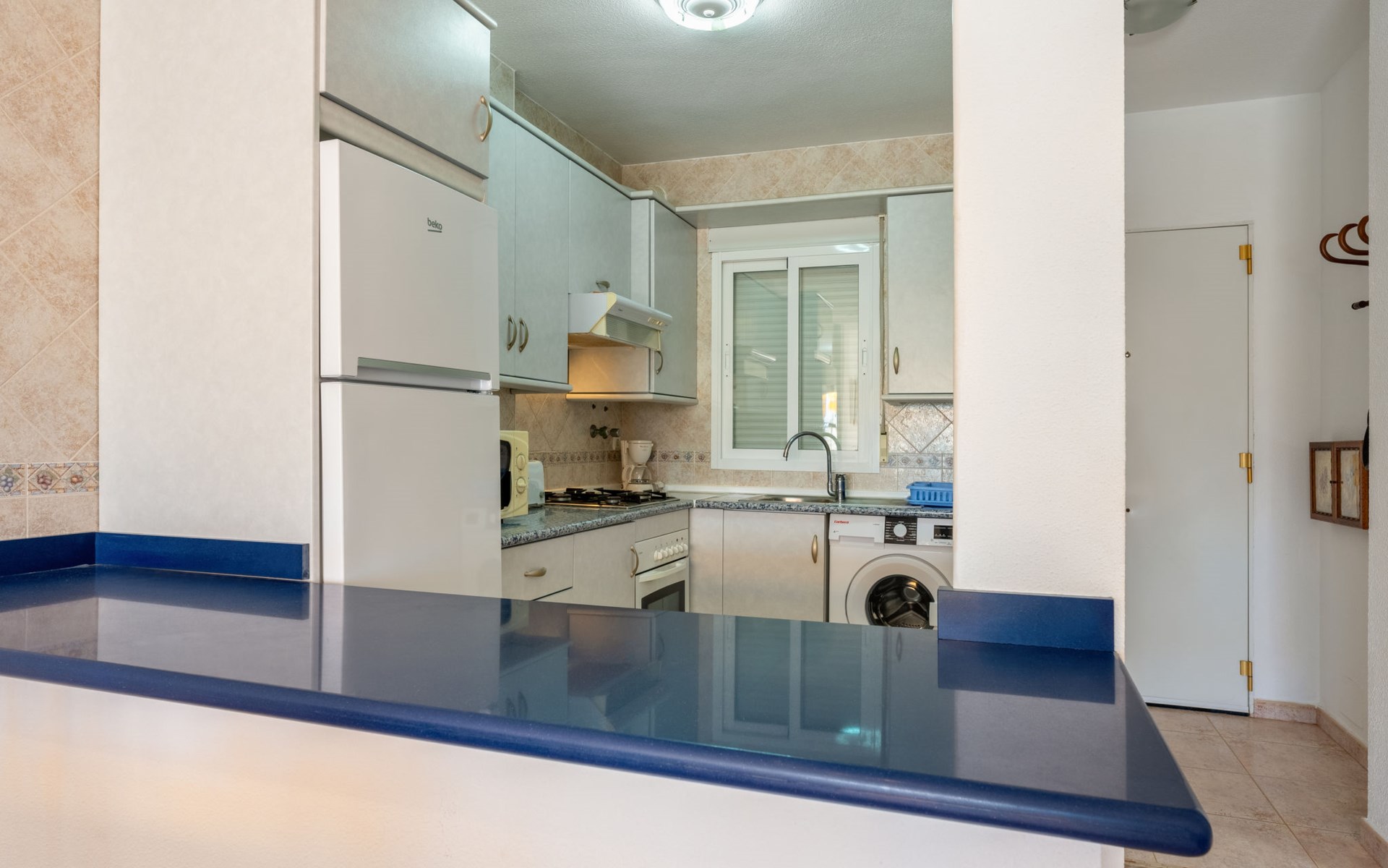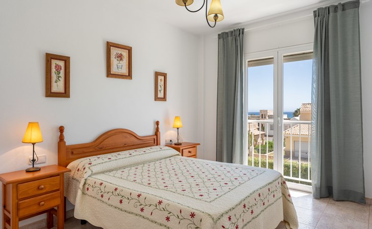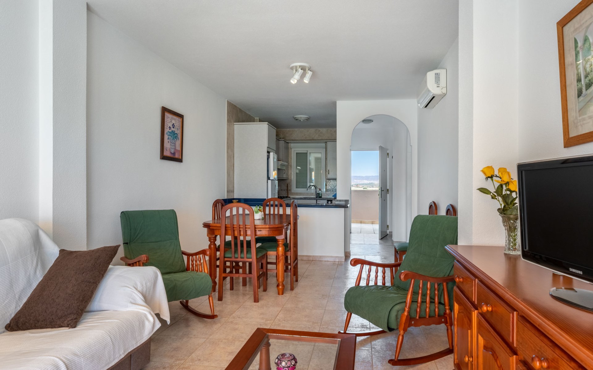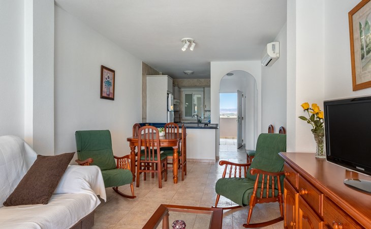 Flatgebouw "Sierra Mar". Buiten de plaats, 1 km van het centrum van Garrucha, rustige ligging, 500 m van zee. Voor medegebruik: tuin 40 m2 (omheind) met gazon, openluchtzwembad hoekig (5 x 10 m, seizoensgebonden beschikbaarheid: 01.Jan. - 31.Dec.). Kinderzwembad, buitendouche, poolhouse met douche en WC. Supermarkt 200 m, restaurant 500 m, bushalte 290 m, zandstrand 500 m. Golfterrein (18 holes) 8 km, manege 2 km. Vera 5 km.