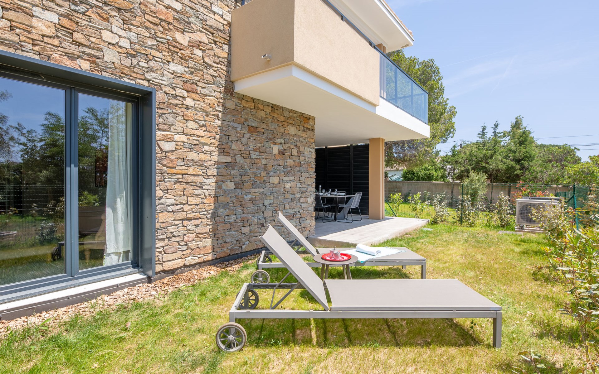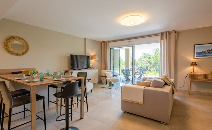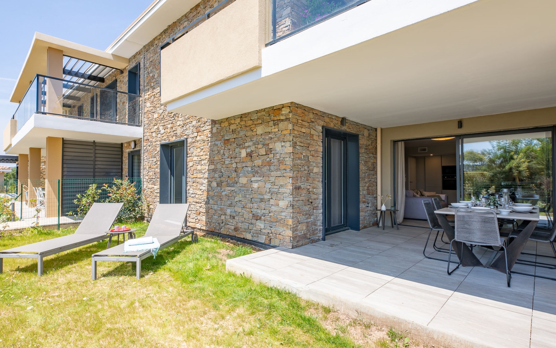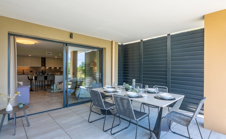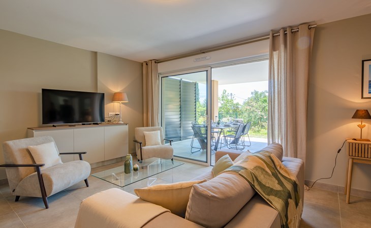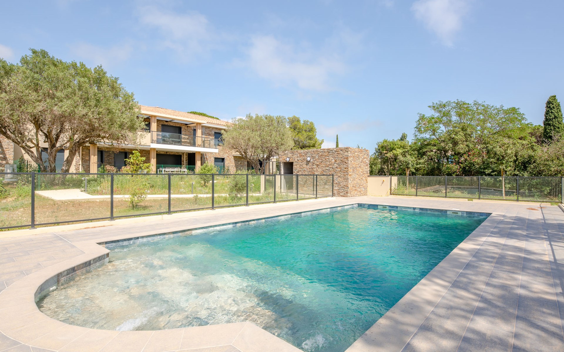Moderne flatgebouw "Le Clos d'Alice", van 2 verdiepingen, bouwjaar 2024. 10 appartementen in de woning. In de wijk Saquèdes, aan de rand van de plaats, 1.3 km van het centrum, rustige, zonnige ligging in een woonwijk, gebied met weinig verkeer, 1.5 km van zee, 1.5 km van het strand, te midden van groen. Voor medegebruik: verzorgde tuin, openluchtzwembad hoekig omheind (10 x 5 m, 180 cm diepte, seizoensgebonden beschikbaarheid: 01.Jun. - 30.Sep.). Parkeerplaats. Levensmiddelenwinkel 400 m, supermarkt 1.8 km, bakkerij 400 m, centrum te voet bereikbaar in 15 minuten, bushalte 450 m, zandstrand "centre Ville" 1.5 km, thermaalbad "Thalasso Spa des Issambres" 7 km. Jachthaven 1.5 km, golfterrein (18 holes) 4 km, tennis 3 km. Attracties in de buurt: Aqualand Waterpark 2 km, Navette/Shuttle boat St Tropez 20min 1.5 km, St Tropez / Ramatuelle 17 km, Port-Grimaud 10 km, Gorges du Verdon 80 km. Wandelgebied Massif des Maures 5 m, Massif de l'Esterel 25 m. Auto noodzakelijk. Gesloten residentie met een elektrische deur. De sleuteloverdracht vindt plaats bij het agentschap Interhome in Sainte Maxime. De omgeving is gevoelig voor geluidsoverlast. Gelieve geen lawaai te maken en de rust te bewaren.