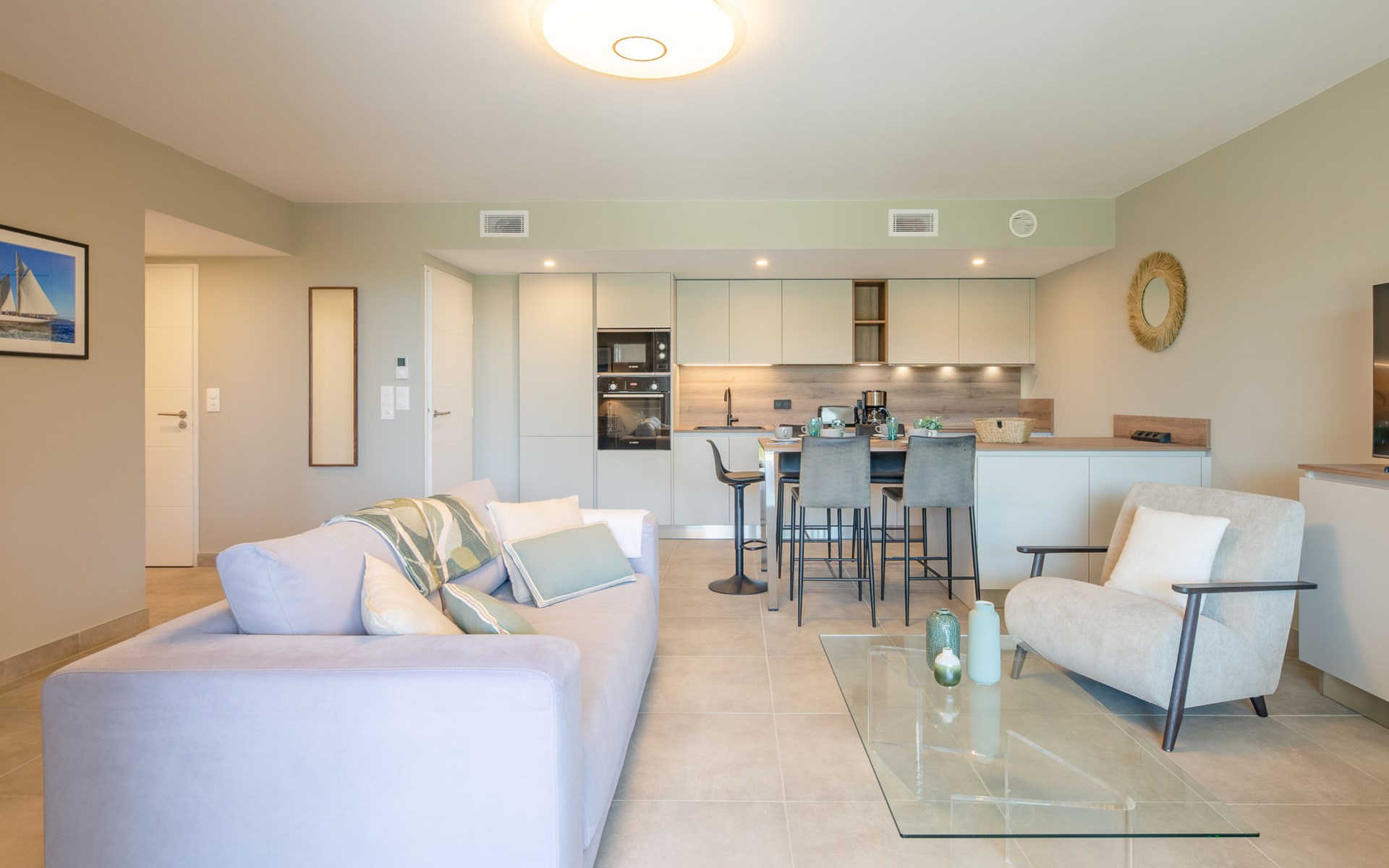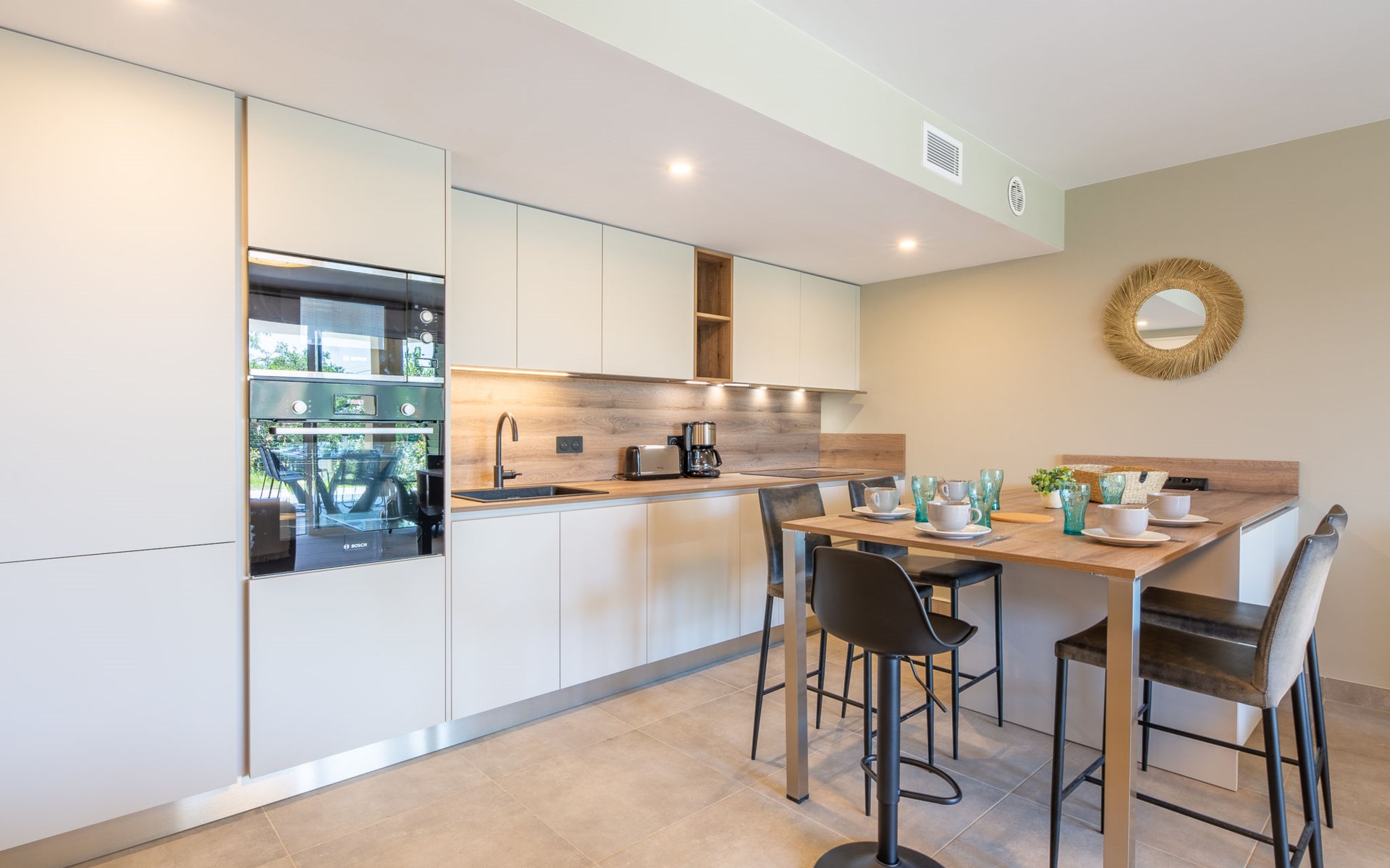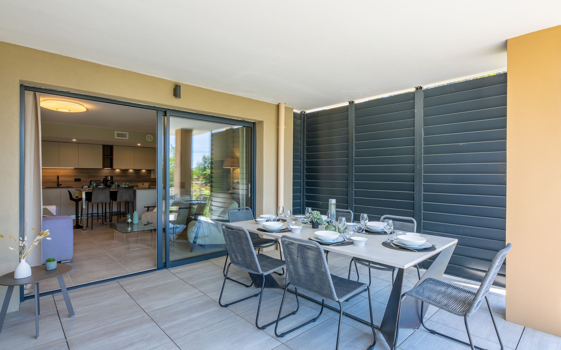 Moderne flatgebouw "Le Clos d'Alice", van 2 verdiepingen, bouwjaar 2024. 10 appartementen in de woning. In de wijk Saquèdes, aan de rand van de plaats, 1.3 km van het centrum, rustige, zonnige ligging in een woonwijk, gebied met weinig verkeer, 1.5 km van zee, 1.5 km van het strand, te midden van groen. Voor medegebruik: verzorgde tuin, openluchtzwembad hoekig omheind (10 x 5 m, 180 cm diepte, seizoensgebonden beschikbaarheid: 01.Jun. - 30.Sep.). Parkeerplaats. Levensmiddelenwinkel 400 m, supermarkt 1.8 km, bakkerij 400 m, centrum te voet bereikbaar in 15 minuten, bushalte 450 m, zandstrand "centre Ville" 1.5 km, thermaalbad "Thalasso Spa des Issambres" 7 km. Jachthaven 1.5 km, golfterrein (18 holes) 4 km, tennis 3 km. Attracties in de buurt: Aqualand Waterpark 2 km, Navette/Shuttle boat St Tropez 20min 1.5 km, St Tropez / Ramatuelle 17 km, Port-Grimaud 10 km, Gorges du Verdon 80 km. Wandelgebied Massif des Maures 5 m, Massif de l'Esterel 25 m. Auto noodzakelijk. Gesloten residentie met een elektrische deur. De sleuteloverdracht vindt plaats bij het agentschap Interhome in Sainte Maxime. De omgeving is gevoelig voor geluidsoverlast. Gelieve geen lawaai te maken en de rust te bewaren.