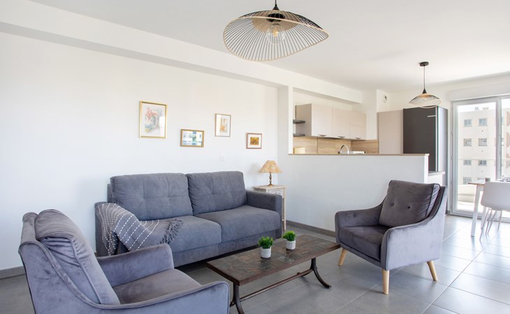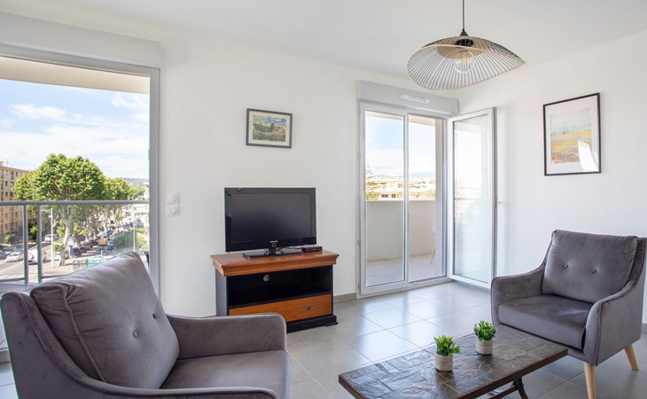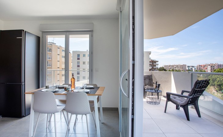 Residentie "Rive de Cagnes", van 5 verdiepingen. In een woonwijk, in het centrum van de stad, van zee, 600 m van het strand. In het huis: lift. Levensmiddelenwinkel, supermarkt, restaurant 500 m, fietsverhuur 700 m, bushalte "centre des impots" 50 m, station "centre cagnes" 750 m, stenenstrand "de la serre" 600 m. Jachthaven 3.9 km, jachthaven 3.4 km. Attracties in de buurt: hippodrome de la côte d'azur 1.9 km, Haut de cagnes 1.7 km, centre commercial polygone riviera 3.3 km, parc d'attractions Antibesland 6.2 km.