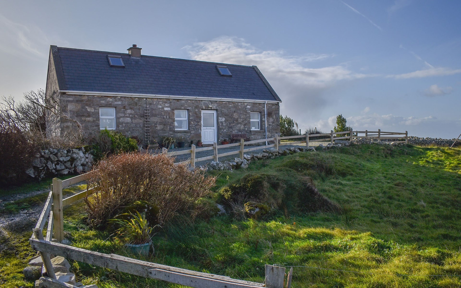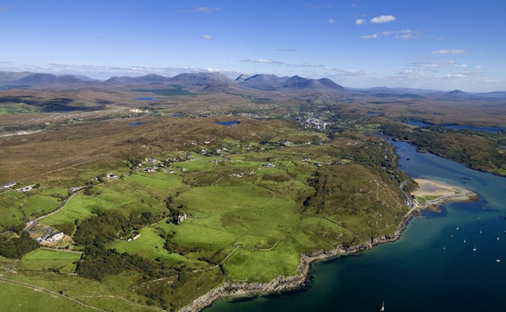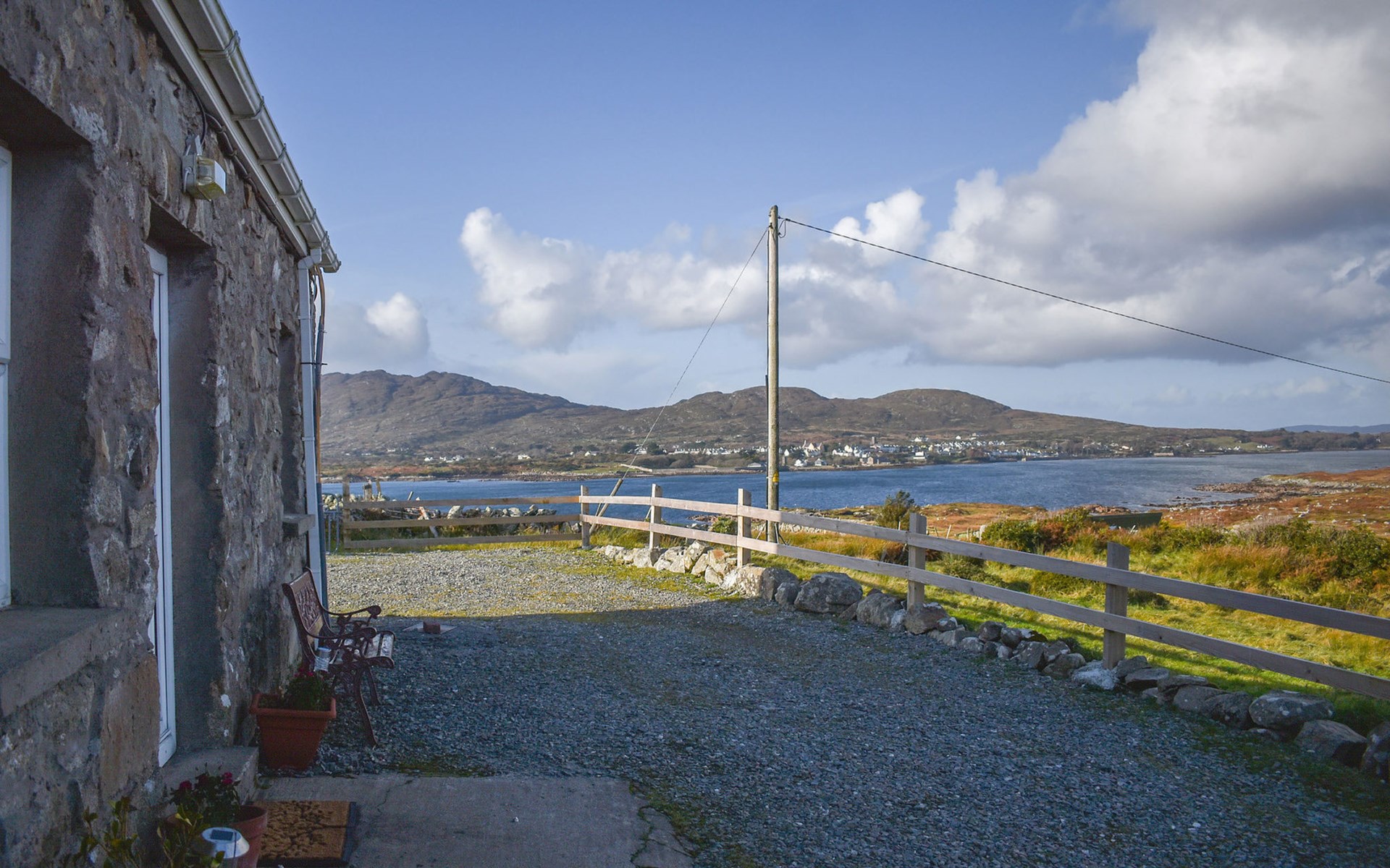 Roundstone: Cottage. Voor alleengebruik: tuin, parkeerplaats (voor 1 auto's). Supermarkt 6.5 km, restaurant 6.5 km, café 6.5 km, bushalte 6.5 km, treinstation 78.8 km, zandstrand 10.0 km. Golfterrein 26.0 km. De eigenaar accepteert geen jeugdgroepen.