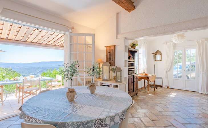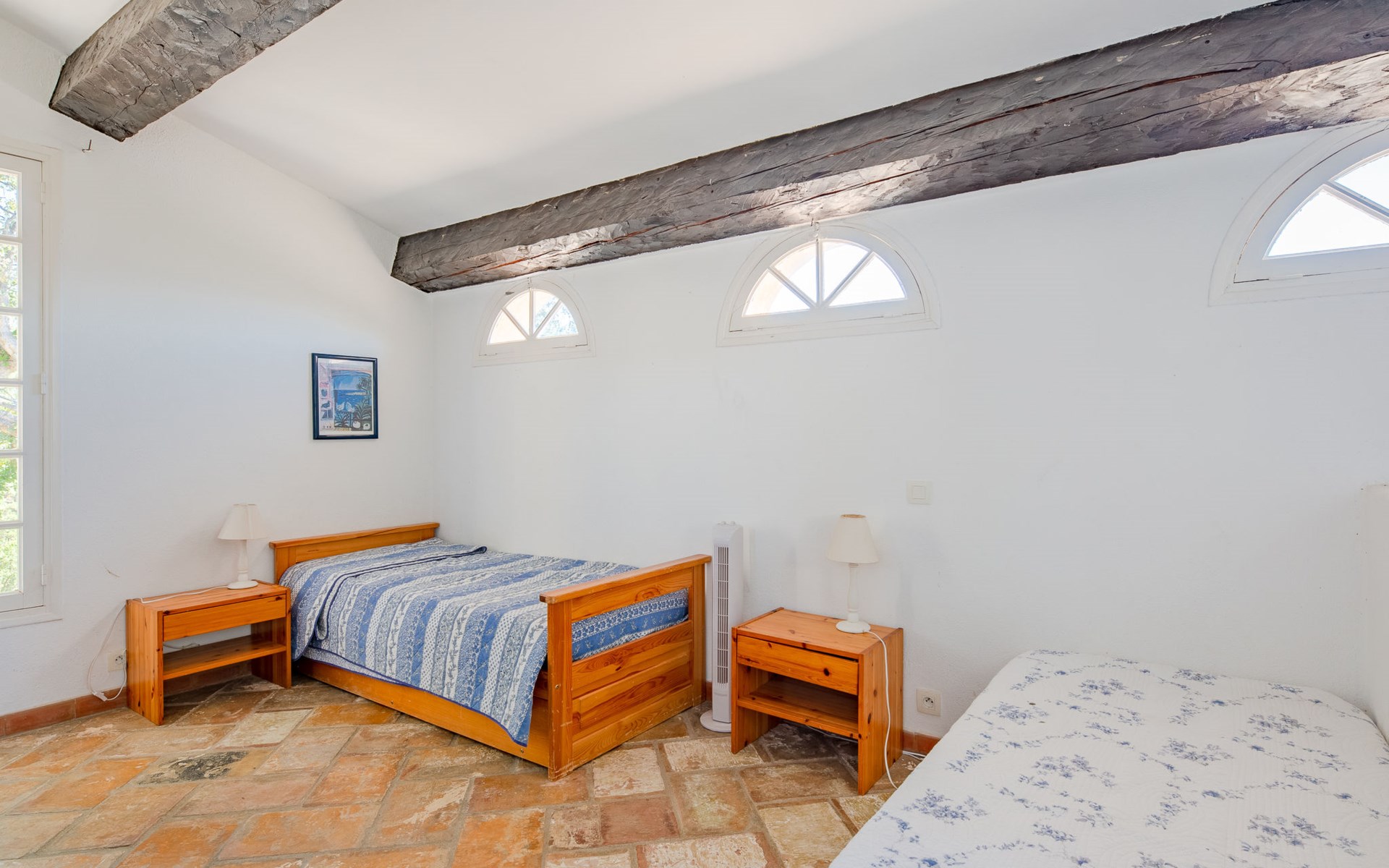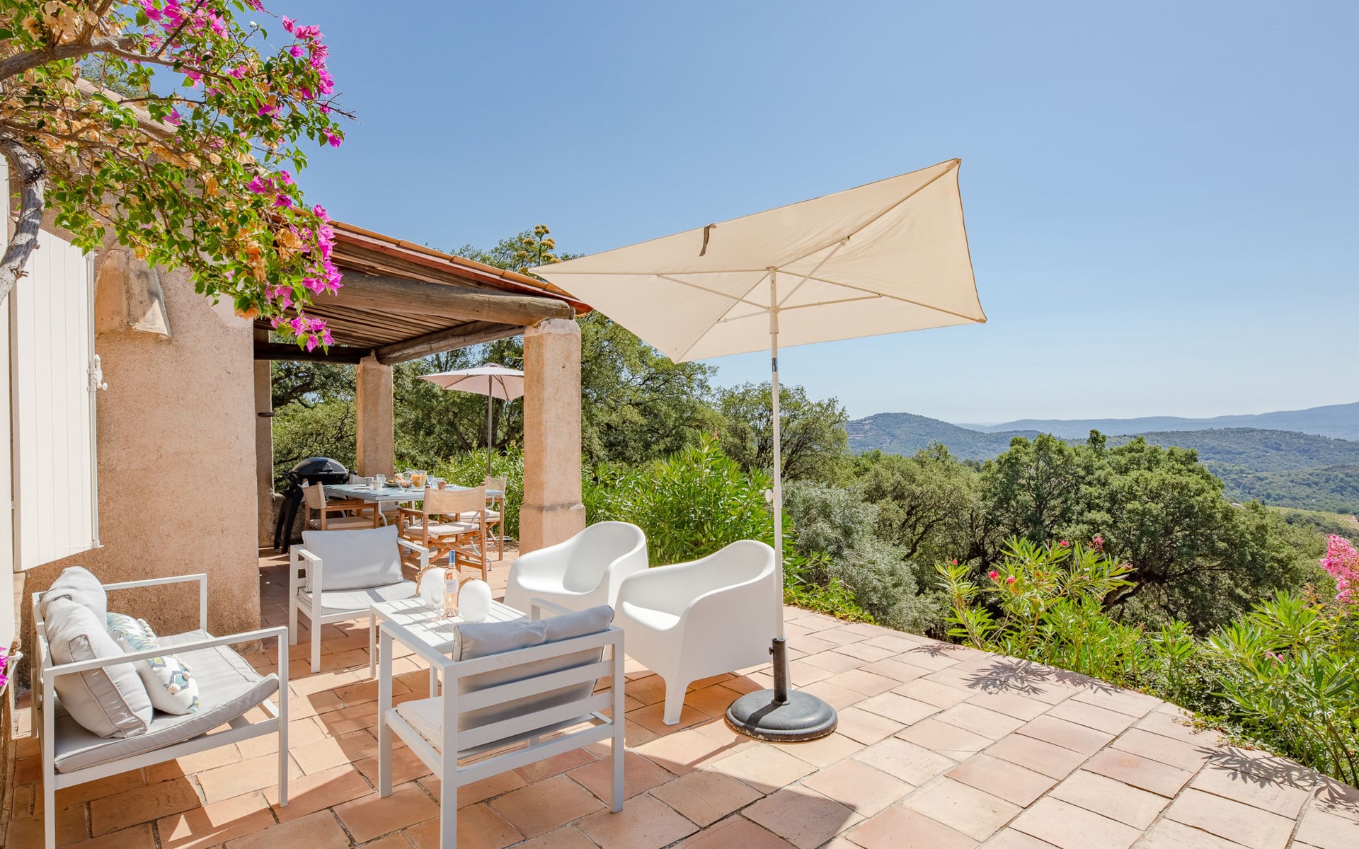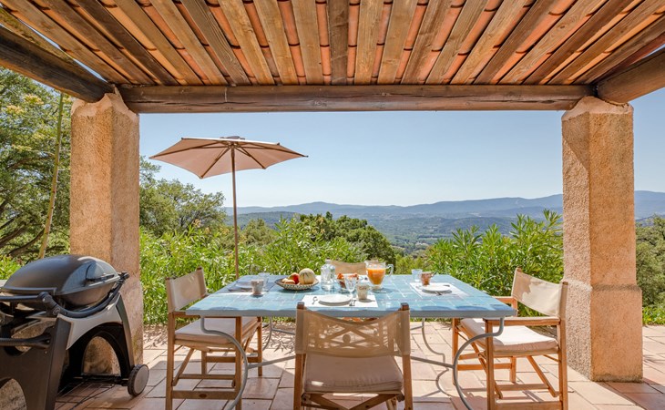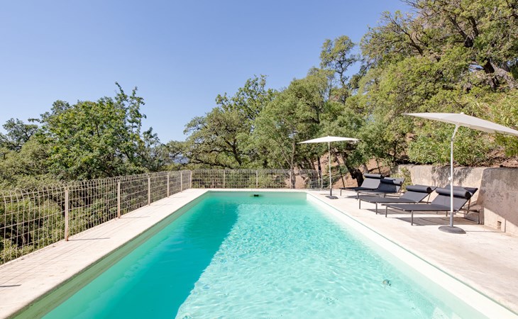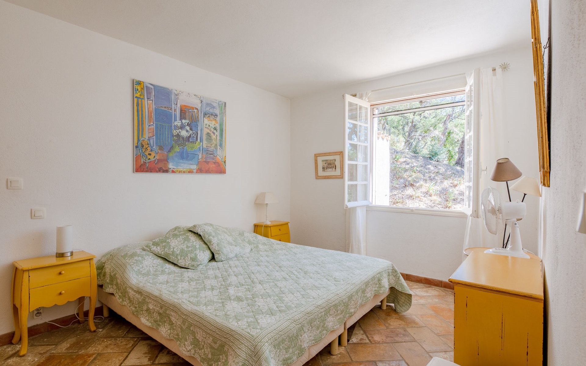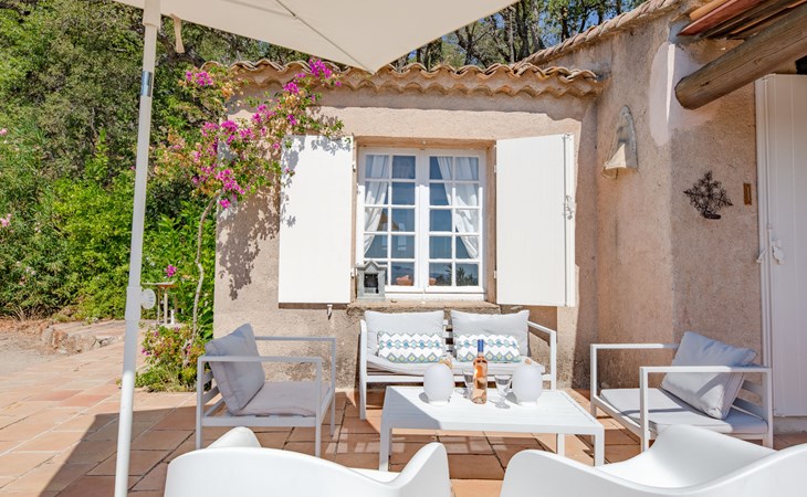 Mooi landhuis "Le Clos d´Estelle", van 2 verdiepingen. Aan de rand van de plaats, 6 km van het centrum van Grimaud, geïsoleerde ligging op een heuvel, 12 km van het strand, op het zuiden. Voor alleengebruik: wild terrein 2.500 m2, openluchtzwembad (8 x 4 m, 110 - 180 cm diepte, seizoensgebonden beschikbaarheid: 01.Apr. - 31.Okt.). Buitendouche. Steile, smalle toegangsweg tot aan het huis. Parkeerplaats (voor 2 auto's). Winkel 4.5 km, restaurant 1.6 km, bushalte 2 km, zandstrand "Port Grimaud" 12 km. Jachthaven 12 km, golfterrein (18 holes) 13 km, wandelroutes 10 m vanaf het huis. Attracties in de buurt: Grimaud 6 km, Ste. Maxime 17 km, St. Tropez 18 km. Het objekt is geschikt voor 4 volwassenen + 4 kinderen.
