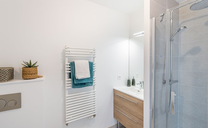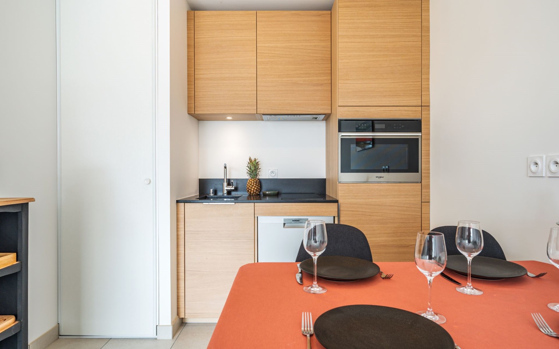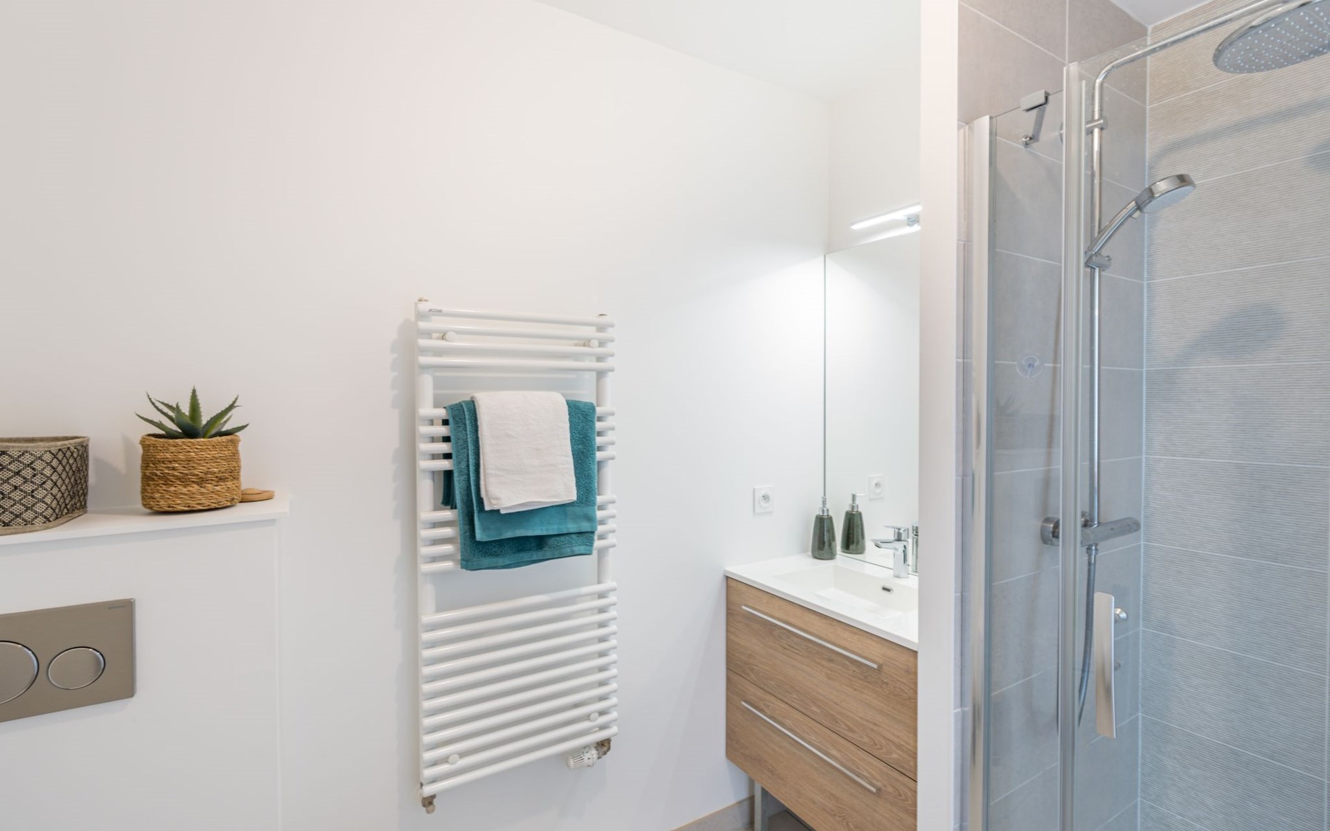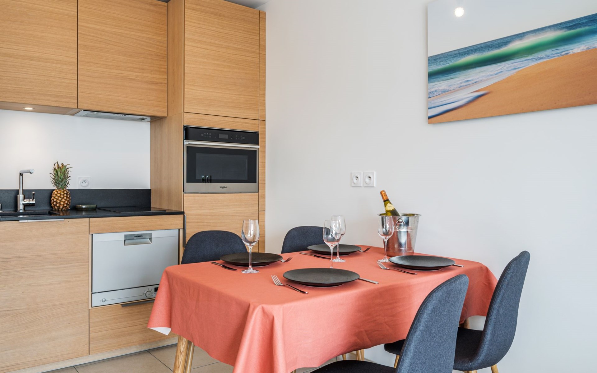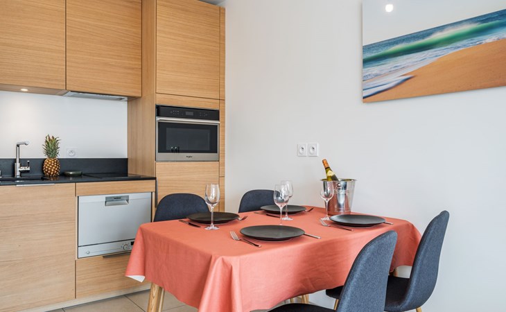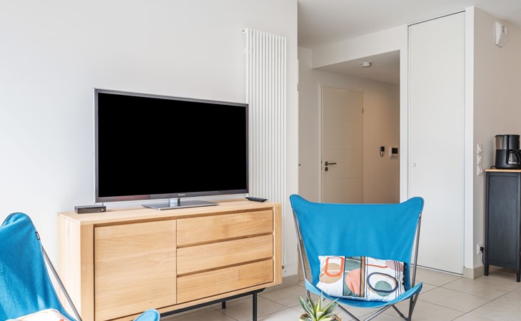 Moderne flatgebouw "Les Villas du Men Du", van 2 verdiepingen, bouwjaar 2022. In de plaats, 300 m van zee, van het strand. In het huis: bergruimte voor fietsen. Supermarkt 200 m, restaurant 500 m, bar, bakkerij 1 km, café, fietsverhuur 1 km, zandstrand "Plage du Men Du" 300 m, thermaalbad "Thalassothérapie Thalazur" 2 km. Golfterrein (18 holes) 15 km, surfschool 6 km, zeilschool 2 km. Attracties in de buurt: Les Alignements de Carnac 5 km, La Trinité sur Mer 5 km, Presqu'ile de Quiberon 15 km, Vannes 30 km, Lorient 40 km, Belle Ile en Mer, Houat, Hoedic. Wandelgebied Le Golfe du Morbihan 30 km.