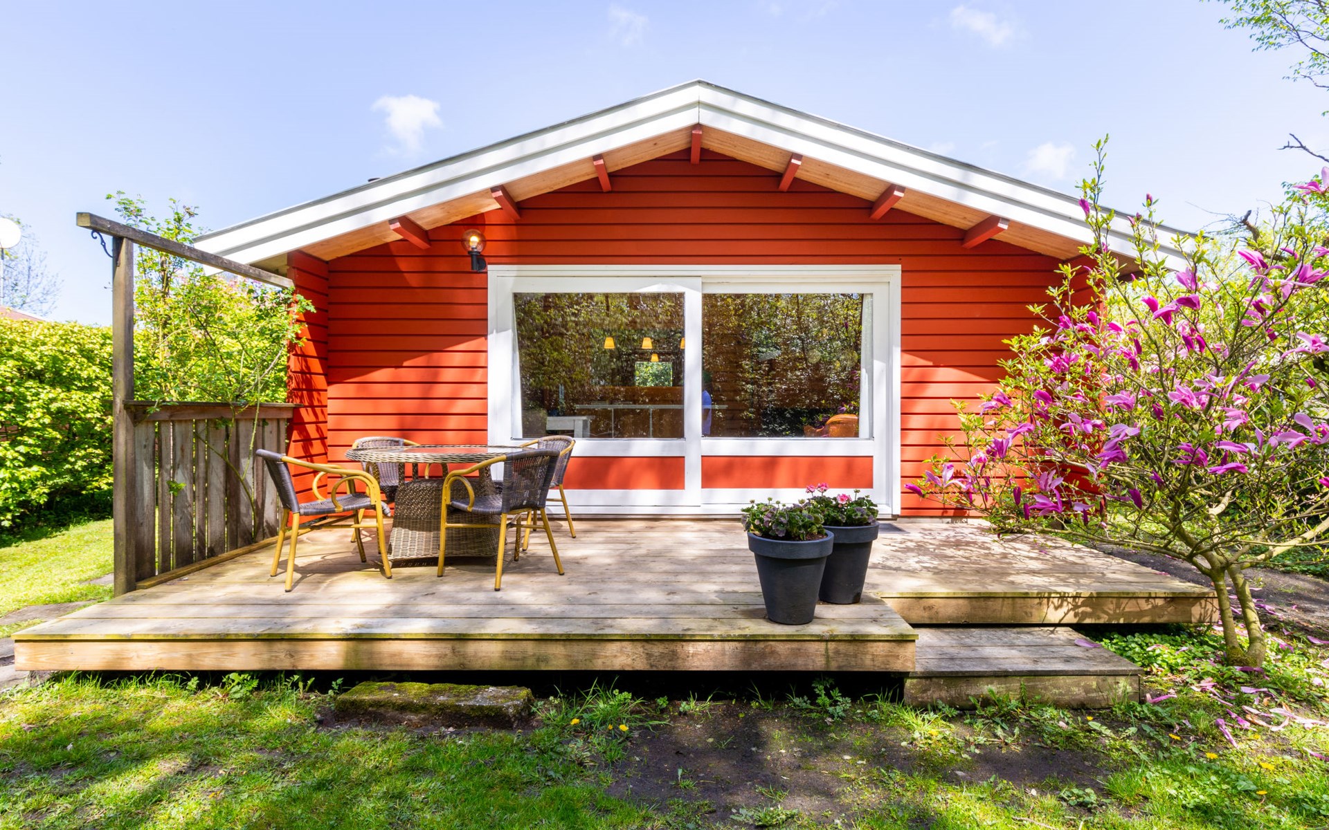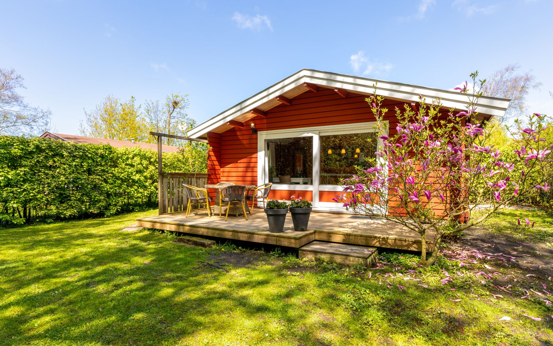 Klein vakantiepark "Rusthoeve", omgeven door bomen. Buiten de plaats, 3 km van zee, 3 km van het strand. Voor alleengebruik: tuin. Terras, tuinmeubelen, parkeerplaats. Supermarkt 1.4 km, winkelcentrum 7 km, bushalte "Gerrit v. Der Sluisstraat" 170 m, treinstation "Schagen" 8 km, zandstrand "St. Maartenszee" 3 km. Attracties in de buurt: Attractiepark De Goudvis 2 km, Dierenpark Blanckendaell 4 km, Fort Kijkduin 20 km, Marinemuseum Den Helder 23 km, Kaasmarkt Alkmaar 25 km, Zuiderzeemuseum 34 km. De eigenaar woont op hetzelfde terrein. Er is een speel-/zwemparadijs voor kinderen tot 12 jaar op 5,5 km.