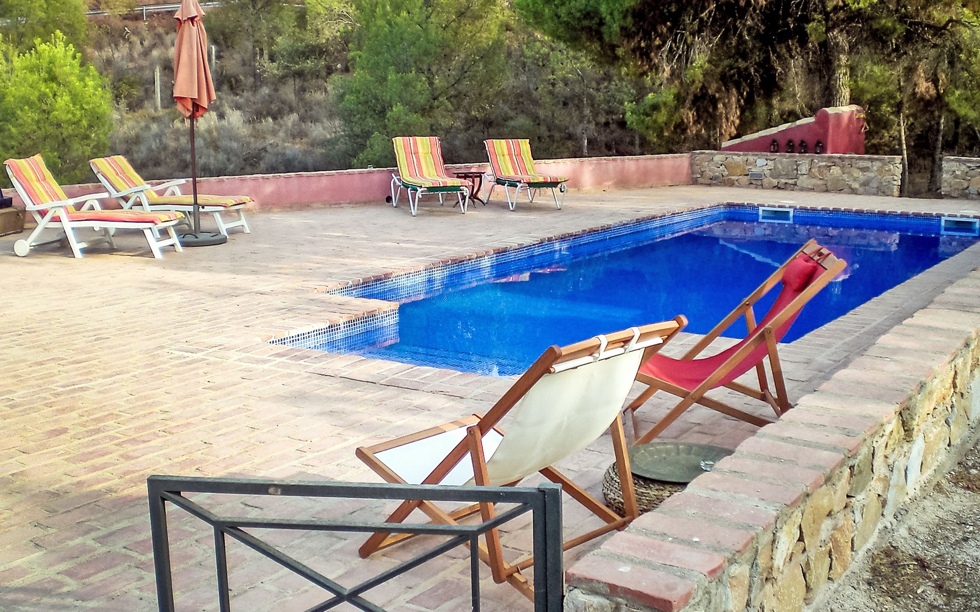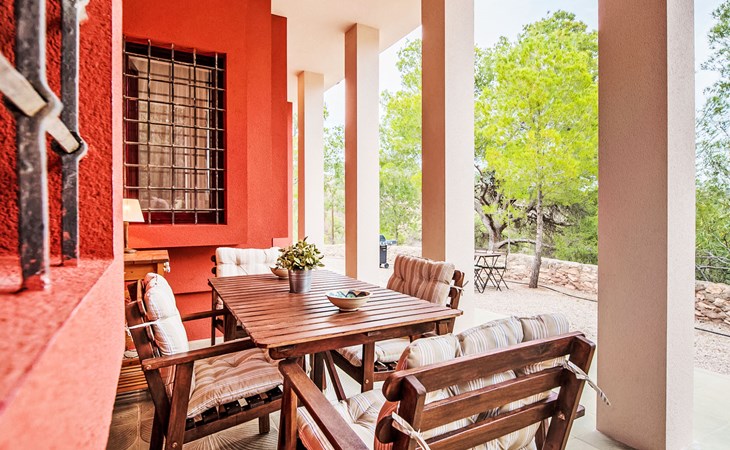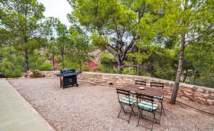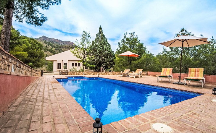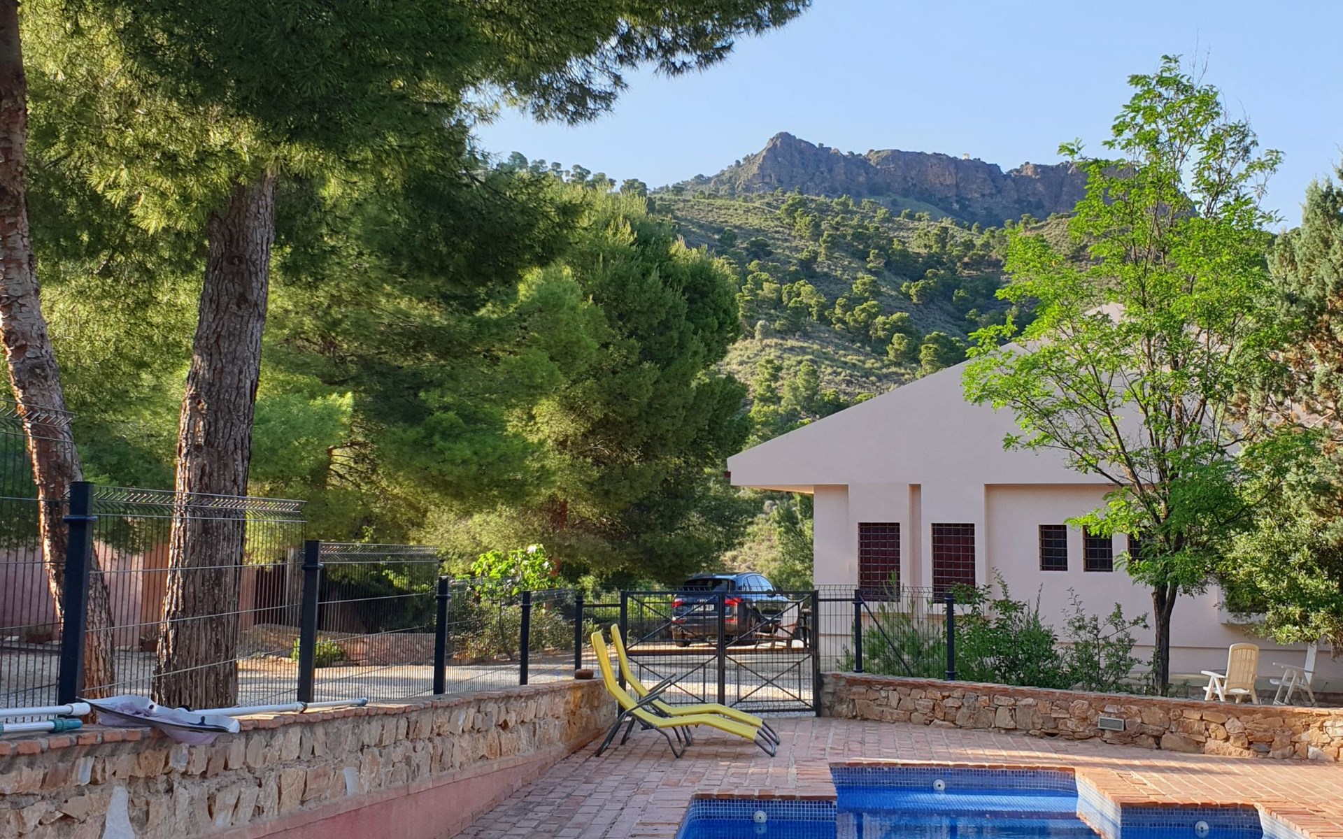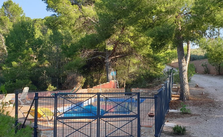 Totana 53 km van Murcia: Eengezinswoning "De La Cruz", bouwjaar 1980, gerenoveerd in 2017. Buiten de plaats, geïsoleerde, rustige, zonnige ligging, direct aan de bosrand, 35 km van zee, te midden van groen. Voor alleengebruik: terrein 6.000 m2 (omheind), openluchtzwembad omheind (8 x 4 m, seizoensgebonden beschikbaarheid: 01.Mei. - 30.Sep.). Buitendouche, parkeerplaats bij het huis. Winkel 7 km, levensmiddelenwinkel 3 km, restaurant 1 km, bushalte 1 km, treinstation "Totana" 7 km, zandstrand 35 km. Golfterrein (18 holes) 30 km, wandelroutes, vanaf het huis, fietspad 20 m. Wandelgebied Sierra de Espuña 500 m, AR El Grifo 20 m. Het huis beschikt over een houtgestookte oven in de tuin.