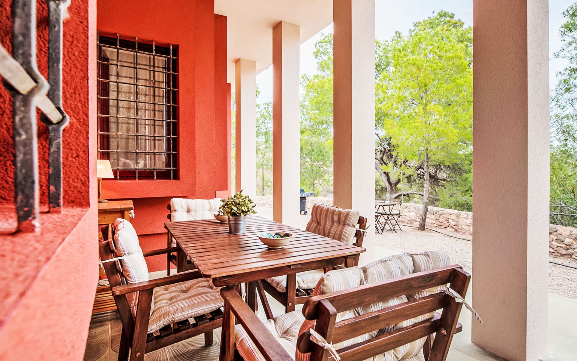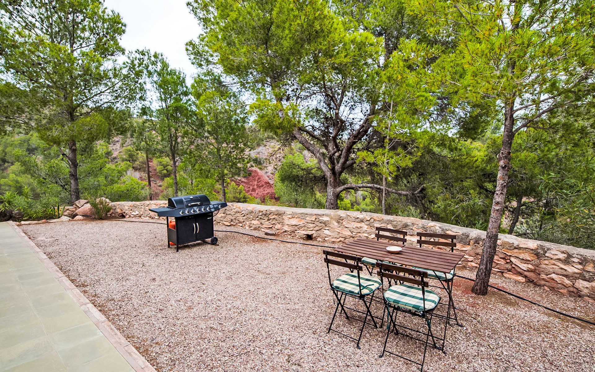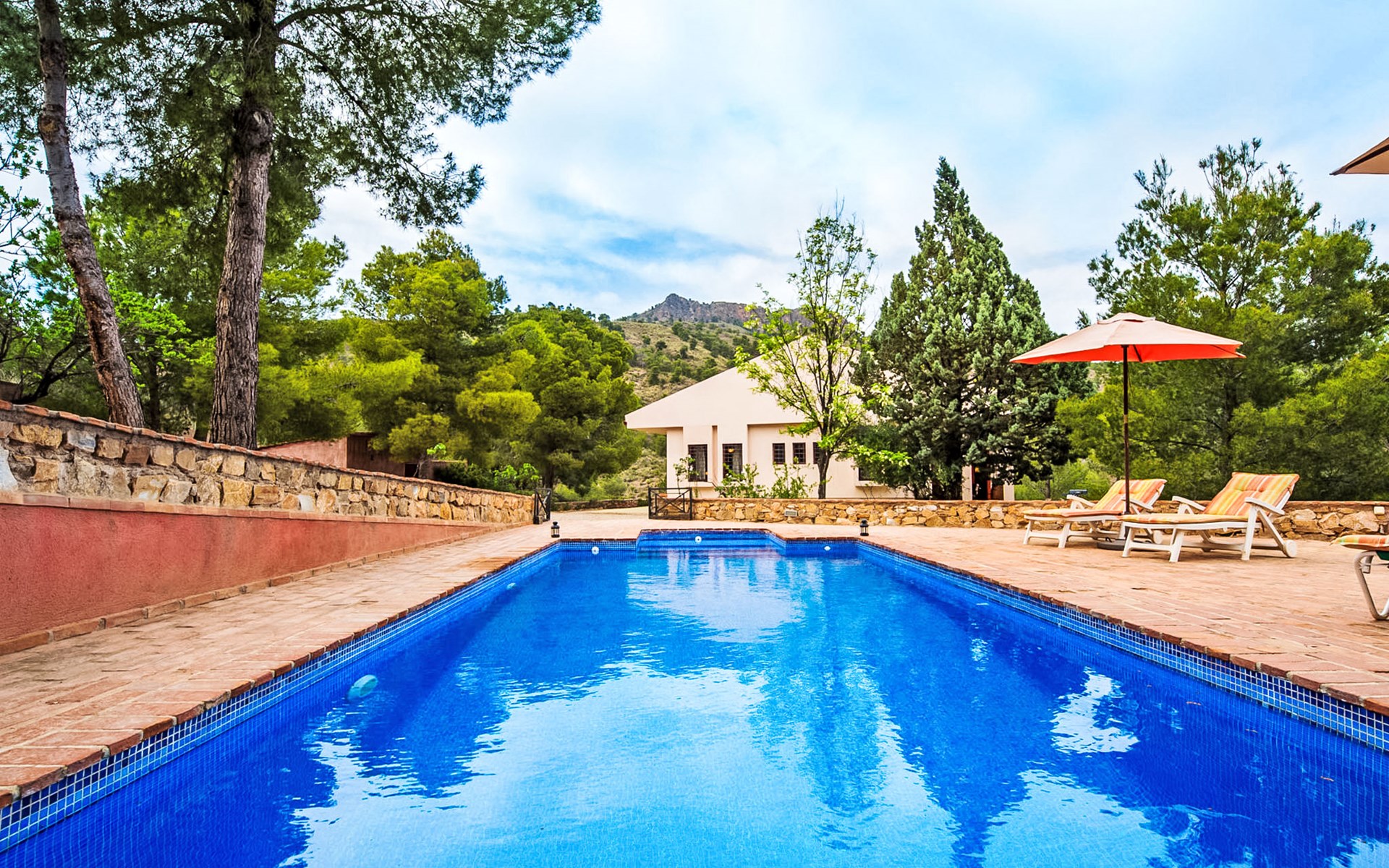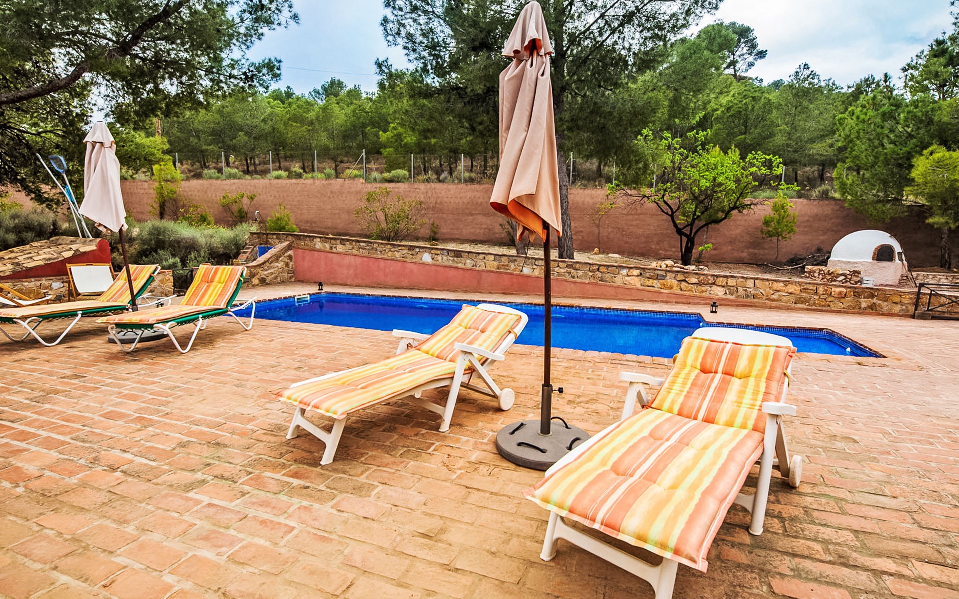 Totana 53 km van Murcia: Eengezinswoning "De La Cruz", bouwjaar 1980, gerenoveerd in 2017. Buiten de plaats, geïsoleerde, rustige, zonnige ligging, direct aan de bosrand, 35 km van zee, te midden van groen. Voor alleengebruik: terrein 6.000 m2 (omheind), openluchtzwembad omheind (8 x 4 m, seizoensgebonden beschikbaarheid: 01.Mei. - 30.Sep.). Buitendouche, parkeerplaats bij het huis. Winkel 7 km, levensmiddelenwinkel 3 km, restaurant 1 km, bushalte 1 km, treinstation "Totana" 7 km, zandstrand 35 km. Golfterrein (18 holes) 30 km, wandelroutes, vanaf het huis, fietspad 20 m. Wandelgebied Sierra de Espuña 500 m, AR El Grifo 20 m. Het huis beschikt over een houtgestookte oven in de tuin.