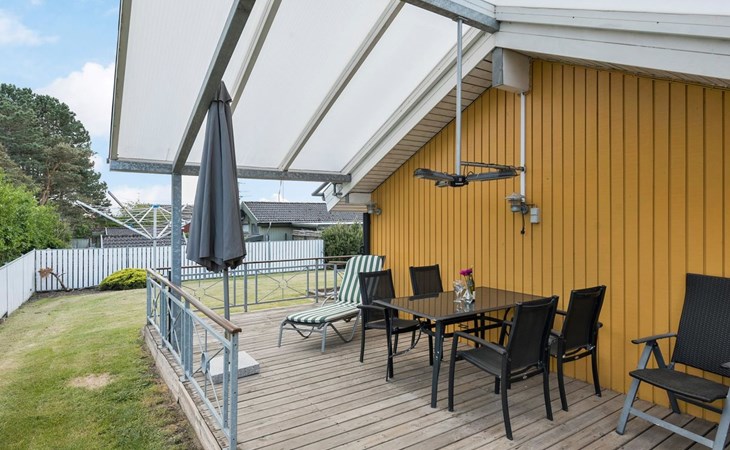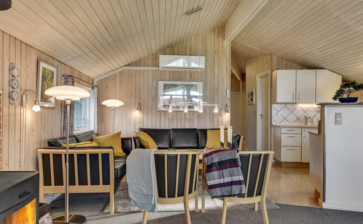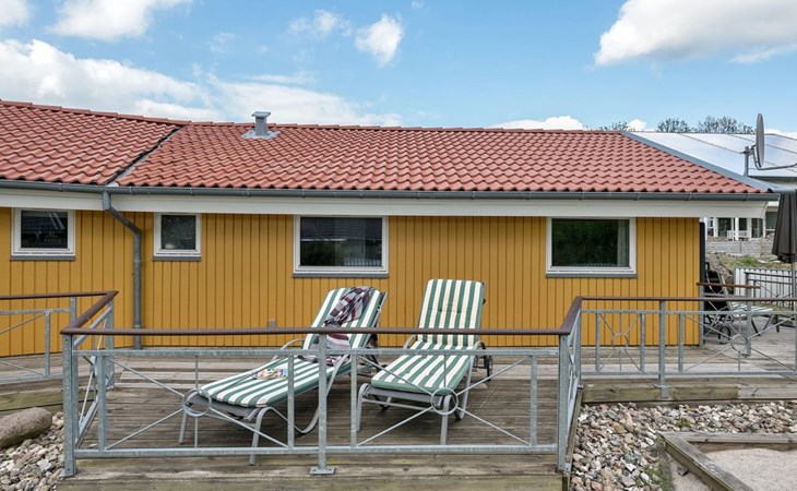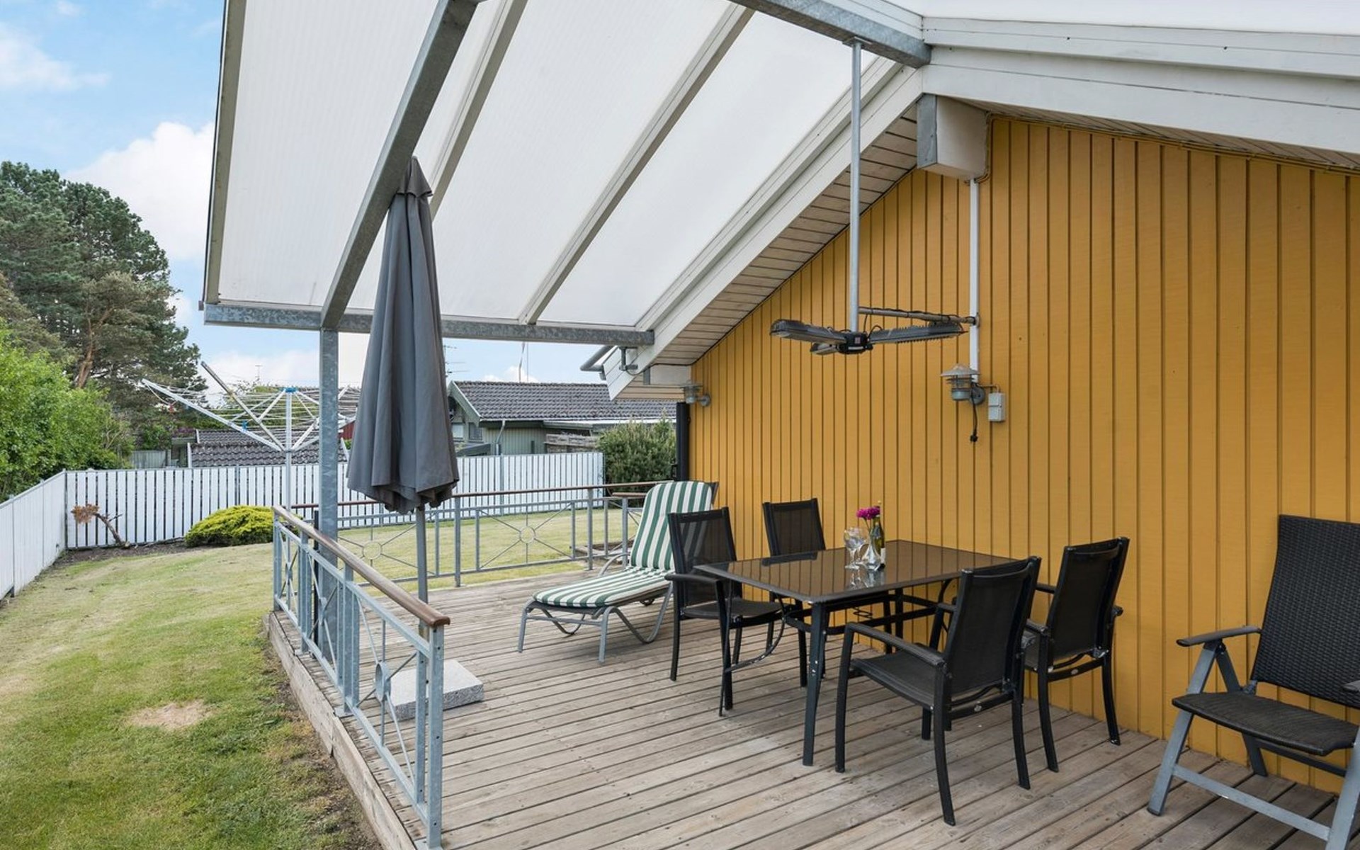 Eengezinswoning, bouwjaar 1997. 400 m van zee. Voor alleengebruik: terrein 900 m2, verzorgde tuin. Terras (60 m2), barbecue, kinderspeelplaats (schommel). In het huis: sauna, wasmachine, droger. Parkeerplaats bij het huis. Carport. Levensmiddelenwinkel 3 km. De eigenaar accepteert geen jeugdgroepen.