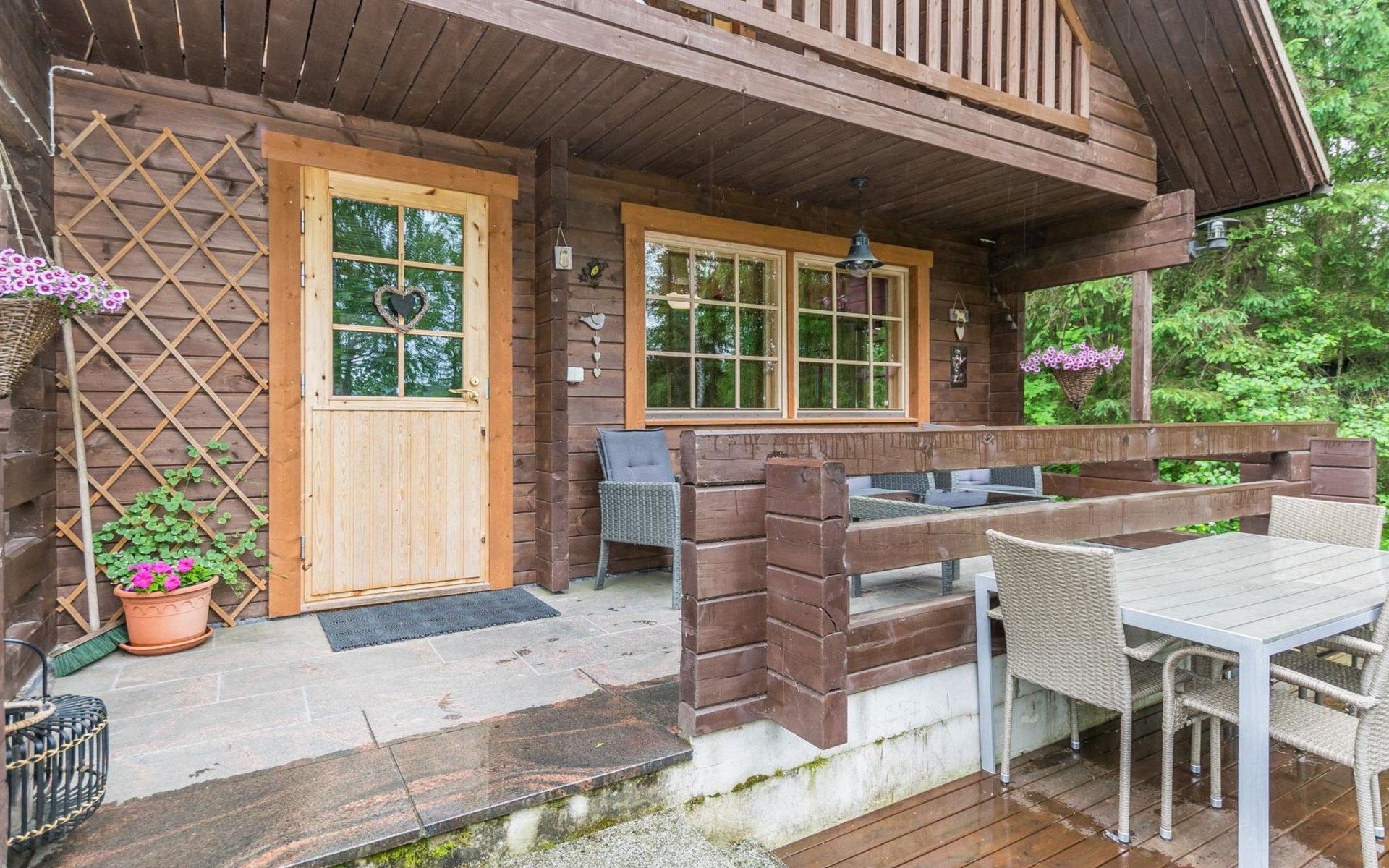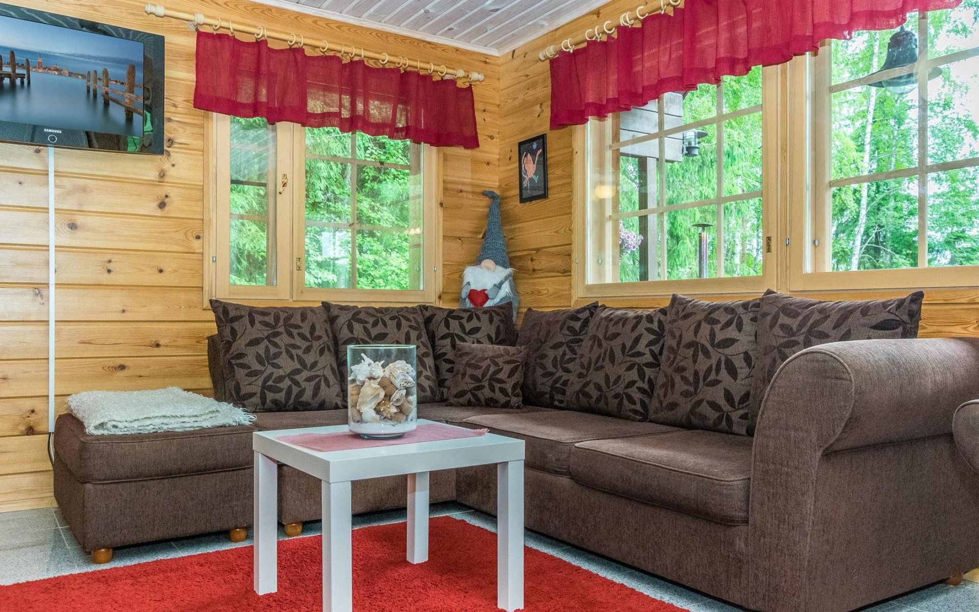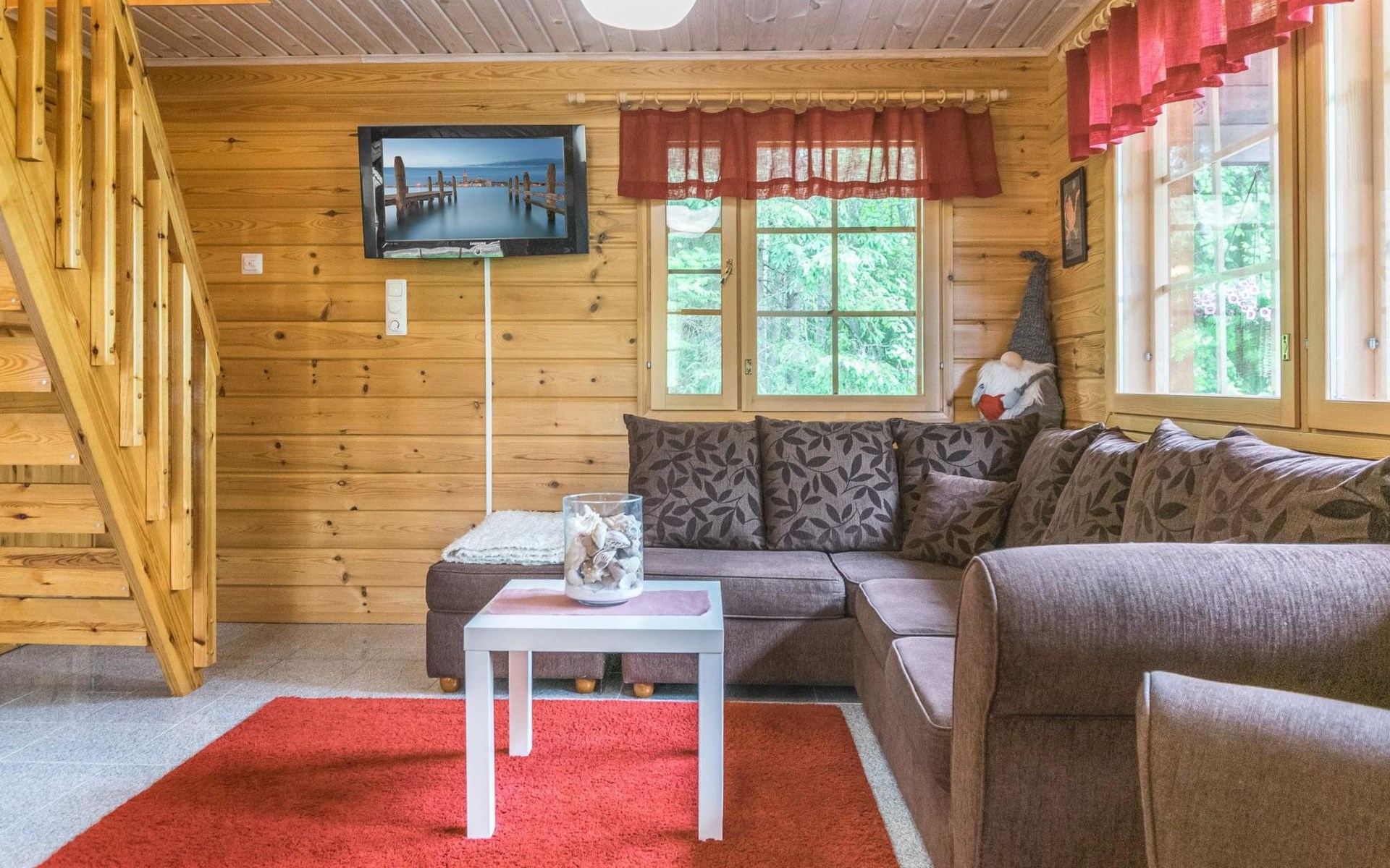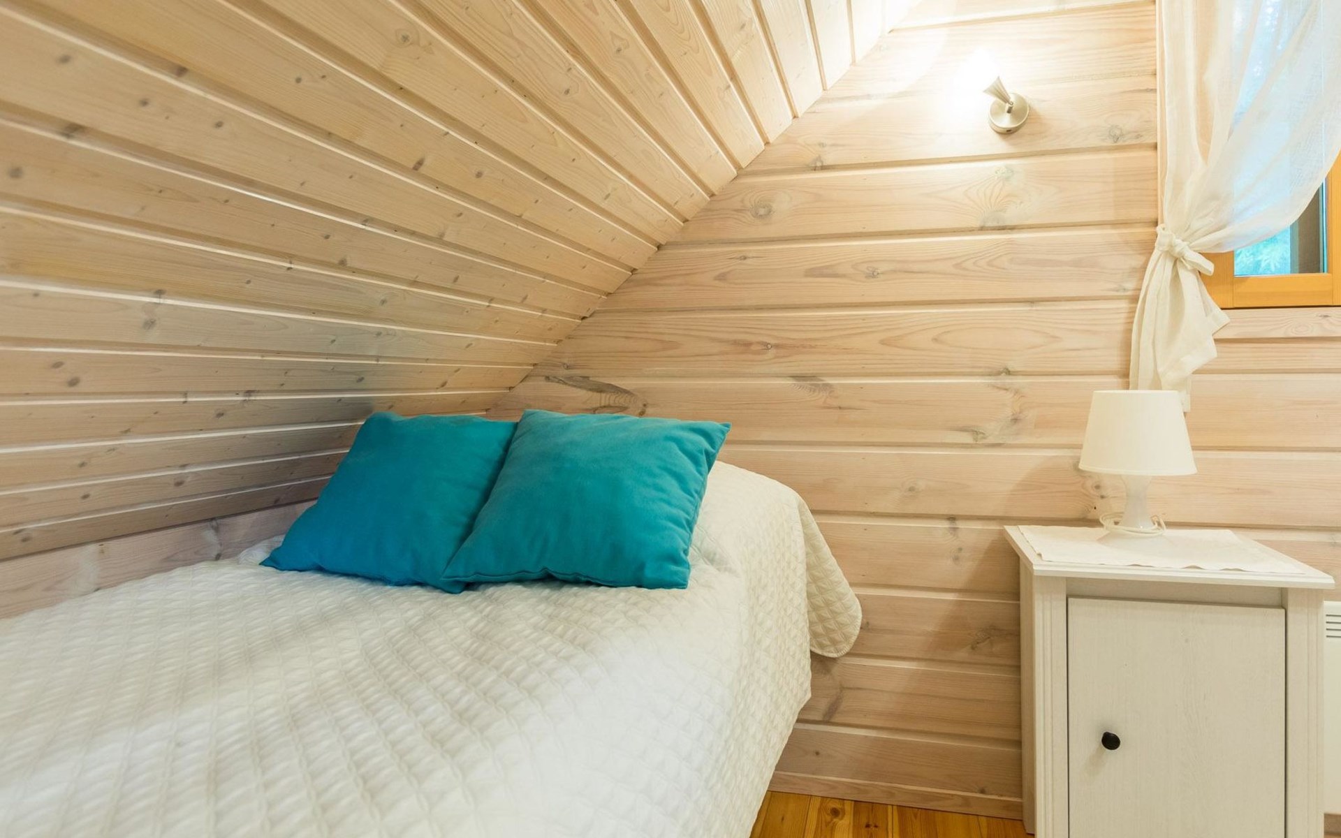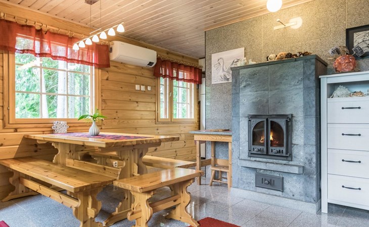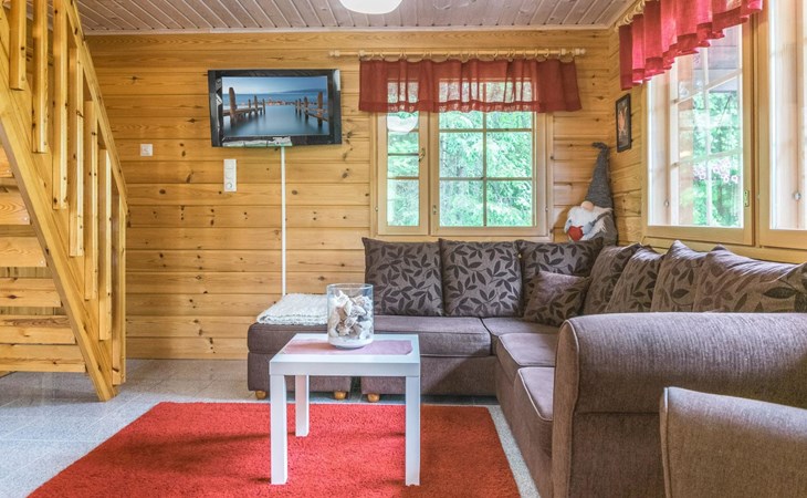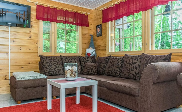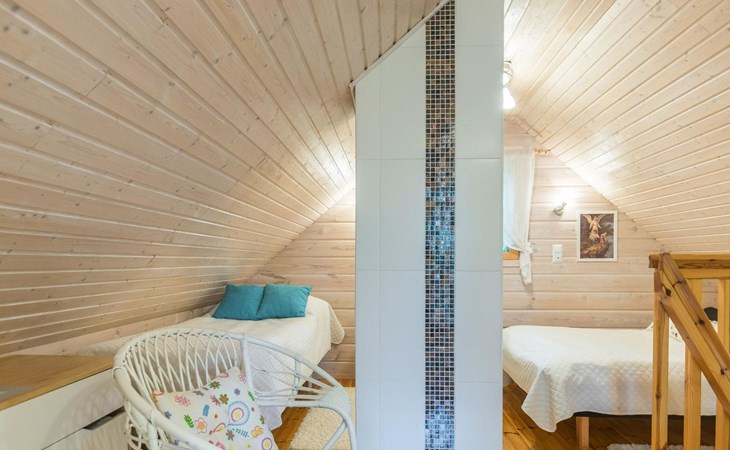 Log cottage 2013, downstairs living room, kitchenette, washroom, sauna (wooden stove), large terrace. Upstairs as a bedroom where there are 3 double beds (the picture are not up to date). One extra bed either on downstairs couch or a mattress on the floor.