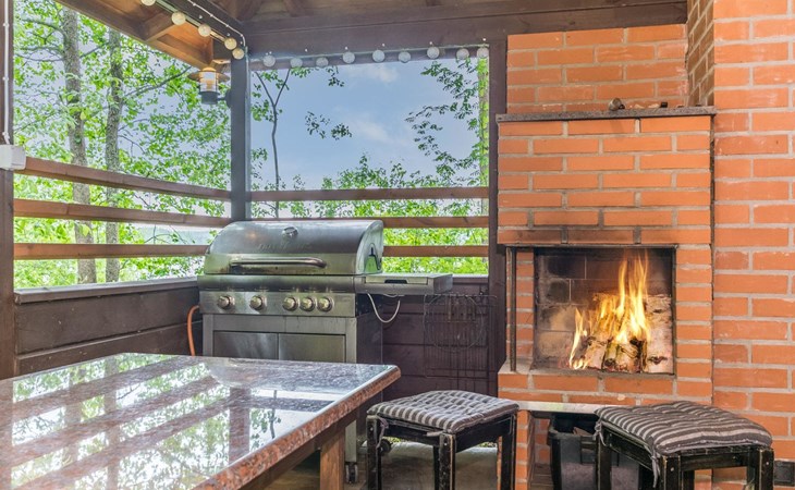 In the yard there is summer kitchen with gas grill and a fish smoking box.
