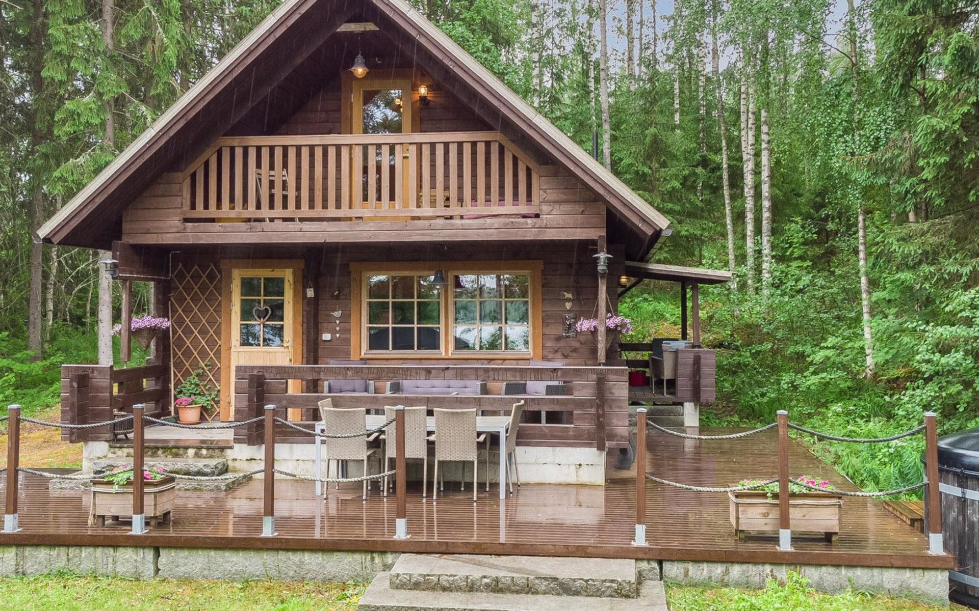 On the terrace there is a wood burning hot tub for extra price, it can be used during 1.4 - 31.11 (payment to the cottage owner).
