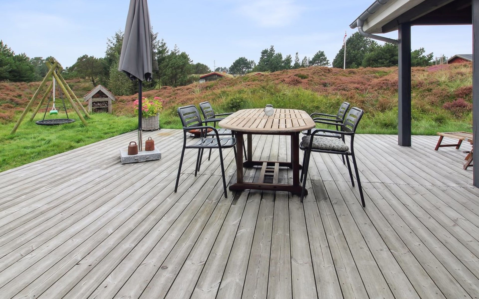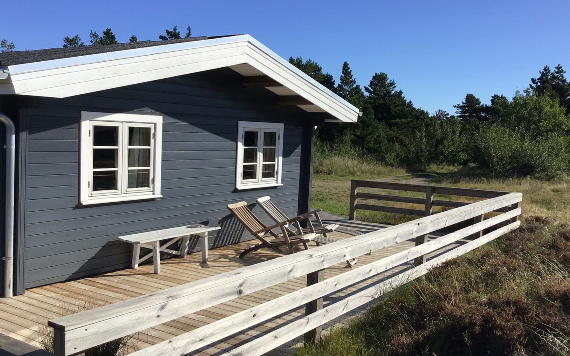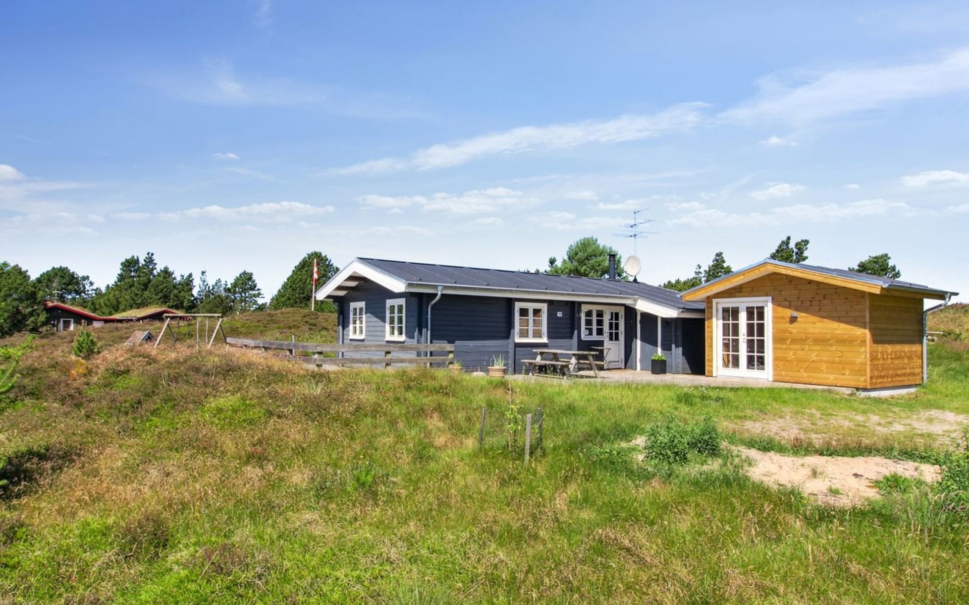 Eengezinswoning, bouwjaar 1977. 1.9 km van zee. Voor alleengebruik: wild terrein 2.510 m2. Buitendouche, barbecue, kinderspeelplaats (schommel). In het huis: wasmachine, droger. Parkeerplaats bij het huis. Levensmiddelenwinkel 2 km. De eigenaar accepteert geen jeugdgroepen.