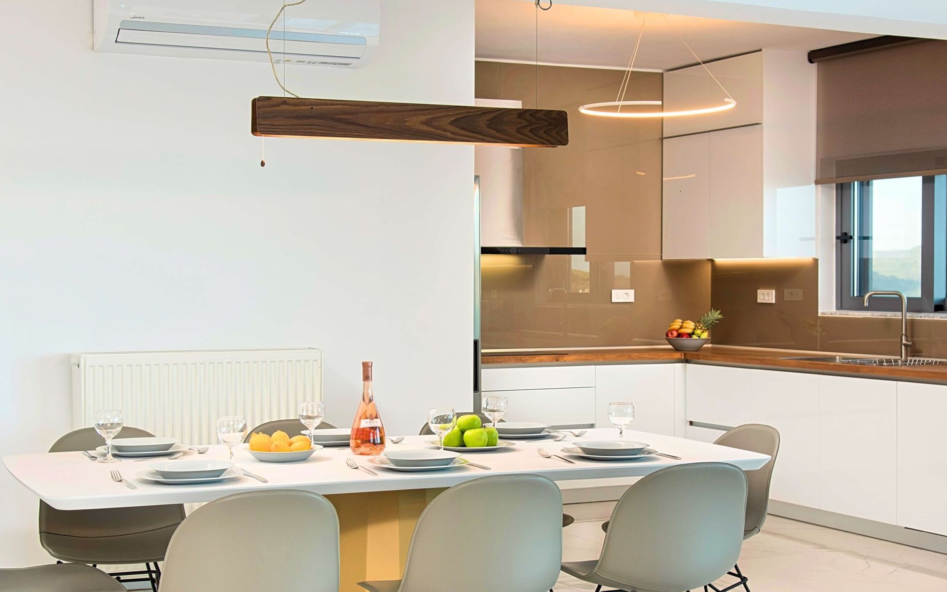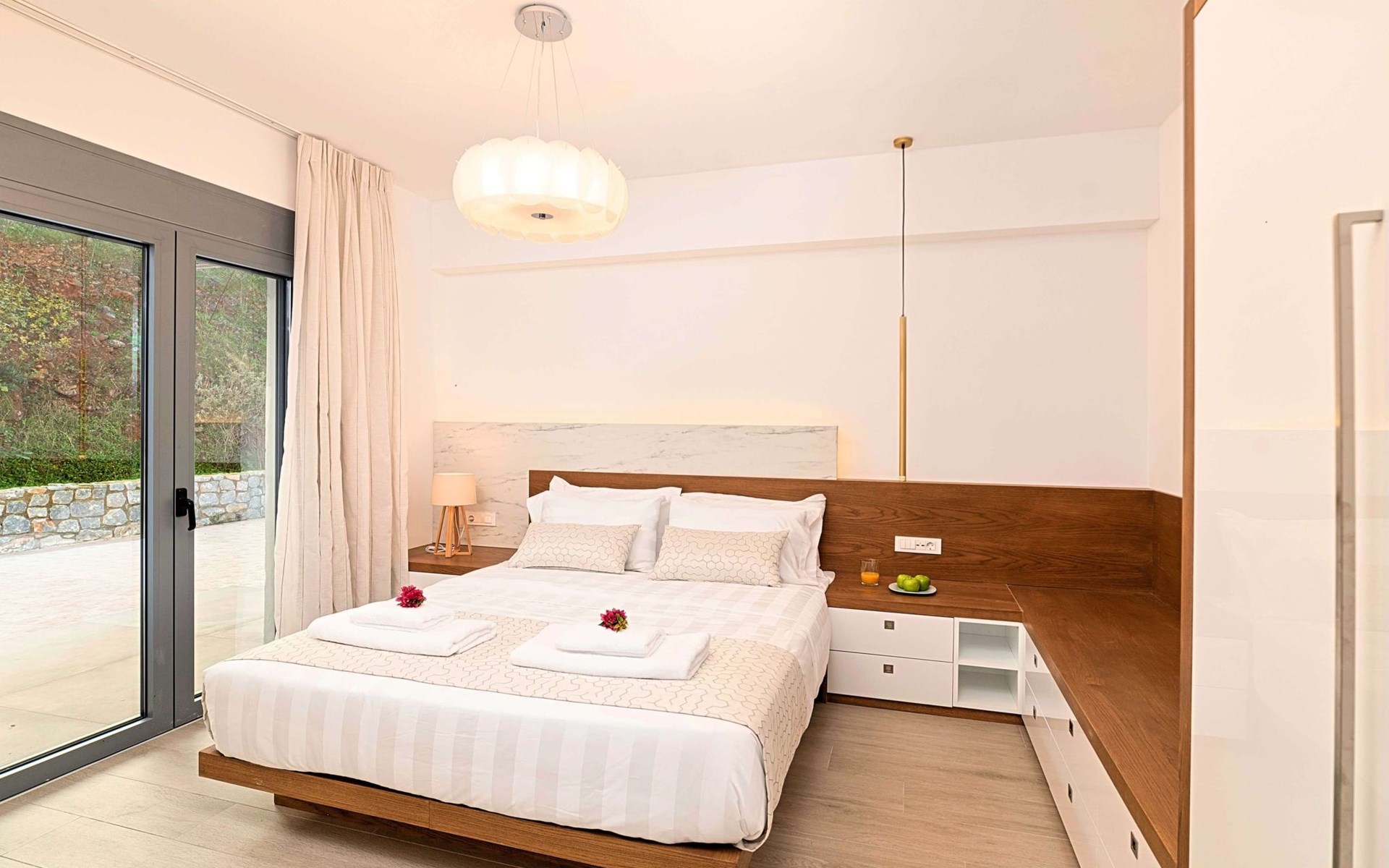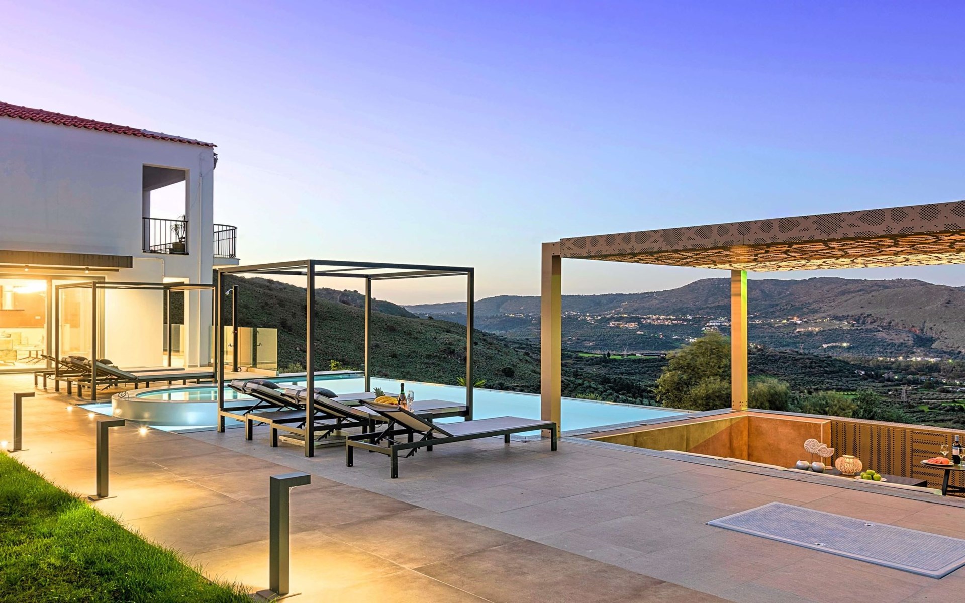 Mistral Suite is an extraordinary three-bedroom luxurious home, ideal for a unique relaxing holiday experience.At the beautiful area of Apokoronas, in the village of Mathes, overlooking olive groves, vineyards and the endless blue of the Cretan Sea.Live an ultimate journey during your stay, live an experience that fuses Cretan chariness with all the comforts of a luxury boutique hotel Suite.Blending seamlessly with its luscious verdant surroundings, has been designed and built as an environmentally friendly home, offering a totally authentic Greek hospitality experience.All in a single gorgeous location a few hundred meters from the largest sandy beach of Crete and the only natural lake of Crete, Kournas.Unwind in the infinity pool surrounded by the large sunbath area.Enjoy a drink at the outdoors sitting area and leave your eyes to explore the endless blue of the sea and the sky.Slipping into your room, will be like stepping into a stylish hotel room, with all the necessary amenities, all complemented by refined style furniture.An oasis of glorious island serenity awaits you at Mistral Suite, so start planning your escape today.Perfect for families or group of friends.Mistral Suite is a detached apartment of two independent apartment building, owned by the same family. With private entrance, private parking, private large garden area with private use of an infinity swimming pool. ● Private parking area.● Direct access to the swimming pool area. The outdoor pool is heated and can reach 6 to 8 degrees more that the 24 h average air temperature with maximum value of 29°CFacilities● A living room with a large Corner Sofa (can accommodate up to two quests) with direct access to the terrace and the pool area● A fully equipped Kitchen with an oven, microwave dishwasher, a fridge, a coffee maker, tea facilities, a toaster, a kettle and dining facilities.● A large bathroom with walking separate shower area.● A bedroom with a queen-size double bed and direct access to the pool and the outdoor sitting area.● A large bathroom with walking separate shower area.● A second bedroom with two twin push together single beds and direct access to the garden, the pool and the outdoor sitting area.● A third bedroom with a queen-size double bed and direct access to the garden.General Facilities● Smart TV at the living room.● Air-conditioning in all areas.● Free Wi-Fi internet access.● Outdoor sitting area with comfortable sofas.● Portable BBQ● Private infinity Swimming pool with whirlpool and children section.● Sun lounge area● Washing machine / Dryer.● Iron and ironing board.● Safe deposit box.● Hair dryer in both bathrooms.● Linen and towels.● Toiletries.● Swimming pool towels.● Baby cot.● High chair for children.● Towels and bed linen changed and cleaned every 3 or 4 days.There are several sandy beaches along the coast at Georgioupoli where swimming is sheltered with a breakwater. It has the longest beach on the island, with over nine kilometres of golden sand. There is abundant wildlife in the area attracted by the river and surrounding semi-wetland. Loggerhead turtles have been known to lay eggs on some of the local beaches. There are various activities available including boat trips, horse riding, bike tours and even a small tourist train than transports visitors from the sea front to places of interest including Lake Kournas.Boat tripsHorse ridingLong expanse of sandy Blue Flag beachesWatersportsLocal guided walks and mountain bike hireExcellent choice of cafes and tavernas, many with free WIFILake Kournas – Cretes only freshwater lakeThe pretty village nearby of Argiroupolis and Roman LappaMini markets and 2 ATM machinesGeorgioupolis is found at the apex of Almiros Bay on the Sea of Crete, with Cape Drapano and its rocky coast to the north and the long sandy beaches towards Rethimno in the east, just 20 km away. Three rivers meet the sea at the village; the largest, Almiros, creates a small harbour for fishing and tourist boats. The entrance to the village on the old road from Vrisses is a long avenue of eucalyptus treeGeorgioupoli or Georgioupolis (Greek: Γεωργιούπολη) is a village and resort on the Greek island of Crete. It is located 43 km east of Chania, about 22 km west of Rethymno and about 100 km west of Heraklio in the Apokoronas region. It was named after Prince George of Greece, high commissioner of the island in the last years of Ottoman occupation.Formerly a small fishing village, Georgioupolis is very much a tourist town now, with many cafés, tavernas and small hotels and apartment blocks. The town square is surrounded by outdoor seating used by tourists and locals alike, enjoying their drinks and ice creams. The 9 km beach is the main attraction of the area, with Kalyvaki beach on the other side of the river as well. Nearby Lake Kournas is also a popular excursion by foot, bicycle or tourist ‘train’. Georgioupolis is a well-located base for exploring the traditional villages of the area towards Vamos or into the White Mountains to the south.You are kindly requested to contact us few days in advance so we can organise your private check in at the villa. Your flight details are requested. 00001154321