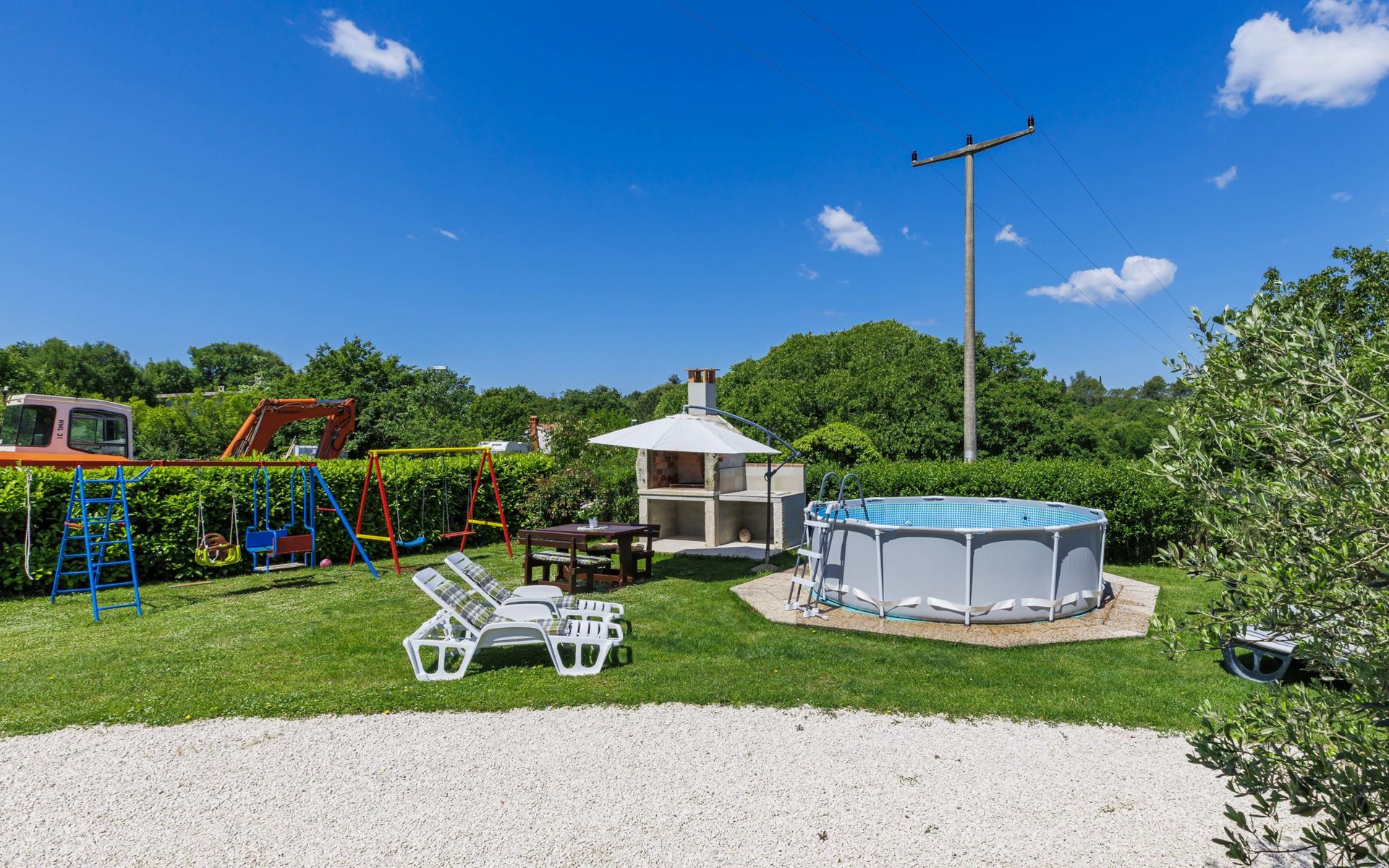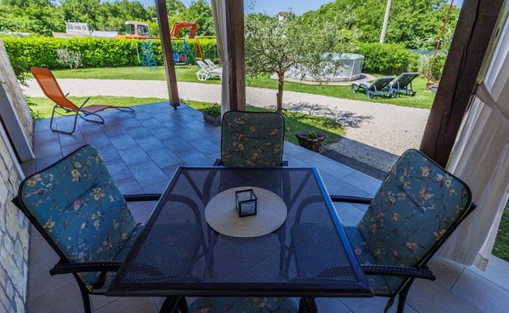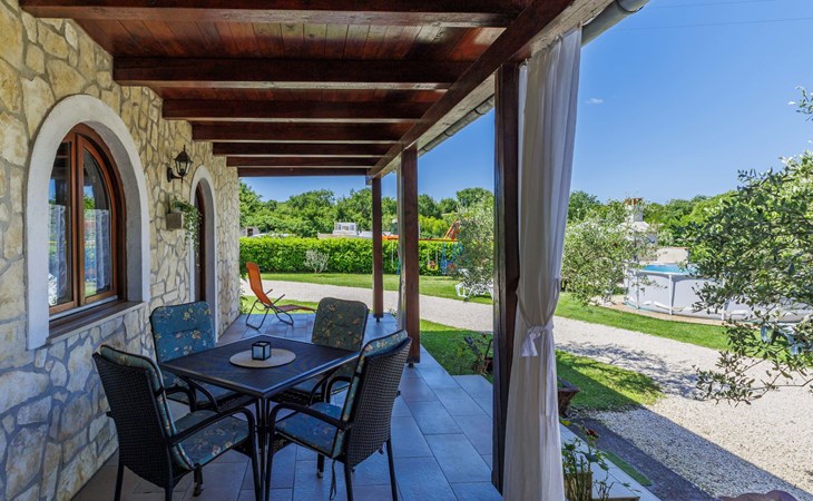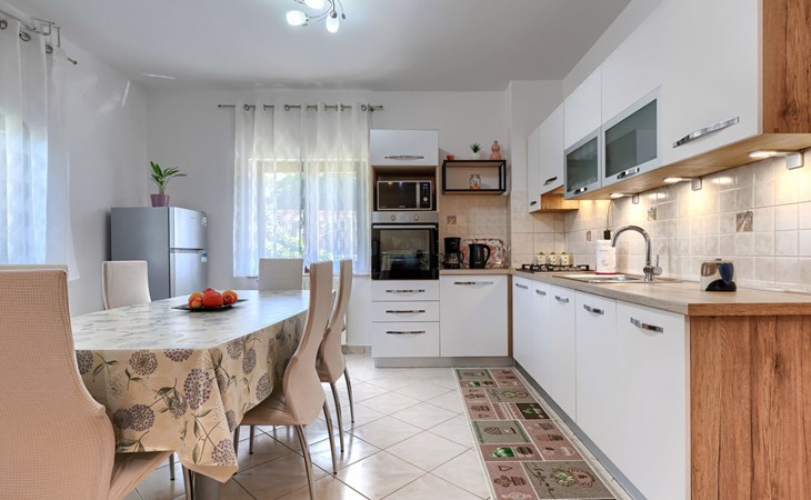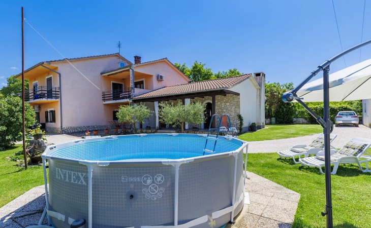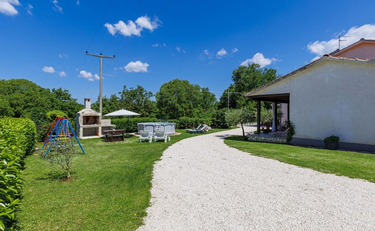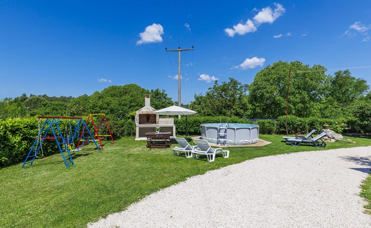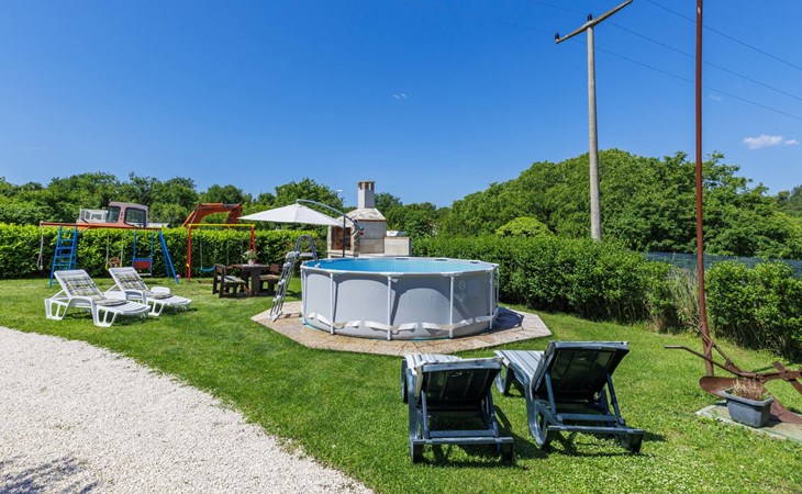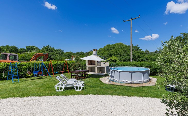 Twee onder één kap woning "Cekić". 300 m van het centrum van Sosići, 11 km van het centrum van Rovinj, 26 km van het centrum van Poreč, 11 km van zee. Voor medegebruik: terrein 400 m2 met gazon en bomen, openluchtzwembad rond (3,5 m diameter, 140 cm diepte, seizoensgebonden beschikbaarheid: 01.Mei. - 01.Okt.). Tuinmeubelen, barbecue (schommel). In het huis: internetaansluiting. Parkeerplaats (voor 3 auto's) op het terrein. Winkel 1.5 km, supermarkt 3 km, bushalte 200 m, kiezelstrand 11 km. Jachthaven 11 km.