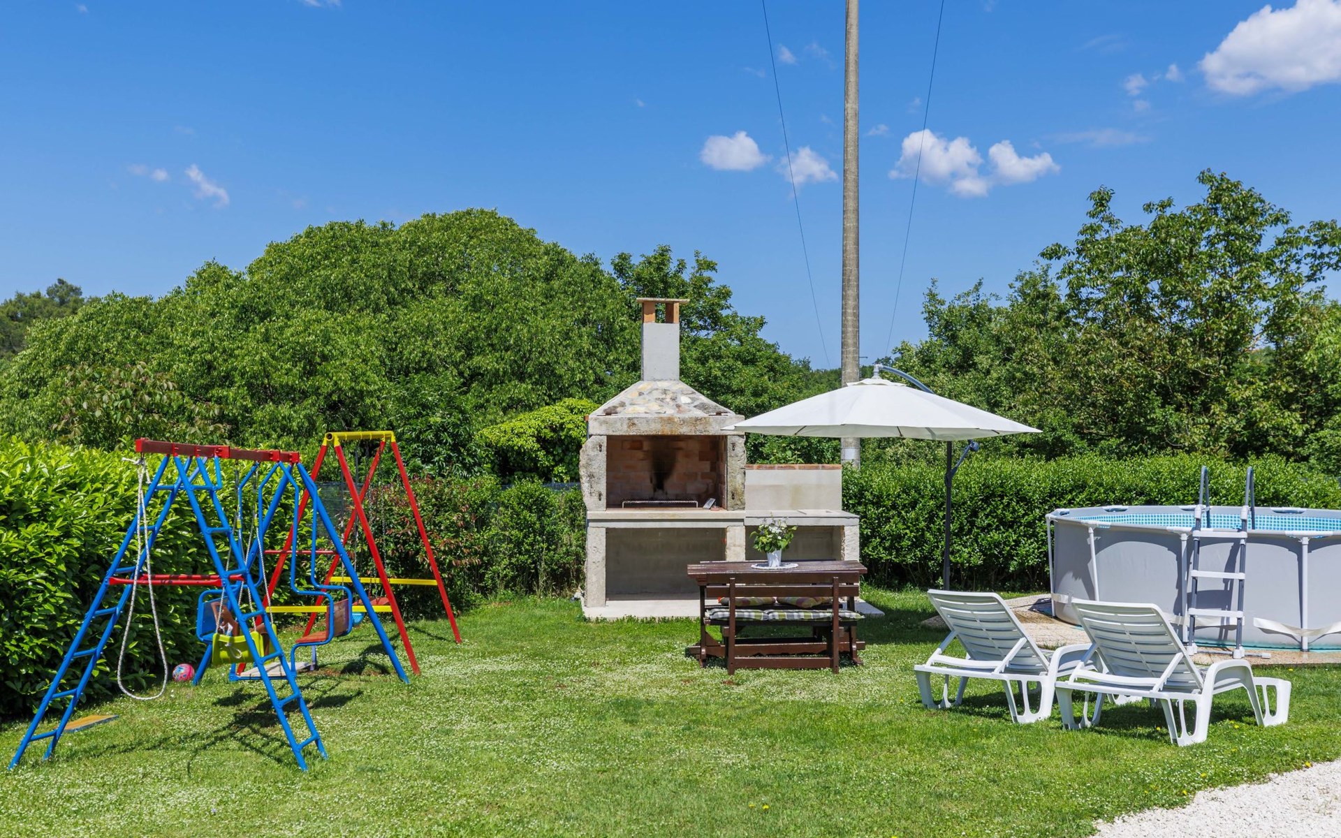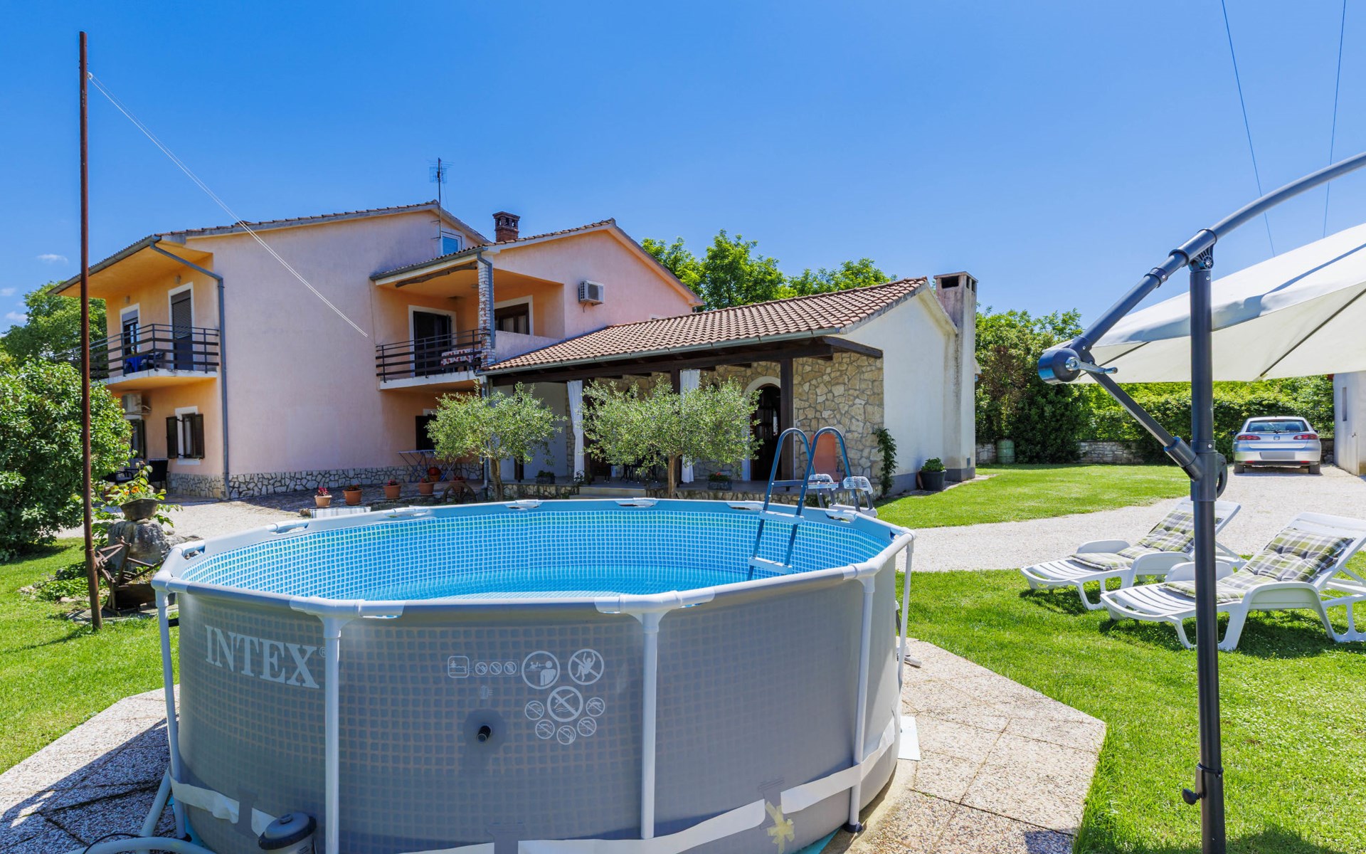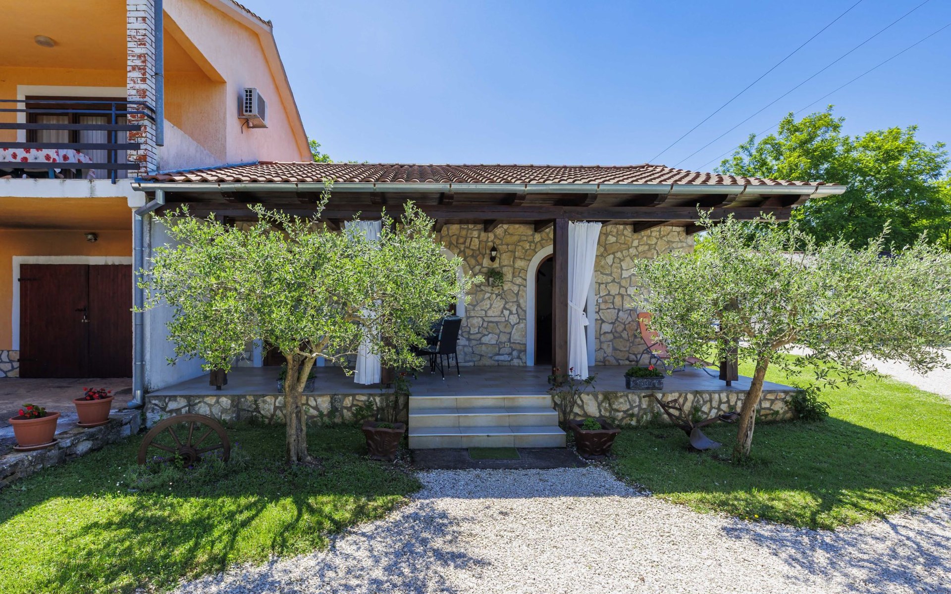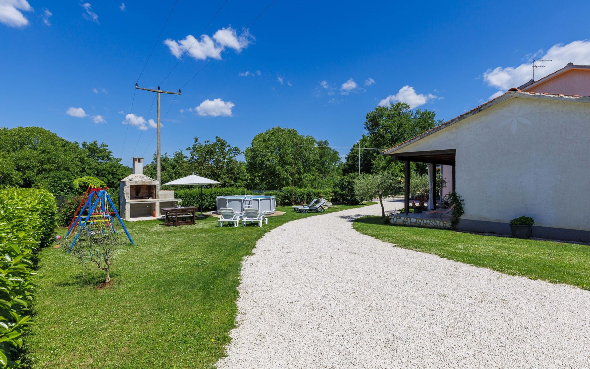 Twee onder één kap woning "Cekić". 300 m van het centrum van Sosići, 11 km van het centrum van Rovinj, 26 km van het centrum van Poreč, 11 km van zee. Voor medegebruik: terrein 400 m2 met gazon en bomen, openluchtzwembad rond (3,5 m diameter, 140 cm diepte, seizoensgebonden beschikbaarheid: 01.Mei. - 01.Okt.). Tuinmeubelen, barbecue (schommel). In het huis: internetaansluiting. Parkeerplaats (voor 3 auto's) op het terrein. Winkel 1.5 km, supermarkt 3 km, bushalte 200 m, kiezelstrand 11 km. Jachthaven 11 km.