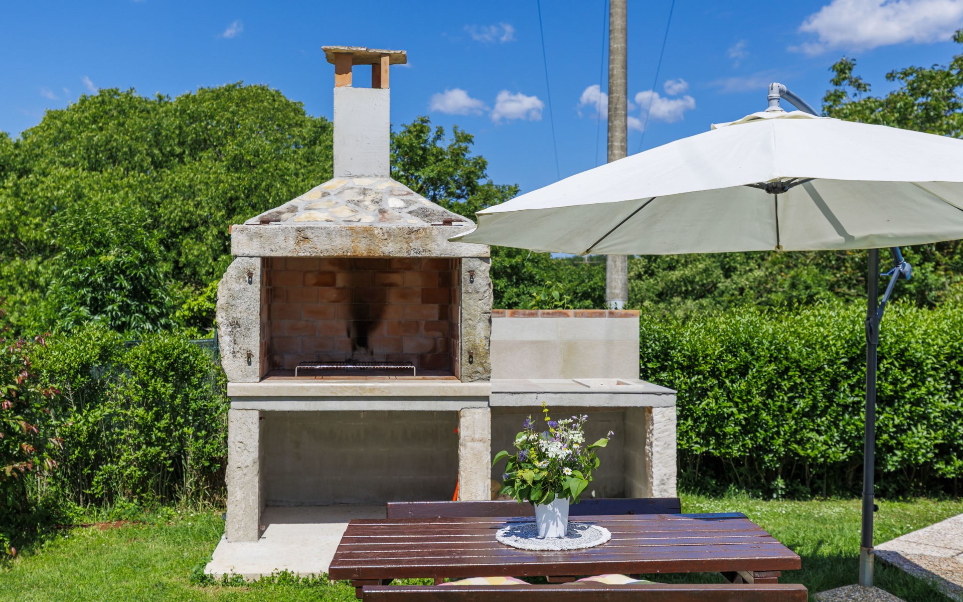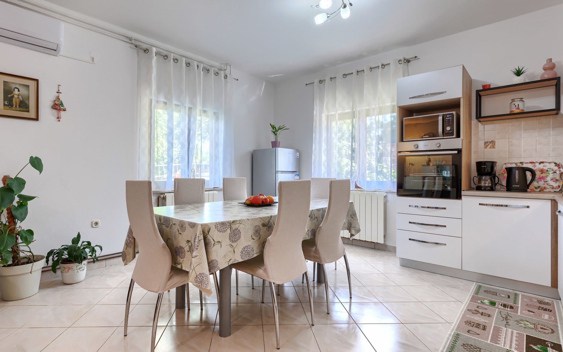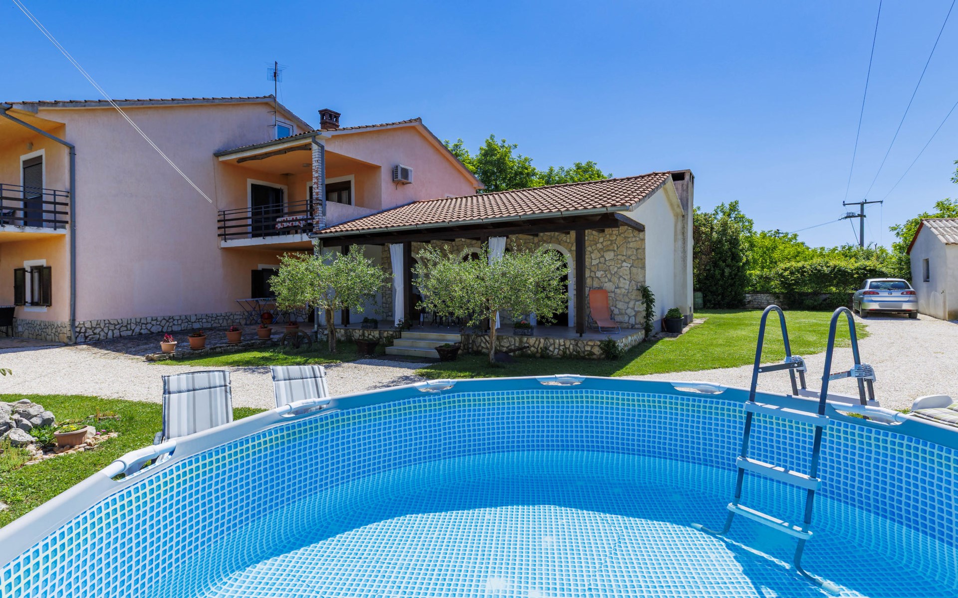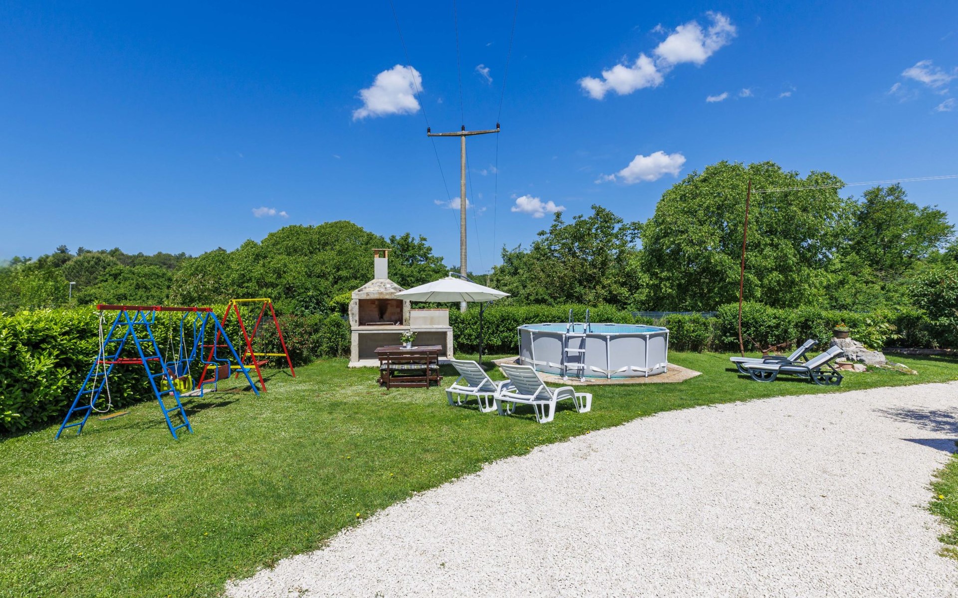 Twee onder één kap woning "Cekić". 300 m van het centrum van Sosići, 11 km van het centrum van Rovinj, 26 km van het centrum van Poreč, 11 km van zee. Voor medegebruik: terrein 400 m2 met gazon en bomen, openluchtzwembad rond (3,5 m diameter, 140 cm diepte, seizoensgebonden beschikbaarheid: 01.Mei. - 01.Okt.). Tuinmeubelen, barbecue (schommel). In het huis: internetaansluiting. Parkeerplaats (voor 3 auto's) op het terrein. Winkel 1.5 km, supermarkt 3 km, bushalte 200 m, kiezelstrand 11 km. Jachthaven 11 km.