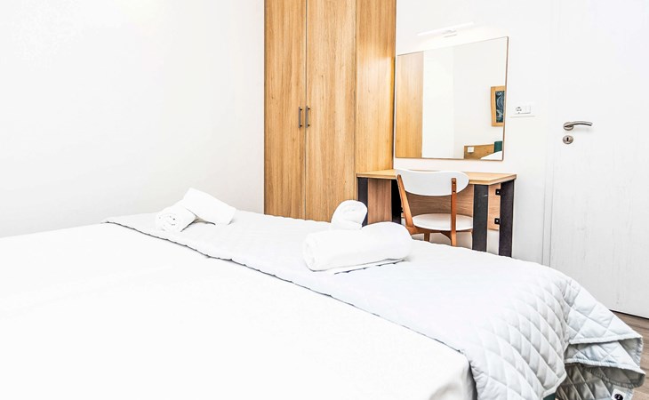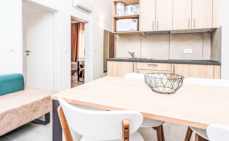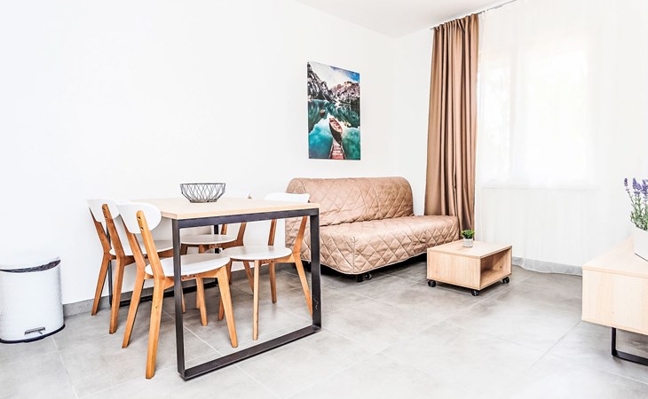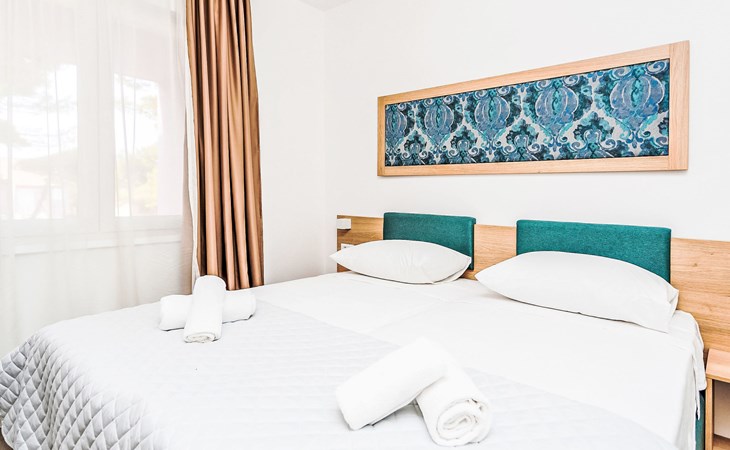 Vakantiecomplex "Medena". In de wijk Seget Donji, 3 km van het centrum van Trogir, 30 km van het centrum van Split, direct aan zee. Voor medegebruik: terrein met planten en bomen, 3 zwembaden (31 m2, 140 cm diepte, seizoensgebonden beschikbaarheid: 01.Apr. - 01.Nov.) met trap. Kinderzwembad, buitendouche, tennisbaan (extra), basketbal (extra), kinderspeelplaats. In het complex: receptie, restaurant, internetaansluiting, wasserette. Beschikbaar: fietsen (extra). Ontbijt volpension half pension op verzoek op aanvraag (extra). Luchthaventransfer (extra). Parkeerplaats (extra) op het terrein. Bushalte 650 m. Het objekt is geschikt voor 2 volwassenen + 2 kinderen. Vliegveld 8 km van het huis. De afgebeelde foto is slechts een voorbeeld. 1 slaapbank voor twee personen in de woon/eetkamer, deze is geschikt voor 2 kinderen tot 12 jaar oud.
