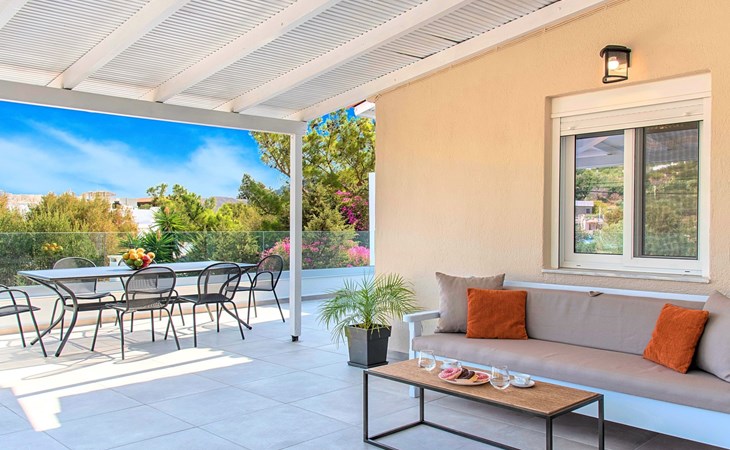 Cretan Elegance for a Modern LifestyleEtoile villa is a cozy Maisonette consists with two modern apartments. With fresh look, elegant atmosphere, comfortable, outfitted with all modern amenities, where the distinctive architecture of the villa blends in harmony with the surrounding nature. You can relax at the swimming pool area, surrounded by a flourishing garden, while enjoying a nice and refreshing drink. In our villa you will find everything that is required to make your stay in Crete an unforgettable experience.This beautiful and elegant property in Crete is few minutes from many sandy beaches and just 10minutes drive from the beautiful city of Agios Nikolaos. Dear guests, relax and enjoy your stay at our villa and take in the aromas of the intoxicating sea breeze, the blossoming herbs and the festivity of nature surrounding you.Etoile Villa is ideal for big families, a group of families or a group of friends. Enjoy your vacations with your parents or with the rest of your family members while at the same time preserving your privacy just like at your own home. The apartments are built one over the other. The Villa can accommodate up to 10 guests (4 guests at the upper apartment and 6 quests at ground floor apartment).The outdoor pool is heated and can reach 6 to 8 degrees more that the 24 h average air temperature with maximum value of 29°C. Terrace with garden furniture and sunshade /own balcony, grill/barbecueEtoile Villa consists by two apartments Ground Floor Apartment● A living room with two comfortable sofas (can accommodate up to two guests), dining area, large smart TV.● A fully equipped Kitchen with an oven, microwave dishwasher, a fridge, a coffee maker, tea facilities, a toaster and a kettle.● A bedroom with a double bed.● A bathroom with shower● A bedroom with two single beds pushed together.Upper floor apartment● A living room with two comfortable sofa beds (can accommodate up to two guests), sitting area, large smart TV.● An auxiliary Kitchen, with a fridge, a coffee maker, tea facilities, a toaster and a kettle.● A large bedroom with two single beds pushed together.● A bathroom with shower.● A large terrace with dining area.General Facilities● TV at the living rooms.● Air-conditioning in all areas.● Free WiFi internet access.● Outdoor dining set (table with chairs).● Washing/Dryer machine.● Iron and ironing board.● Safe deposit box.● Hair dryer.● Linen and towels.● Toiletries.● Swimming pool towels.● Baby cot.● High chair for children.● Towels and bed linen changed and cleaned every 3 or 4 days.● Private parking area.● Private Heated Swimming pool● Sun lounge area● BBQ corner (outdoor kitchen)Walking distance from one of the most beautiful Cretan beaches - Daios BeachA private heated swimming pool We are happy to host happy guests. Welcome to our beautiful island! Enjoy the world famous Cretan hospitality! 1298203