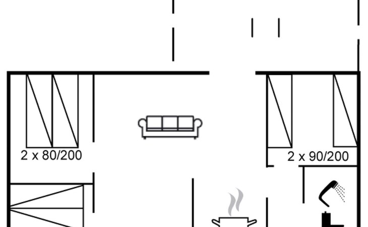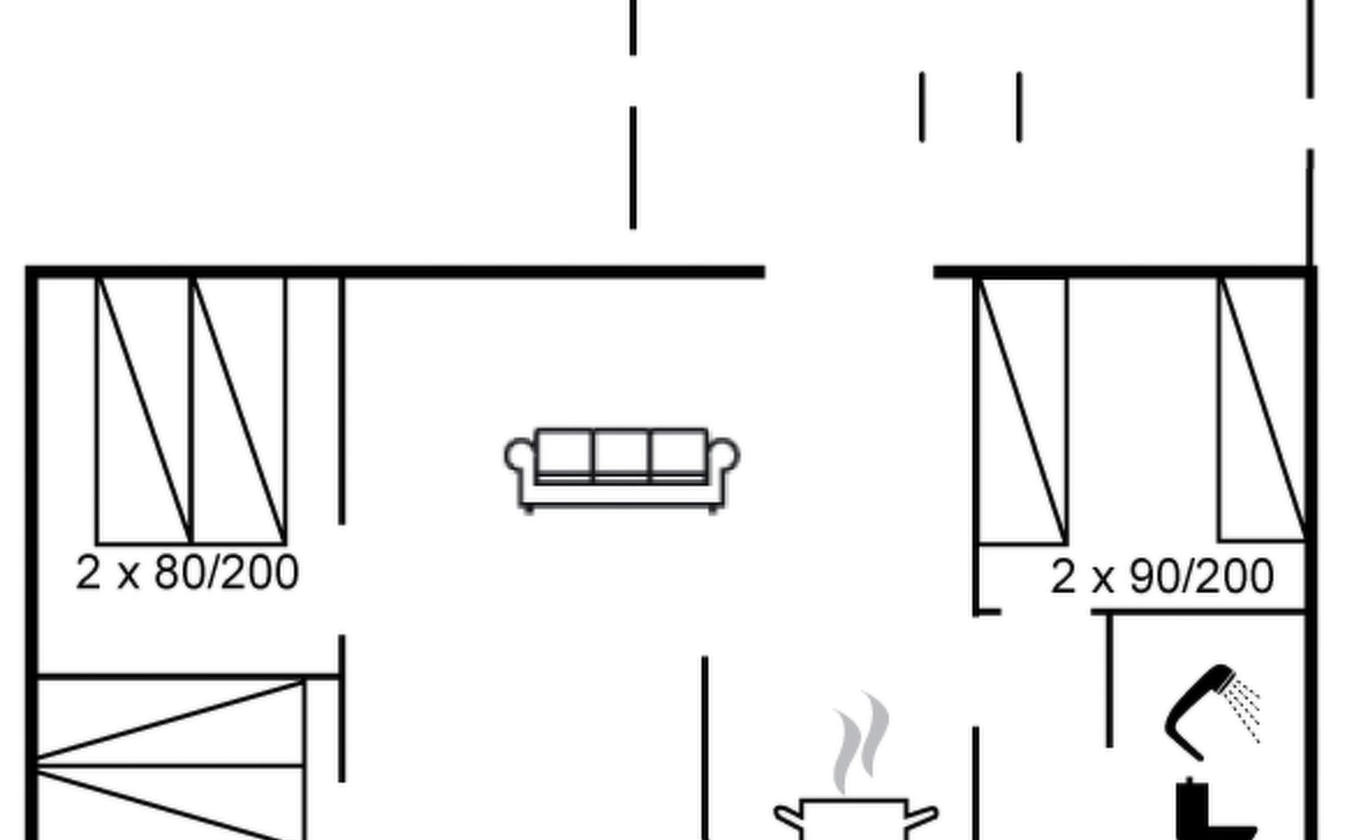 Vakantiedorp, bouwjaar 1973. 250 m van zee. Voor alleengebruik: terras (34 m2). Levensmiddelenwinkel 2 km.