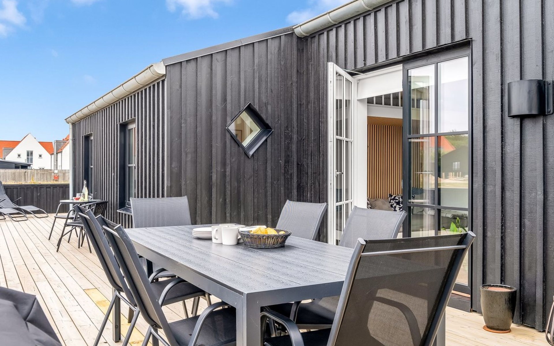 Eengezinswoning, bouwjaar 2023. 500 m van zee. Voor alleengebruik: wild terrein 350 m2. Barbecue. In het huis: wasmachine, droger. Parkeerplaats bij het huis. Levensmiddelenwinkel 350 m. De eigenaar accepteert geen jeugdgroepen.
