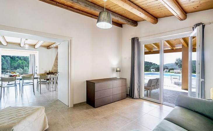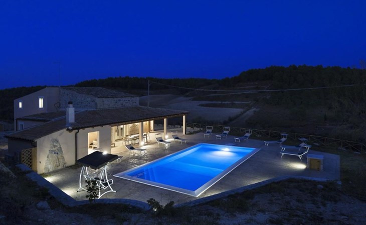 Maximaal 3 huisdieren/honden toegestaan. Delightful villa immersed in the green countryside of Giarratana, in Contrada Serramargi, in an oasis of Mediterranean vegetation. The house is on two levels. On the ground floor, the large and bright living room, equipped with two double sofa beds and a TV cabinet, is furnished with style and simplicity, which matches perfectly with the furnishings of the kitchen. Both are arranged in a single room to make the most of the brightness and space that the house offers. In addition, we find a second living room that can also be used as a bedroom thanks to the comfortable double sofa bed inside. On the ground floor we also find the laundry room with washing machine, a bedroom with two single beds, and a double bedroom. Each room on this floor has an en-suite bathroom. On the second floor is the sleeping area which consists of three bedrooms, one double, one twin and one room with three single beds. All the rooms have a bathroom with shower. The large outdoor spaces allow you to fully enjoy the Villa also outside, thanks to a spacious veranda equipped with garden furniture, barbecue and outdoor kitchen, from here you can have a view of all the greenery surrounding the house and of the beautiful swimming pool for the exclusive use of the tenants. The whole house is furnished to be comfortable in both summer and winter holidays, it is equipped with hot/cold air conditioners, in the living room and in each bedroom.Short descriptionOther : Non-smoking houseShort description 1Total kitchens : 1Garden and outdoor spacesGarden equipment : GrillAdjacent leisure facilities : Swimming pool, Private outdoor pool, Hot tubThe house is built on three levels, the lower one with a verandawith table tennis table and foosball table, consisting of a large dining room with a fireplace inmasonry fireplace and a large wooden dining table, complete with double sofa bed; from the aforementionedroom leads to a fully equipped kitchen with electric oven andrefrigerator with freezer. The sleeping area comprises: two double bedrooms with dresser andwardrobe and a twin with bunk beds, a laundry room with bathroom and shower.The ground floor, the floor from which the property is accessed, consists of a cosyliving room with a sofa with peninsula, a coffee table made of wood and wrought iron, a low table for theTV and a table clearing with several compartments at your disposal. From the living room you have access to acomfortable equipped kitchen and a bathroom.The first floor comprises a double bedroom with a chest of drawers and two bedside tables, withadjoining bathroom with shower and a small private veranda overlooking the pool.The entrance to the house is through a large forecourt used as a private parking area. Attention, however, is drawn to the magnificent swimming pool with jacuzzi that dominates the entire veranda, with barbecue and brick seats. The pool is open from April until October inclusive.The entire Villa is furnished and equipped to ensure every comfort for guests who choose it. The garden furniture, such as rocking chairs, deckchairs, masonry seats, allow you to enjoy the Villa in extreme comfort even outdoors and are all available to you, the guests. The property is equipped in all rooms with air conditioning. HEATING: Fireplace, heat pump.Check-in: from 17:00 to 00:00Check-out: from 08:00 to 10:00. IT088004C2M4AYK9PQ