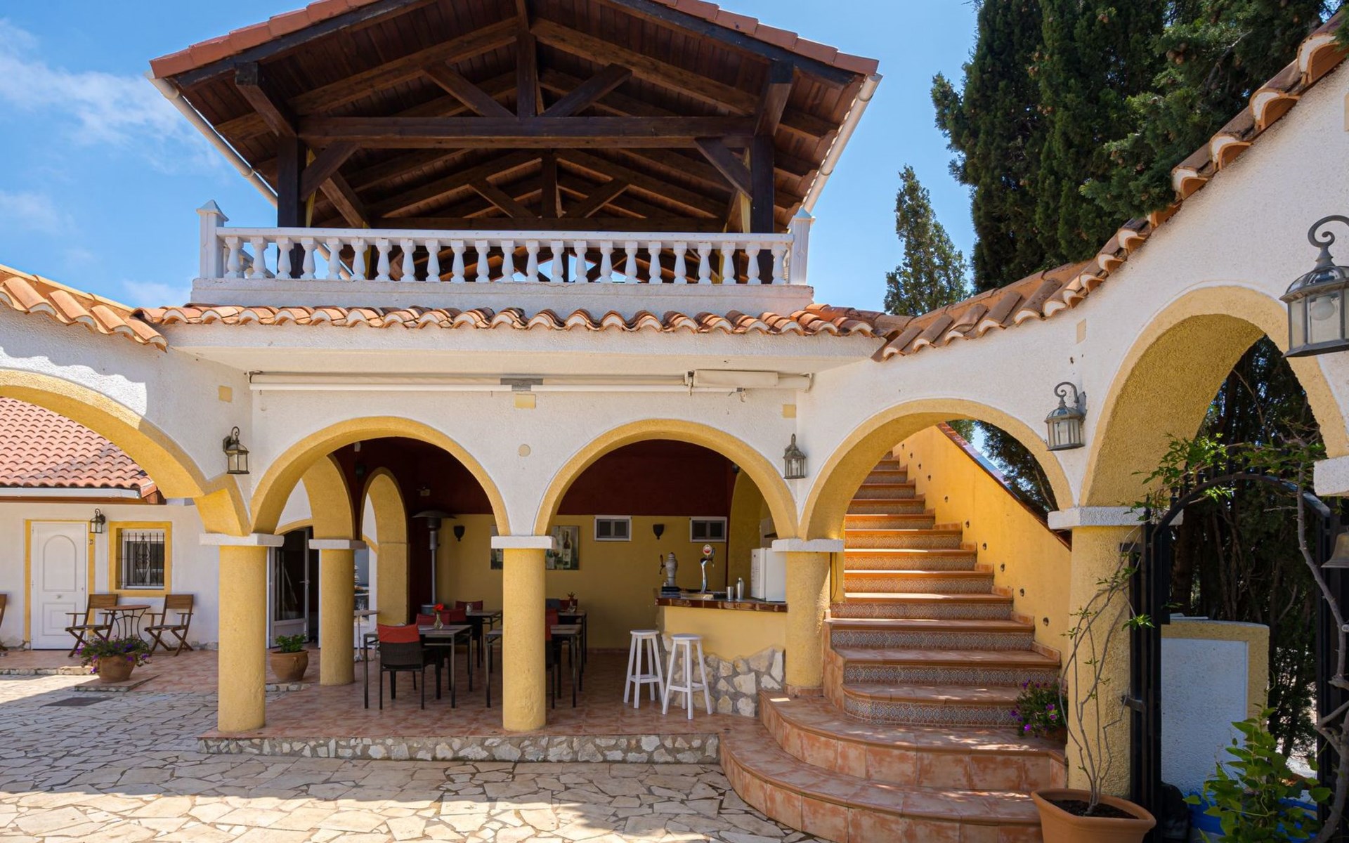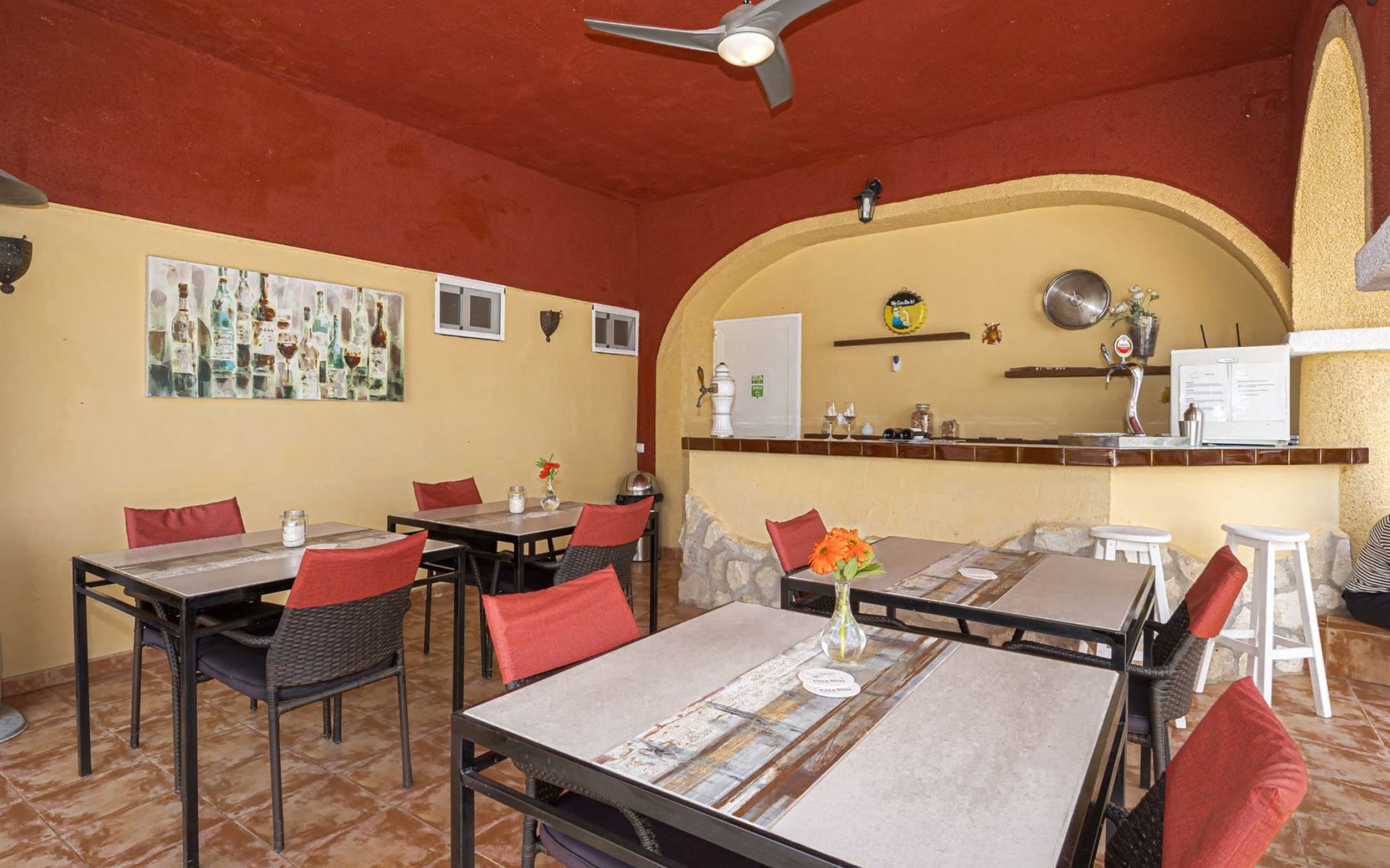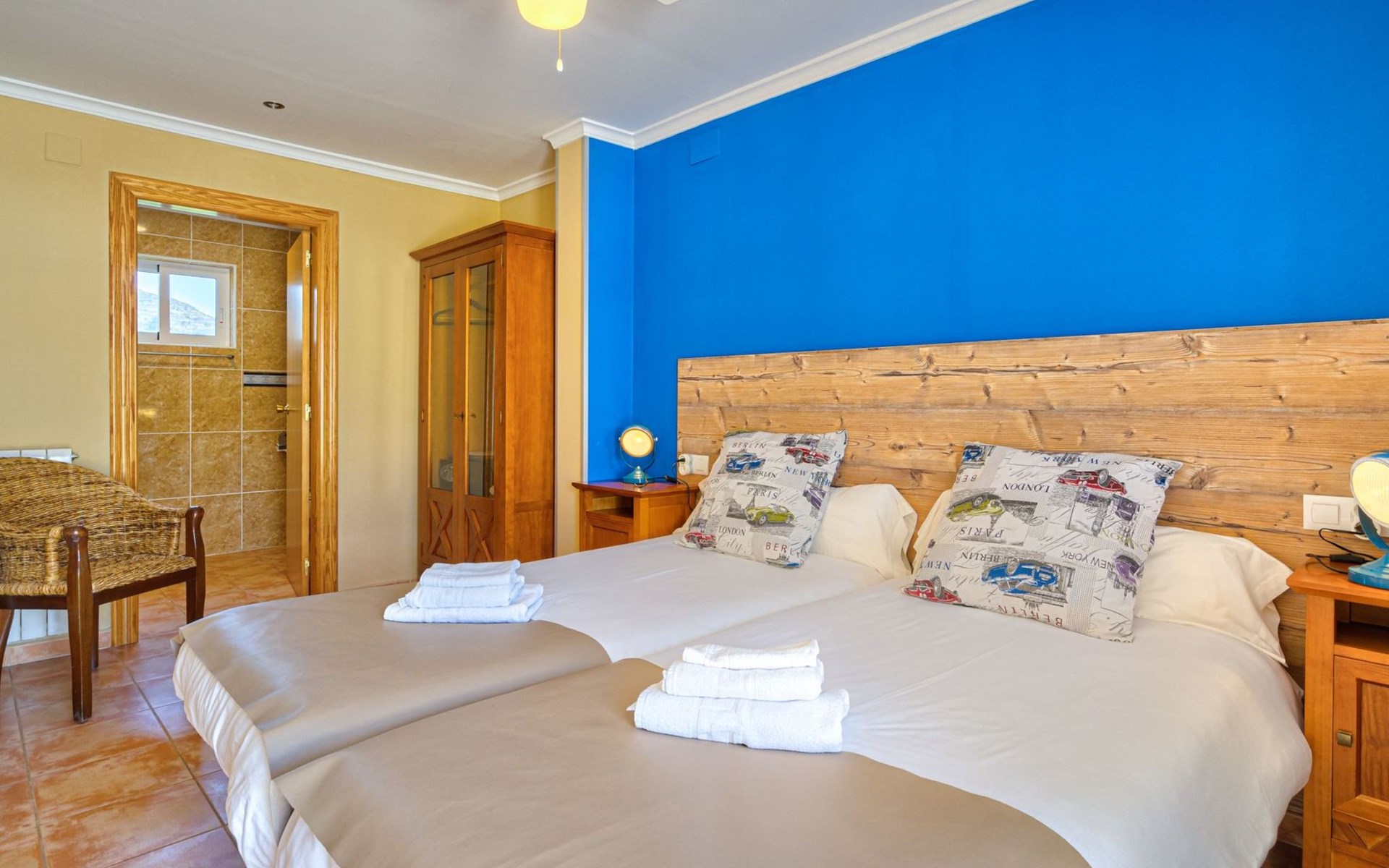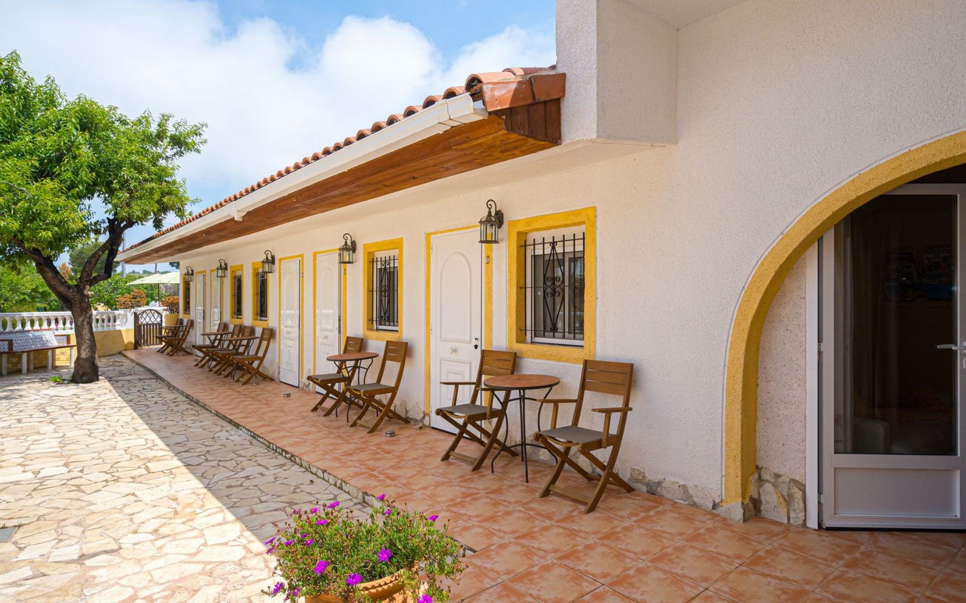 Binnen op ons terrein verwelkomt de finca u met vijf sfeervolle tweepersoonskamers, elk uitgerust met een en suite badkamer, moderne faciliteiten zoals zeep & shampoo, een föhn, koffie- & theevoorzieningen, een kluisje, en een plafondventilator met ledverlichting en afstandsbediening. Voor de koelere avonden is er centrale verwarming beschikbaar( extra toeslag). De algemene woonkamer is voorzien van airconditioning, een flatscreen tv met sateliet TV, Nederlandstalige kanalen en Netflix, en een professioneel uitgeruste keuken, waardoor het een perfecte plek is om samen te komen.
