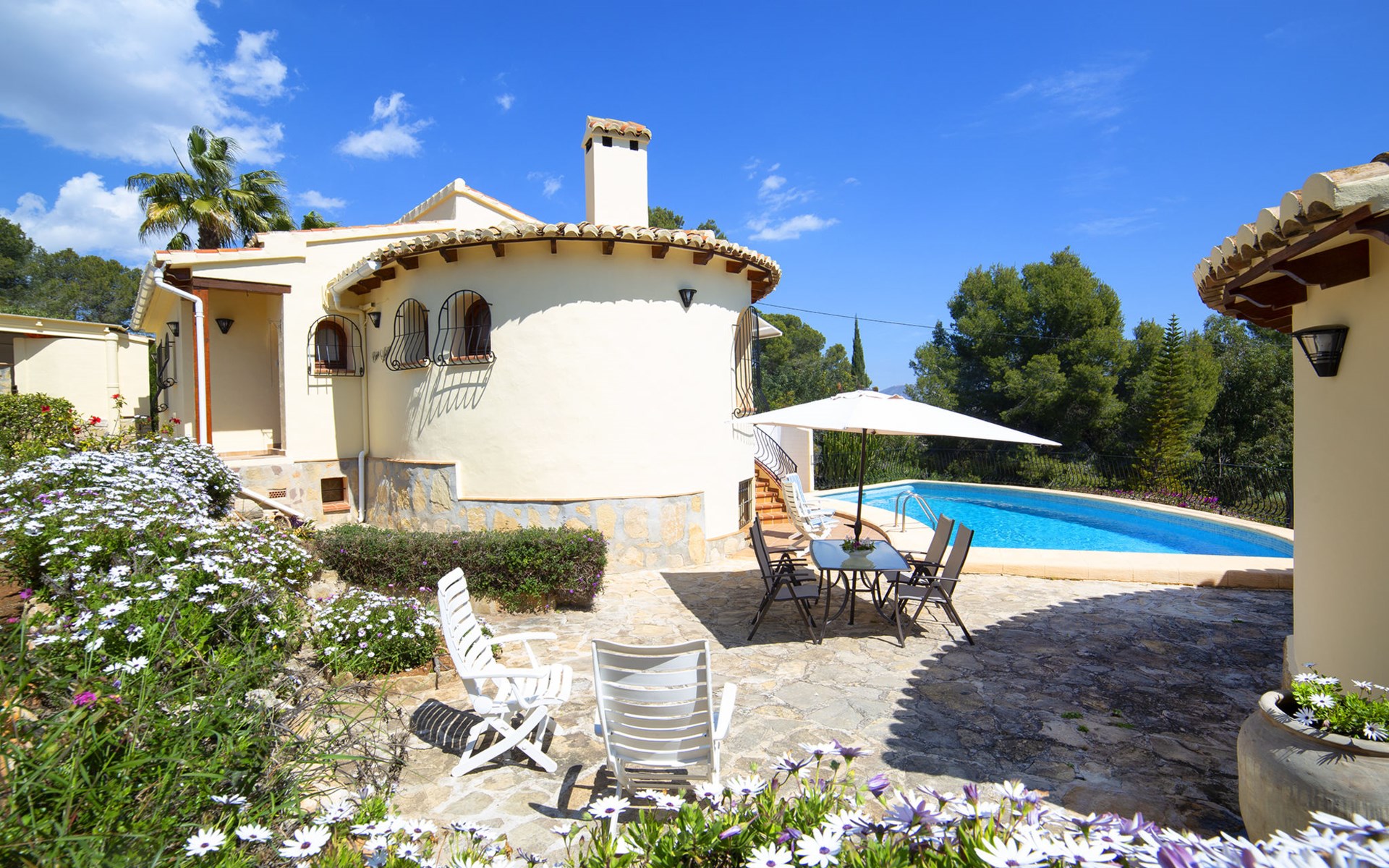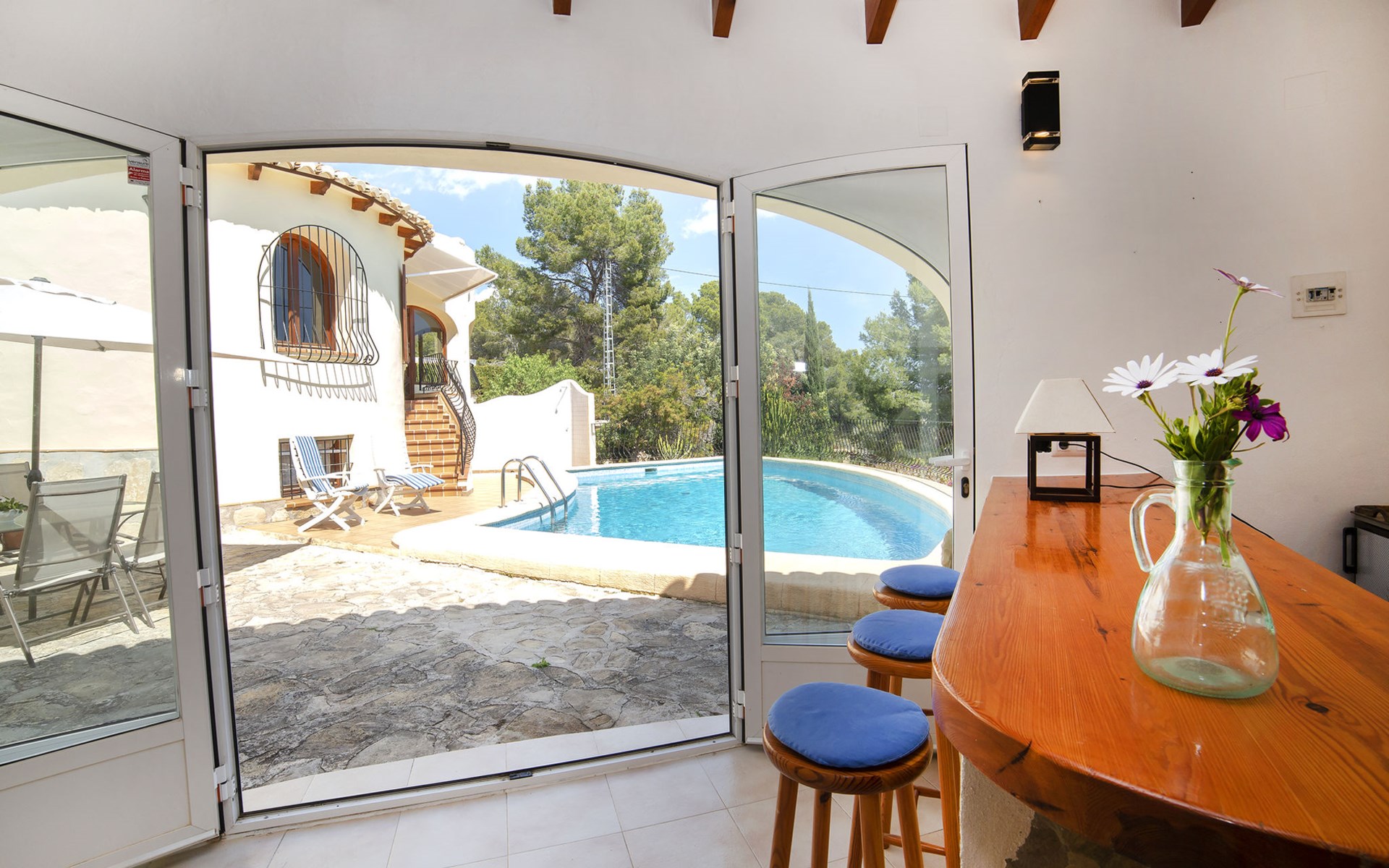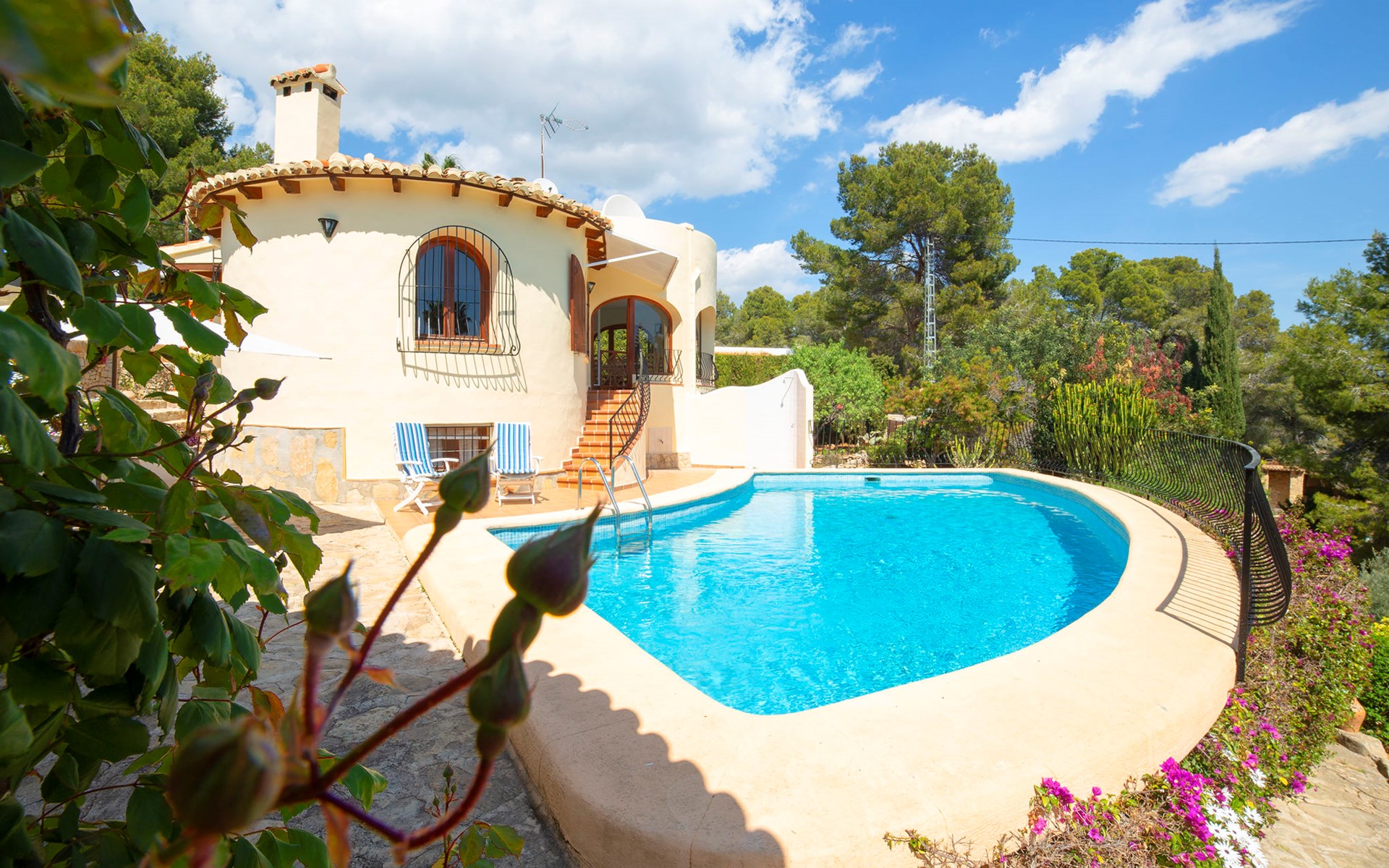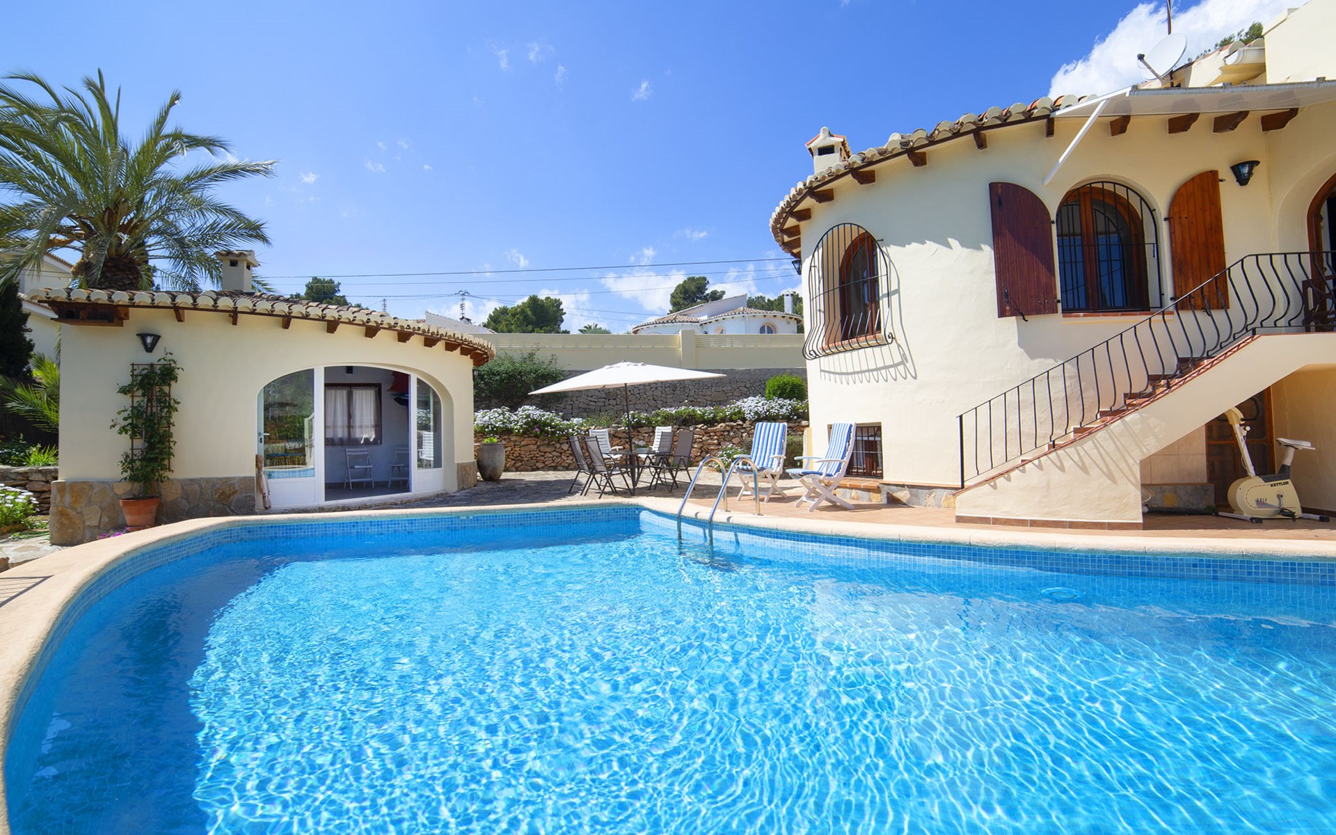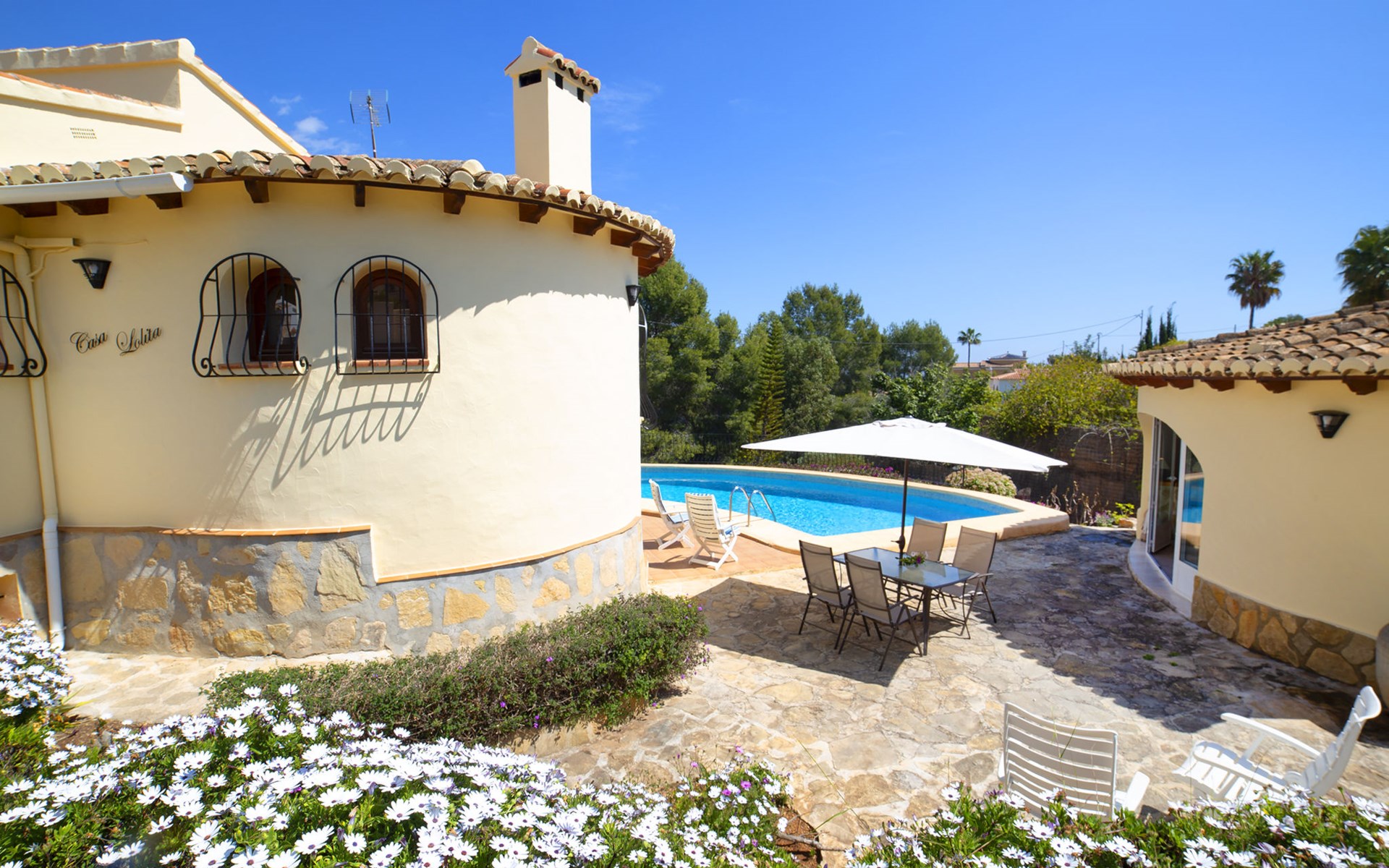 Benissa Costa: Mooi, gezellige eengezinswoning "Lolita". In de plaats, 10 km van het centrum van Calpe, aan de rand van de plaats, 7.5 km van het centrum van Benissa, rustige, zonnige ligging villa wijk, gebied met weinig verkeer, 2 km van zee, 4 km van het strand. Voor alleengebruik: terrein (omheind), tuin op verschillende niveaus, openluchtzwembad (9 x 5 m, seizoensgebonden beschikbaarheid: 01.Jan. - 31.Dec.). Buitendouche, terras, grill. In het huis: wasmachine. Overdekte parkeerplaats. Supermarkt 3 km, restaurant 2 km, bushalte 2.5 km, zandstrand "Cala La Fustera" 4 km kiezelstrand "Cala Baladrar" 2 km. Jachthaven 4.7 km, golfterrein (9 holes) 4.7 km. Attracties in de buurt: Aqualandia, Mundomar, Terra MÃtica, Les Fonts de l'Algar, Castillo de Guadalest, Terra Natura, Benidorm Palace (Benidorm). De eigenaar accepteert geen jeugdgroepen. Een deel van het huis is afgesloten en niet bezet.