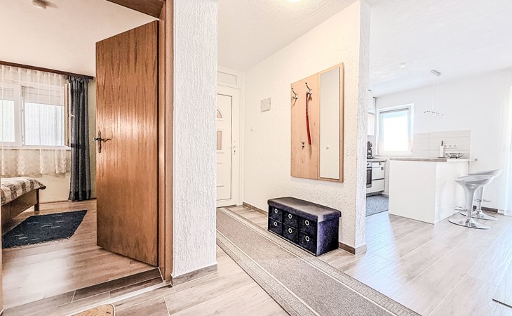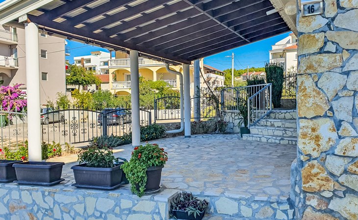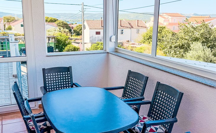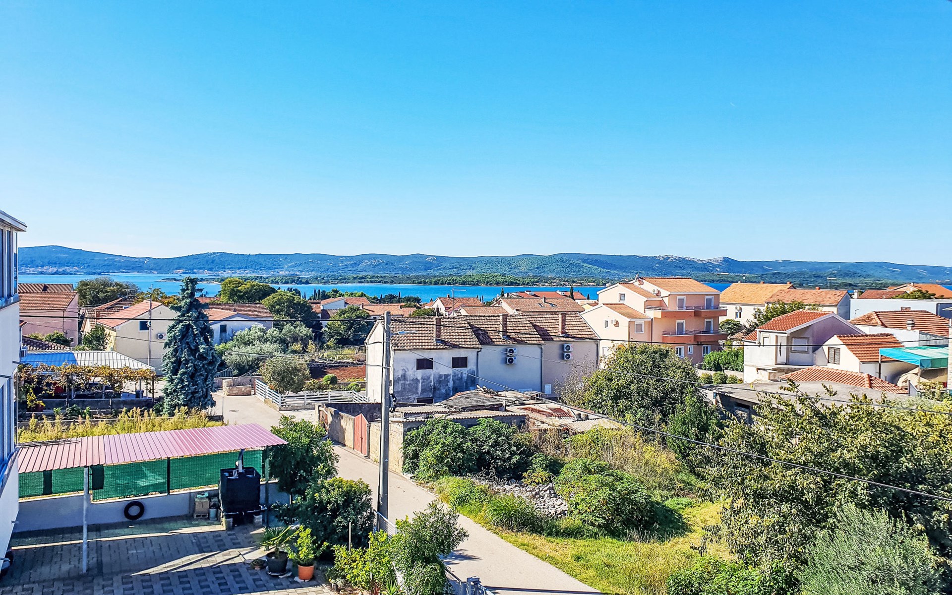 Appartementencomplex "Ana". 600 m van het centrum van Sv. Filip i Jakov, zonnige, verhoogde ligging, 600 m van zee, 600 m van het strand. Voor medegebruik: terrein 800 m2 (omheind). Barbecue. In het huis: internetaansluiting, wasmachine. Parkeerplaats (voor 2 auto's) bij het huis op het terrein. Winkel 300 m, restaurant 700 m, bushalte 600 m, kiezelstrand 800 m. Bekende meren kunnen gemakkelijk worden bereikt: Vransko jezero 12 km.