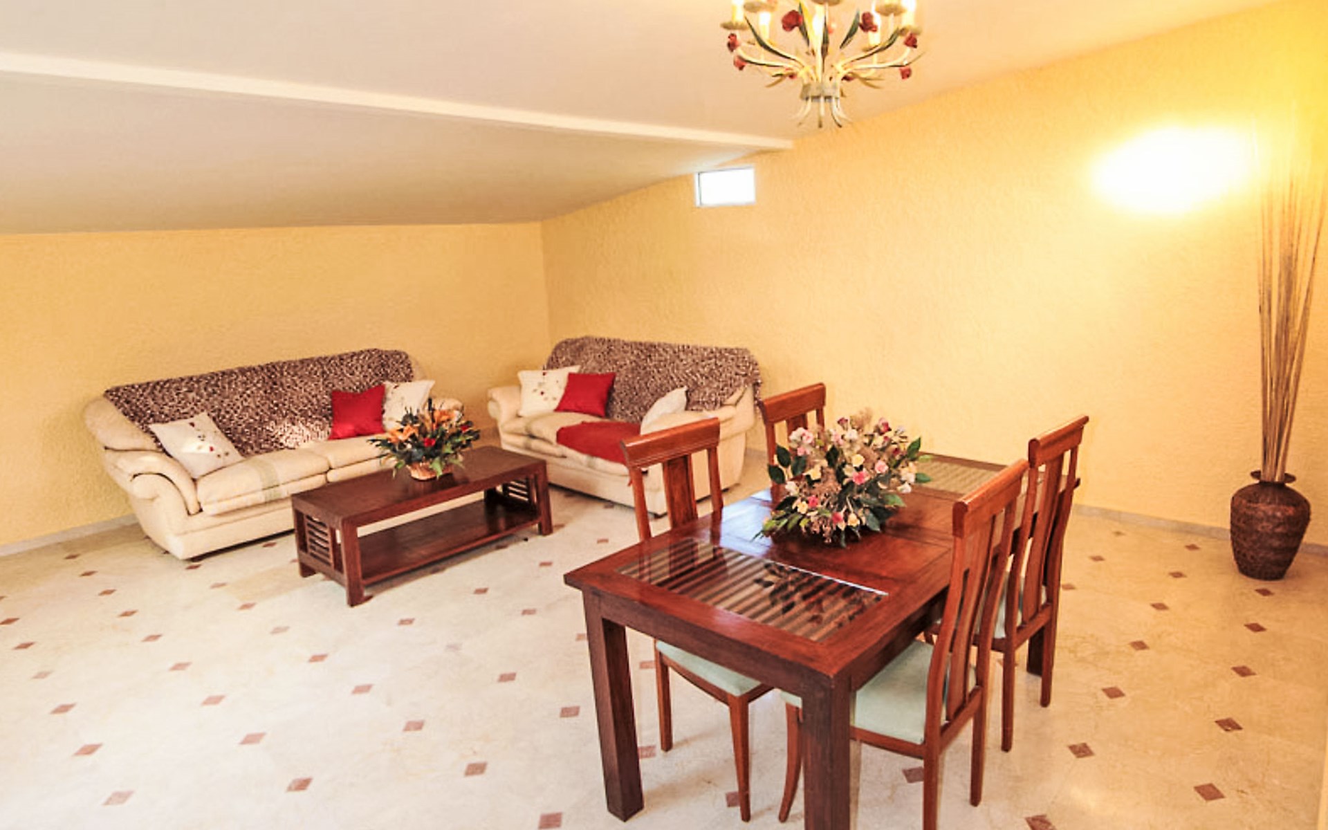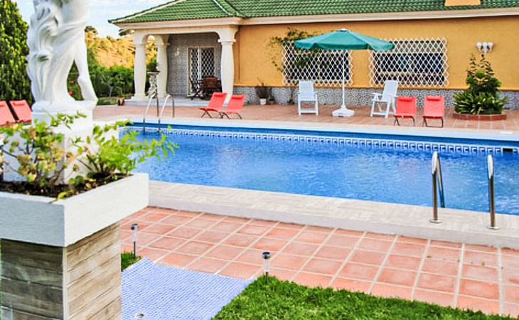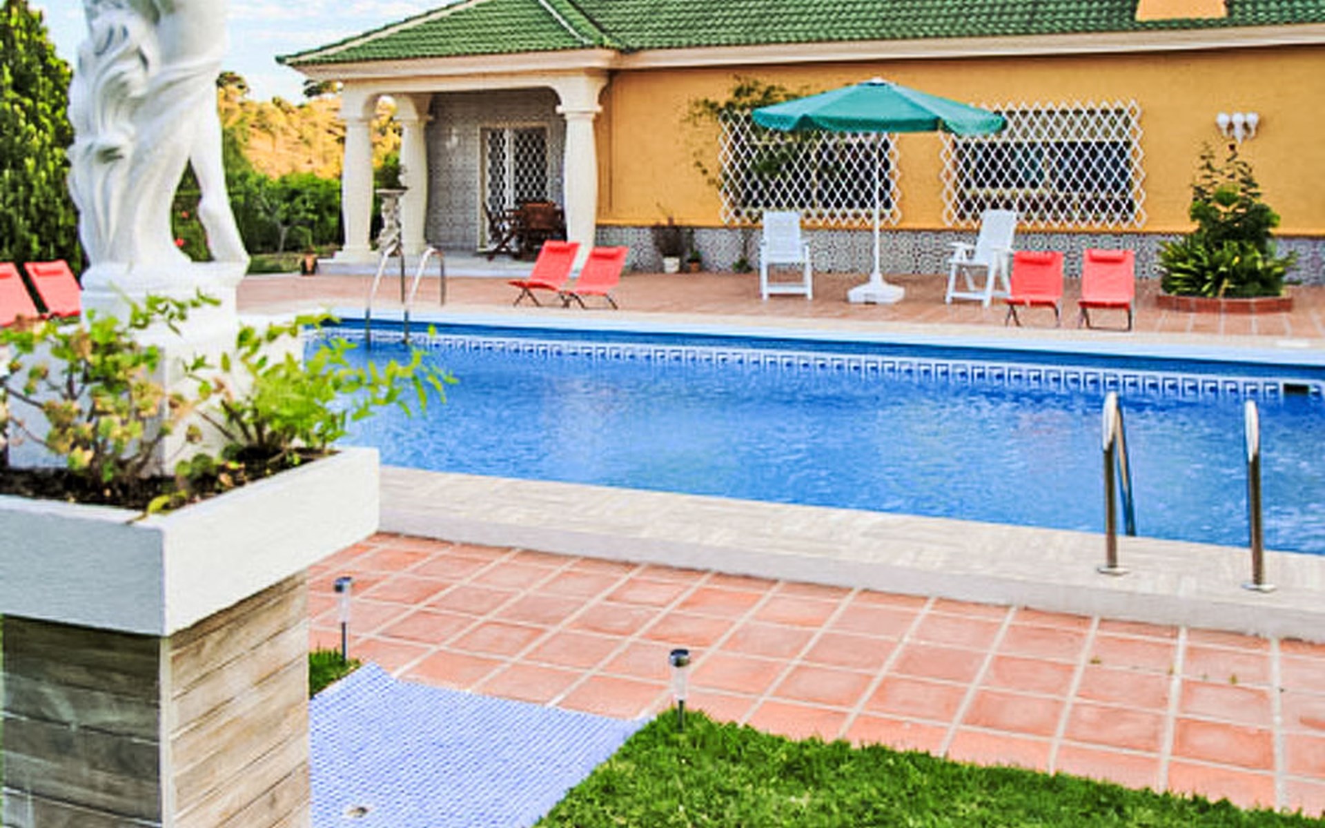 Groot, mooi huis "La Poza". Buiten de plaats, 16 km van het centrum van Málaga, rustige, zonnige ligging op een heuvel, 16 km van zee, 16 km van het strand, aan een doodlopende weg, te midden van groen. Voor alleengebruik: terrein (omheind), tuin 1.600 m2 met gazon en bloemen, openluchtzwembad (6 x 9 m, 130 - 195 cm diepte, seizoensgebonden beschikbaarheid: 01.Jan. - 31.Dec.). Buitendouche, tuinmeubelen, barbecue, parkeerplaats (voor 4 auto's) bij het huis. Winkel 3 km, restaurant 3 km, bar 3 km, bushalte "El Cortijuelo L-21" 1.5 km, zandstrand 16 km. Auto noodzakelijk. Eigenaar woont in apart huisgedeelte. Autobaan 1.5 km van het huis.