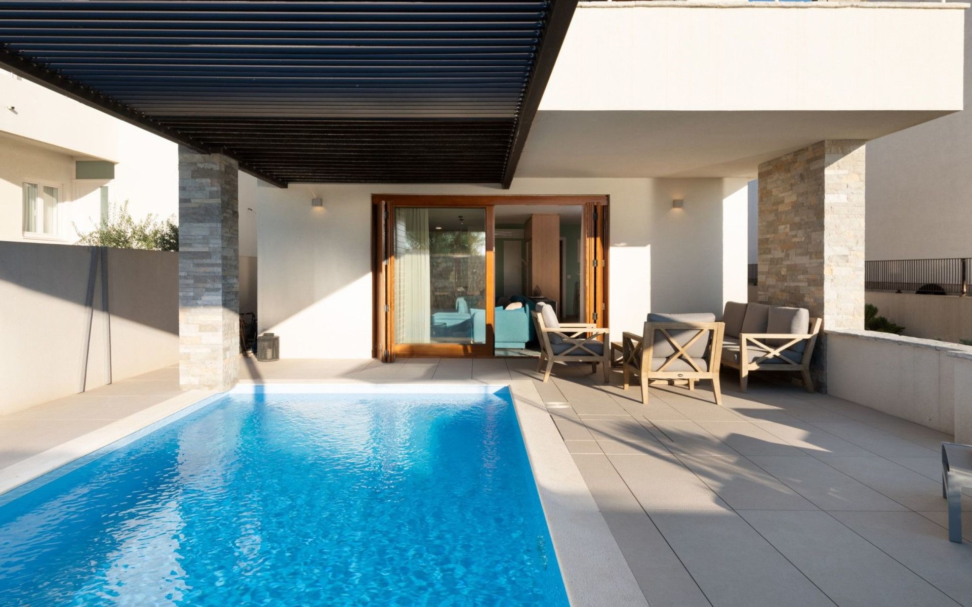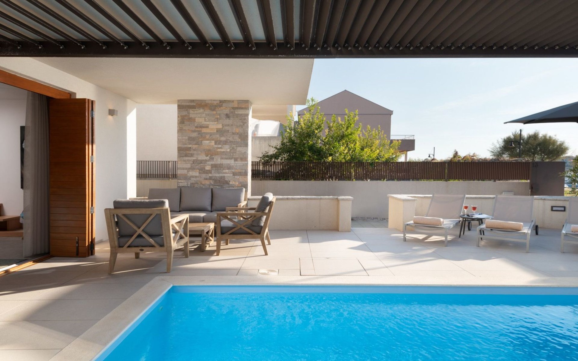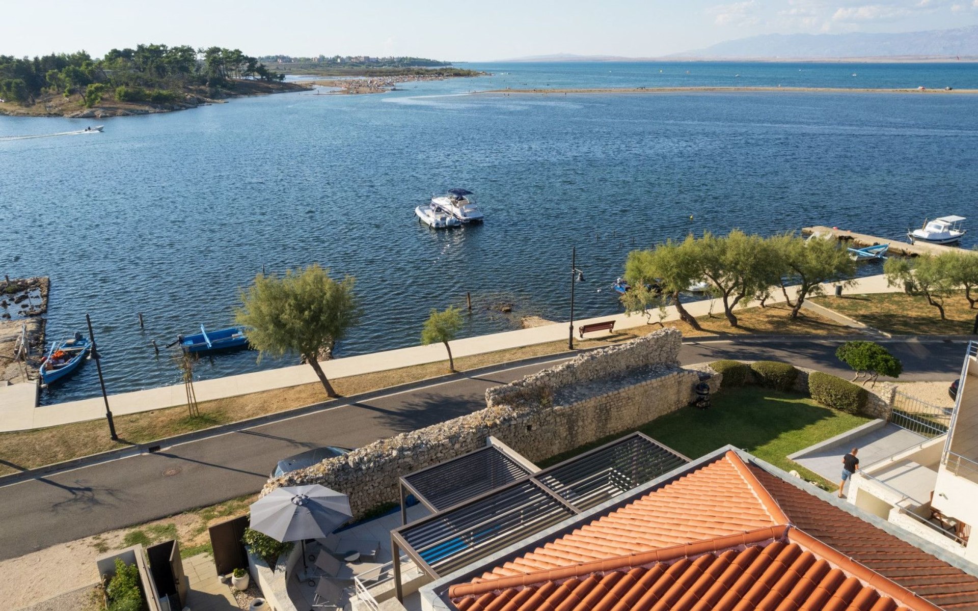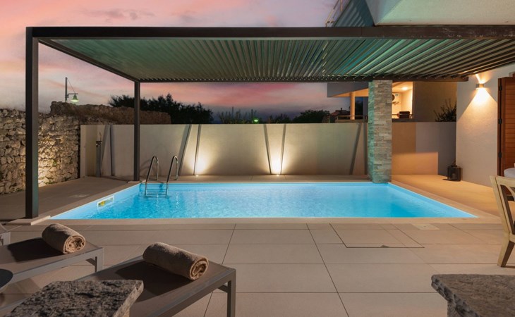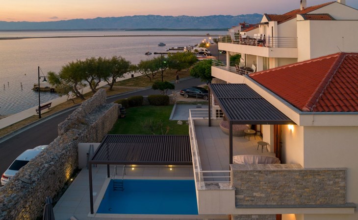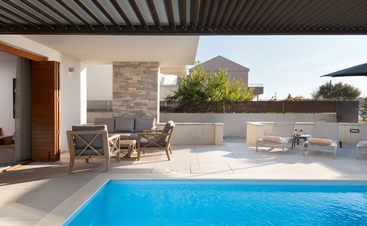 Villa La Thalia in Nin offers an exceptional retreat for those looking to immerse themselves in the tranquil beauty of Dalmatia. With accommodations for up to 6 guests, this detached holiday house is a perfect blend of comfort and convenience, ensuring a memorable stay near the alluring Adriatic coast.Inside, the villa boasts underfloor heating throughout, creating a cozy environment no matter the season. Each of the two double bedrooms is complemented by its own en-suite bathroom, offering privacy and ease for all guests. The living arrangements are rounded out with a sofa bed for additional guests. Practical amenities like a washing machine, coffee machine, dishwasher, and electric kettle enhance the living experience, allowing guests to feel fully at home.The outdoor area of Villa La Thalia is where this property truly shines. The private, heated pool is a centerpiece, surrounded by sun loungers that invite relaxation under the Dalmatian sun. A terrace seamlessly connects to the living room, extending the living space outdoors. For dining al fresco, there's a well-equipped barbecue area alongside a dining setup, perfect for enjoying meals with family or friends amidst the gentle breezes of Nin.The villa's location is ideally nestled within 200m of the nearest town center and grocery store, making it conveniently positioned for exploring local culture and cuisine. The beach is just a short 1km walk away, promising days filled with sunbathing, swimming, and seaside adventure. For those who enjoy cycling, a nearby trail offers the perfect opportunity to explore the surroundings on two wheels. Additionally, the option to unwind with Netflix provides a modern touch to evenings spent indoors.Villa La Thalia is more than just a place to stay; it's a gateway to discovering the rich history and stunning landscapes of Zadar, Šibenik, Biograd, and beyond. This holiday house is a prime choice for those seeking an exclusive and peaceful vacation experience in the heart of Dalmatia.