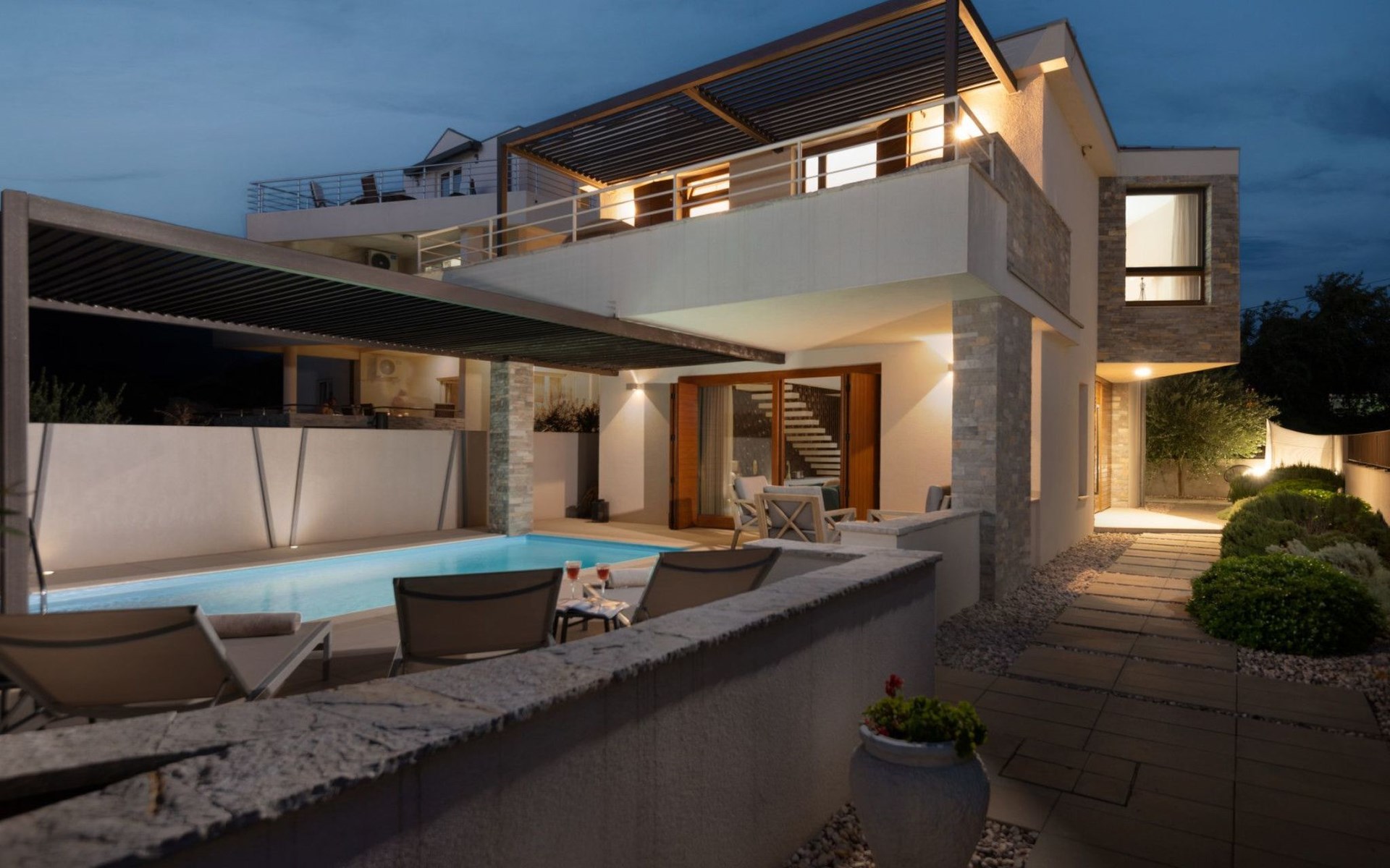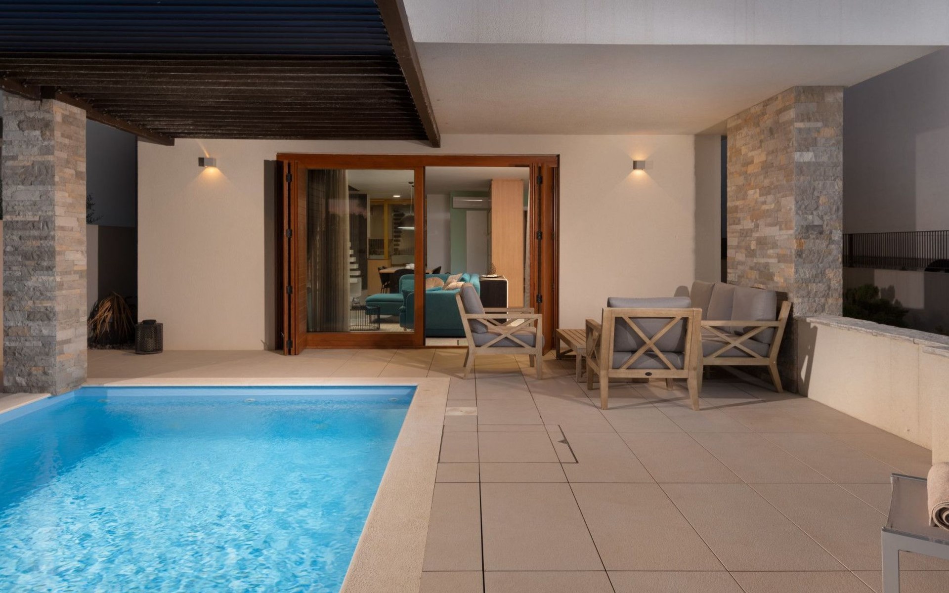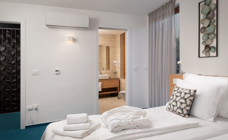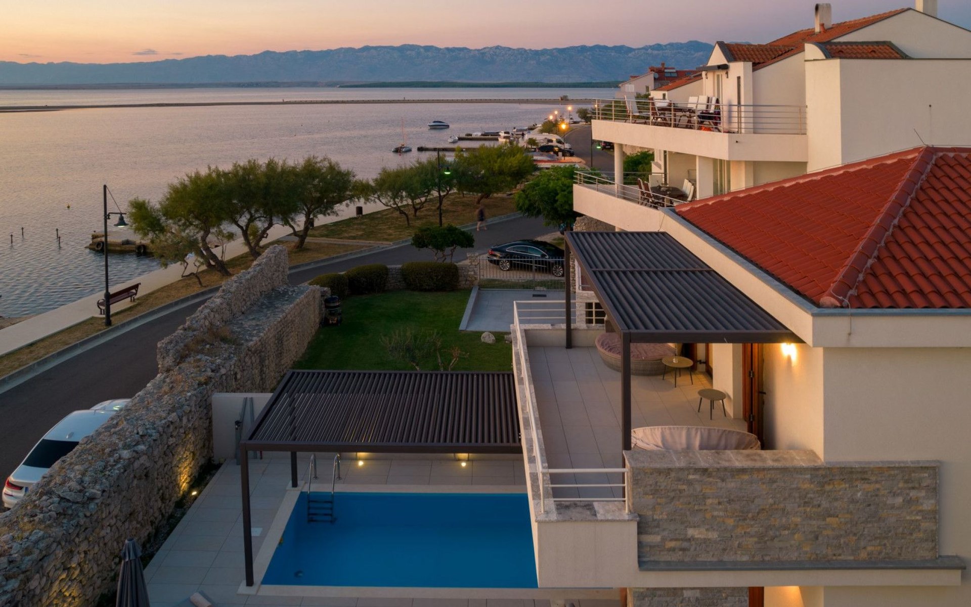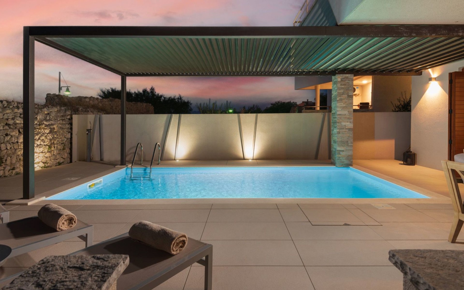 Villa La Thalia in Nin offers an exceptional retreat for those looking to immerse themselves in the tranquil beauty of Dalmatia. With accommodations for up to 6 guests, this detached holiday house is a perfect blend of comfort and convenience, ensuring a memorable stay near the alluring Adriatic coast.Inside, the villa boasts underfloor heating throughout, creating a cozy environment no matter the season. Each of the two double bedrooms is complemented by its own en-suite bathroom, offering privacy and ease for all guests. The living arrangements are rounded out with a sofa bed for additional guests. Practical amenities like a washing machine, coffee machine, dishwasher, and electric kettle enhance the living experience, allowing guests to feel fully at home.The outdoor area of Villa La Thalia is where this property truly shines. The private, heated pool is a centerpiece, surrounded by sun loungers that invite relaxation under the Dalmatian sun. A terrace seamlessly connects to the living room, extending the living space outdoors. For dining al fresco, there's a well-equipped barbecue area alongside a dining setup, perfect for enjoying meals with family or friends amidst the gentle breezes of Nin.The villa's location is ideally nestled within 200m of the nearest town center and grocery store, making it conveniently positioned for exploring local culture and cuisine. The beach is just a short 1km walk away, promising days filled with sunbathing, swimming, and seaside adventure. For those who enjoy cycling, a nearby trail offers the perfect opportunity to explore the surroundings on two wheels. Additionally, the option to unwind with Netflix provides a modern touch to evenings spent indoors.Villa La Thalia is more than just a place to stay; it's a gateway to discovering the rich history and stunning landscapes of Zadar, Šibenik, Biograd, and beyond. This holiday house is a prime choice for those seeking an exclusive and peaceful vacation experience in the heart of Dalmatia.