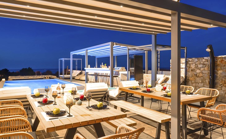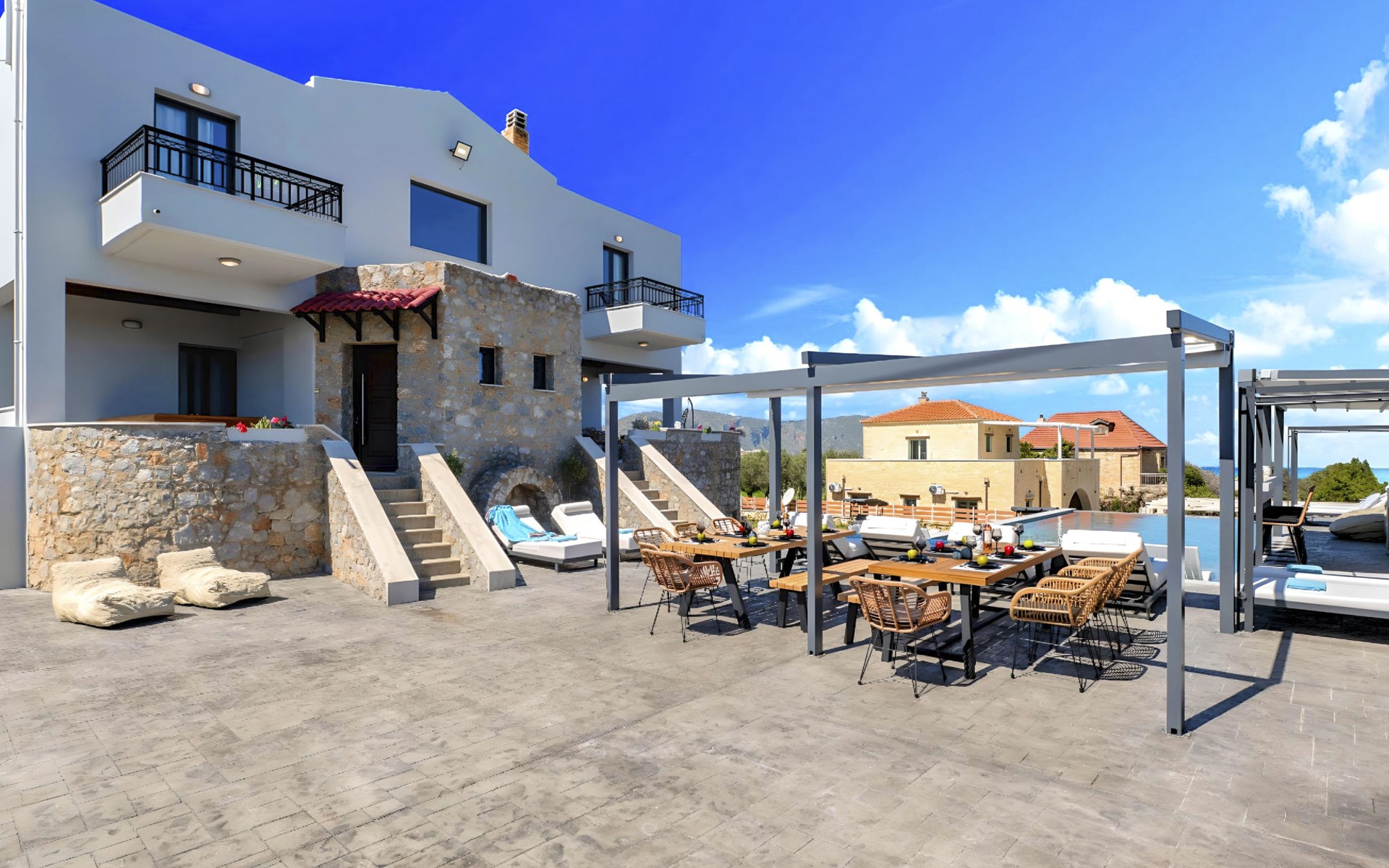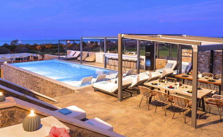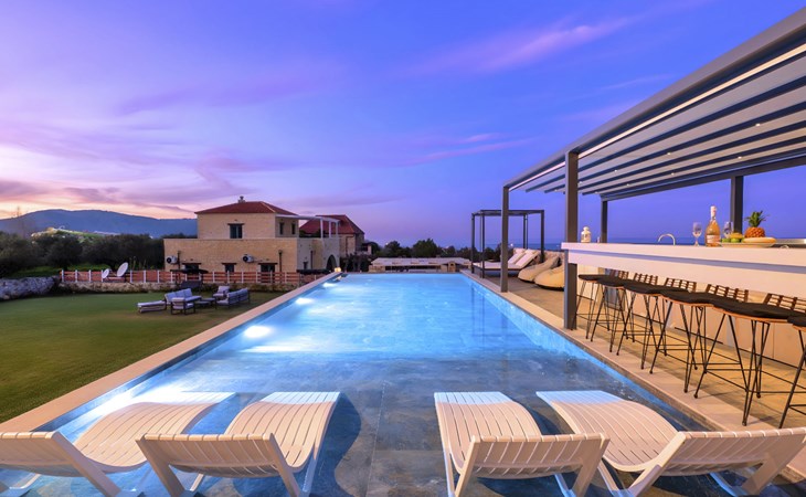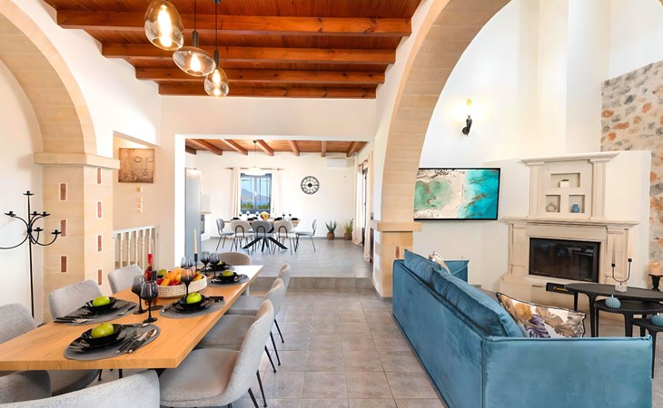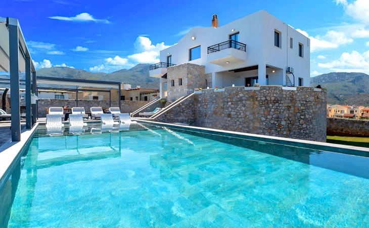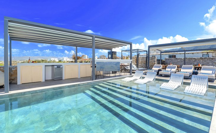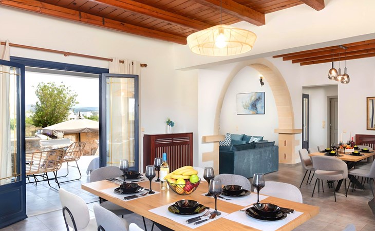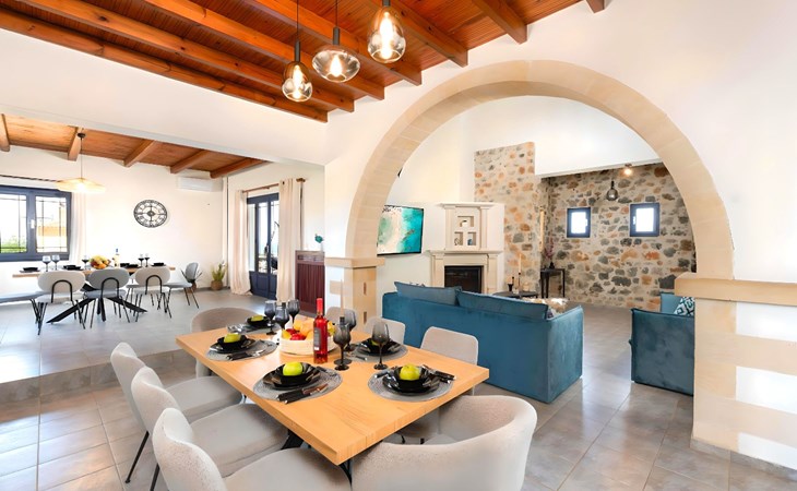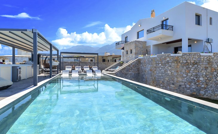 Welcome to the enchanting Grey Grand Villa, perfectly nestled above the captivating Georgioupolis beach in Crete, where breathtaking sea views await to mesmerize you. This exquisite retreat is tailor-made for those seeking a blend of luxury, comfort, and the splendid Mediterranean lifestyle. With accommodations for up to 12 guests across five elegant bedrooms, this villa is the ideal choice for family holidays or memorable getaways with friends, offering a unique escape into tranquility and elegance.The interior of the Grey Grand Villa has been thoughtfully designed to cater to your every need, featuring all the crucial amenities to ensure a comfortable stay. Each room comes equipped with air conditioning, guaranteeing cool and comfortable interiors regardless of the outdoor temperature. For your convenience, a washing machine and clothes dryer are provided exclusively for guests' use, ensuring all your laundry needs are met without hassle. The inclusion of an espresso coffee pot, dishwasher, and electric kettle in the kitchen area ensures that preparing meals and refreshments is both easy and enjoyable, adding to the overall comfort and convenience of your stay.The villa's exterior is just as impressive as its interior, boasting a private pool that invites you to take soothing swims under the clear blue sky. The surrounding terrace and balcony areas provide the perfect spots for lounging, offering an unparalleled opportunity to relax in the serene ambiance of the Mediterranean. The villa also features a private garden, where you can immerse yourself in the natural beauty of Crete and enjoy leisurely moments in a peaceful setting.Situated in the picturesque location of Paralia Kourna, Grey Grand Villa offers an excellent base from which to explore the beauty of Crete. With the beach, sea, and lake all within a kilometer's reach, guests have easy access to a variety of water-based activities and scenic spots. The nearest town center and grocery store are also conveniently located just 1000 meters away, making it simple to stock up on essentials or explore local attractions and cuisine.Grey Grand Villa invites you to experience the ultimate holiday retreat where comfort meets elegance in the heart of Crete. Whether you're soaking up the sun by the pool, exploring the natural beauty of the surroundings, or simply relaxing in the luxuriously appointed interior, this villa promises an unforgettable stay that will leave you with cherished memories for years to come. Discover the charm of Mediterranean living and let Grey Grand Villa be your haven of tranquility and luxury on your next vacation. 1335943
