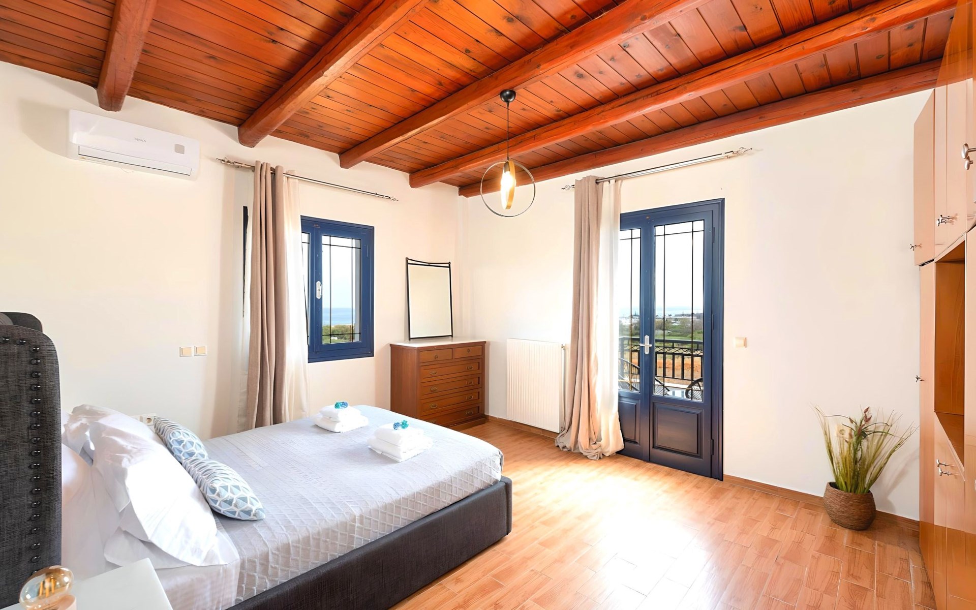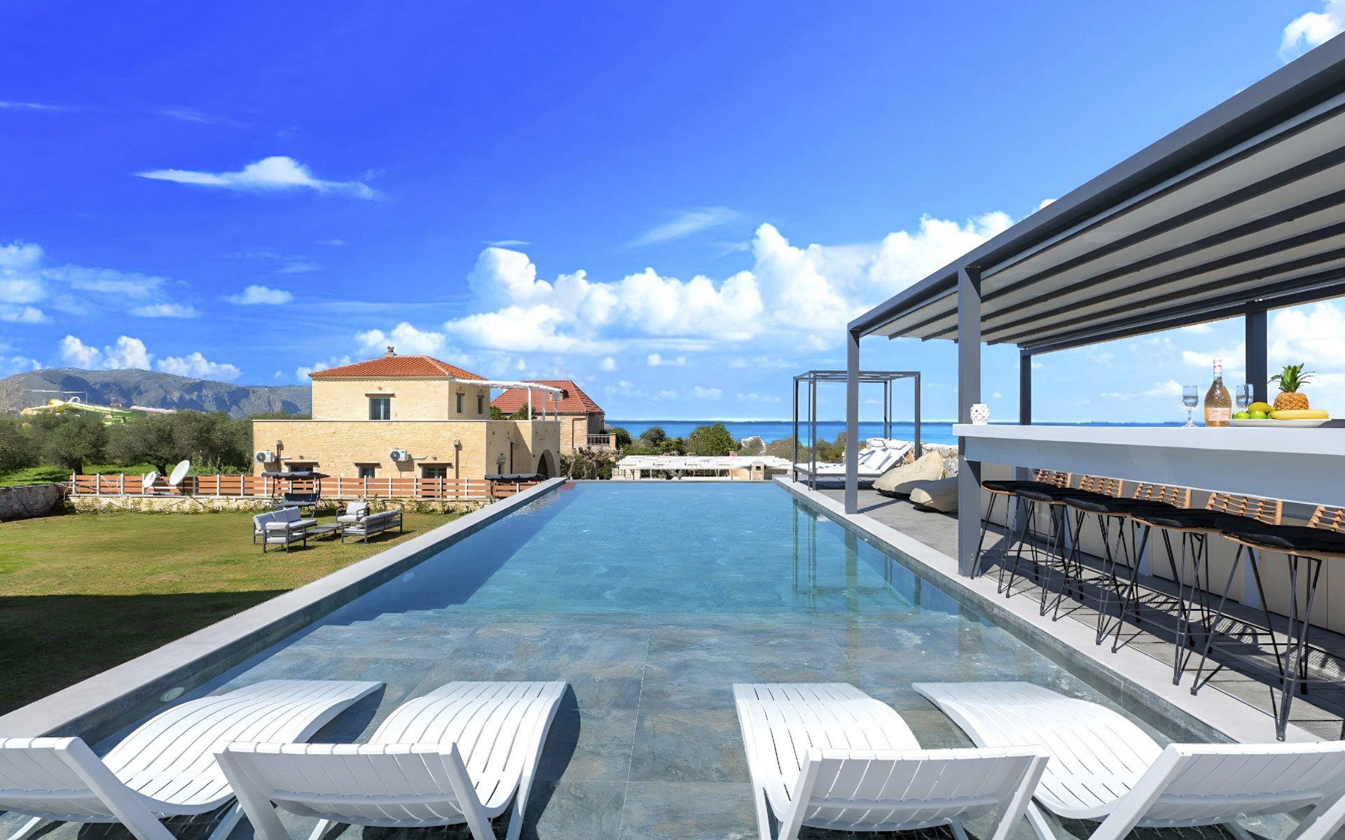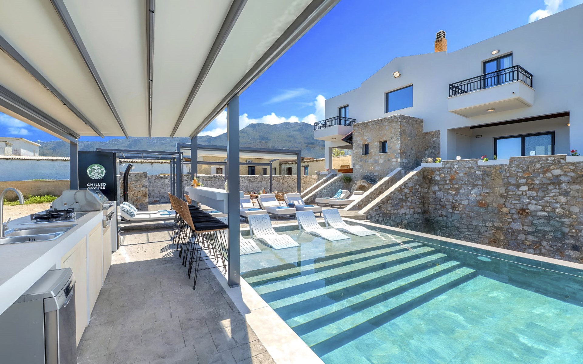 Welcome to the enchanting Grey Grand Villa, perfectly nestled above the captivating Georgioupolis beach in Crete, where breathtaking sea views await to mesmerize you. This exquisite retreat is tailor-made for those seeking a blend of luxury, comfort, and the splendid Mediterranean lifestyle. With accommodations for up to 12 guests across five elegant bedrooms, this villa is the ideal choice for family holidays or memorable getaways with friends, offering a unique escape into tranquility and elegance.The interior of the Grey Grand Villa has been thoughtfully designed to cater to your every need, featuring all the crucial amenities to ensure a comfortable stay. Each room comes equipped with air conditioning, guaranteeing cool and comfortable interiors regardless of the outdoor temperature. For your convenience, a washing machine and clothes dryer are provided exclusively for guests' use, ensuring all your laundry needs are met without hassle. The inclusion of an espresso coffee pot, dishwasher, and electric kettle in the kitchen area ensures that preparing meals and refreshments is both easy and enjoyable, adding to the overall comfort and convenience of your stay.The villa's exterior is just as impressive as its interior, boasting a private pool that invites you to take soothing swims under the clear blue sky. The surrounding terrace and balcony areas provide the perfect spots for lounging, offering an unparalleled opportunity to relax in the serene ambiance of the Mediterranean. The villa also features a private garden, where you can immerse yourself in the natural beauty of Crete and enjoy leisurely moments in a peaceful setting.Situated in the picturesque location of Paralia Kourna, Grey Grand Villa offers an excellent base from which to explore the beauty of Crete. With the beach, sea, and lake all within a kilometer's reach, guests have easy access to a variety of water-based activities and scenic spots. The nearest town center and grocery store are also conveniently located just 1000 meters away, making it simple to stock up on essentials or explore local attractions and cuisine.Grey Grand Villa invites you to experience the ultimate holiday retreat where comfort meets elegance in the heart of Crete. Whether you're soaking up the sun by the pool, exploring the natural beauty of the surroundings, or simply relaxing in the luxuriously appointed interior, this villa promises an unforgettable stay that will leave you with cherished memories for years to come. Discover the charm of Mediterranean living and let Grey Grand Villa be your haven of tranquility and luxury on your next vacation. 1335943