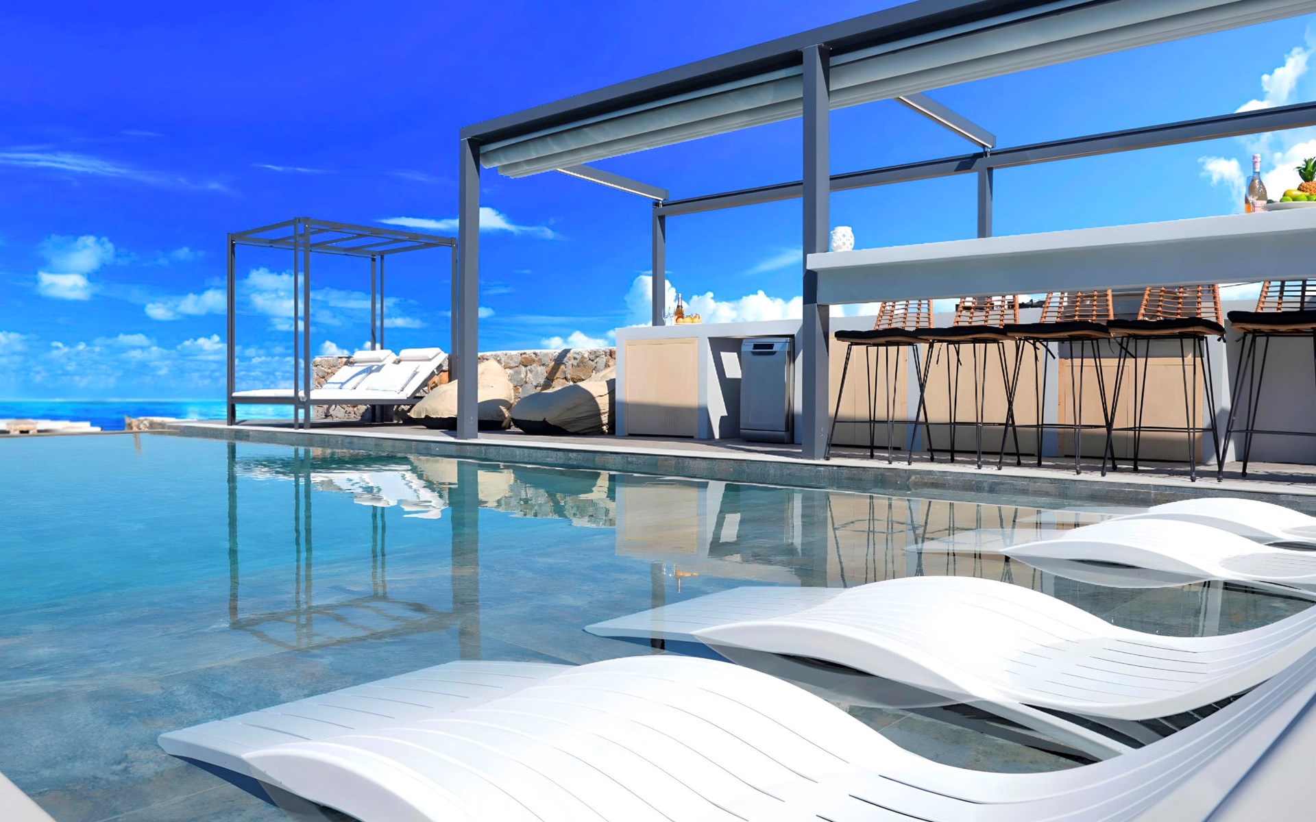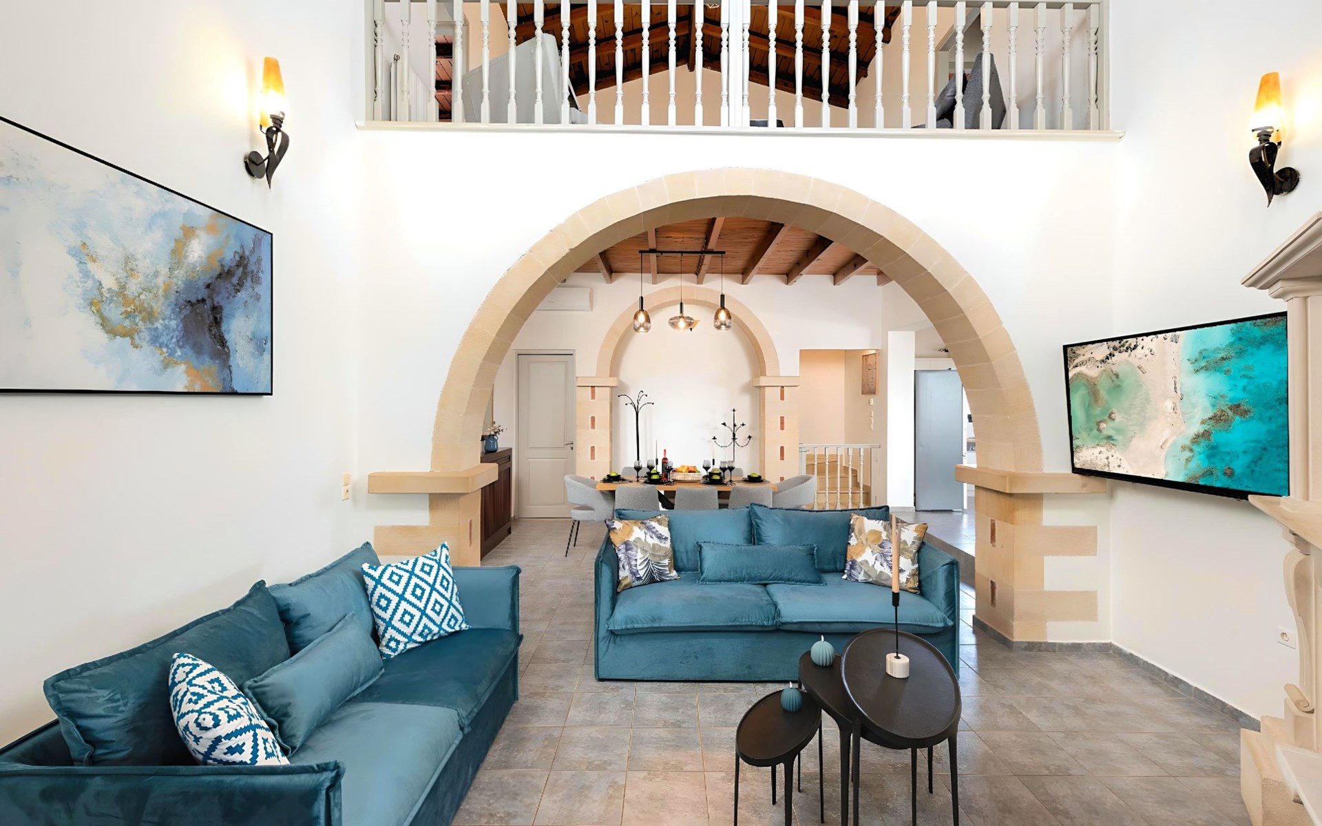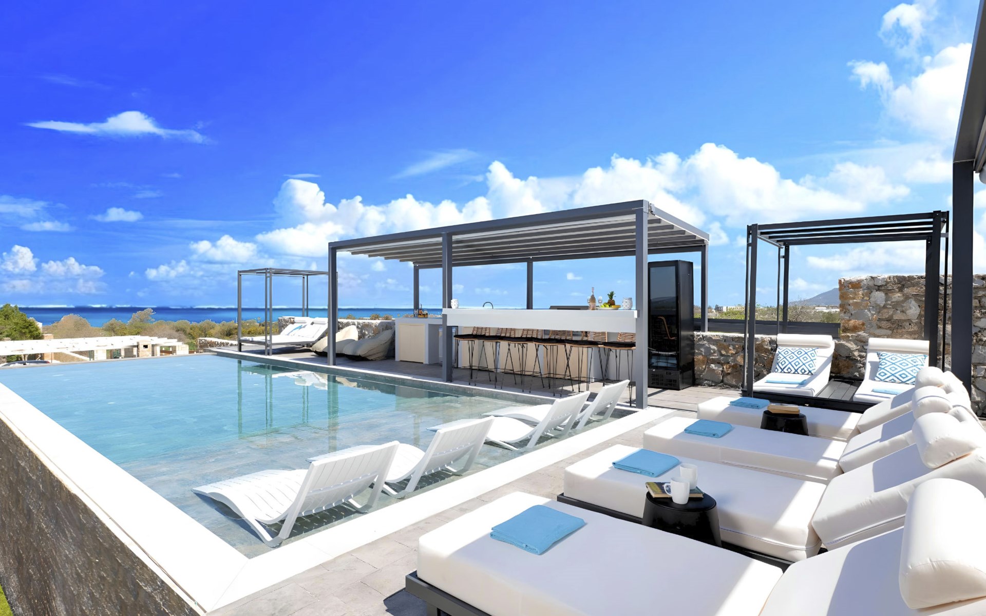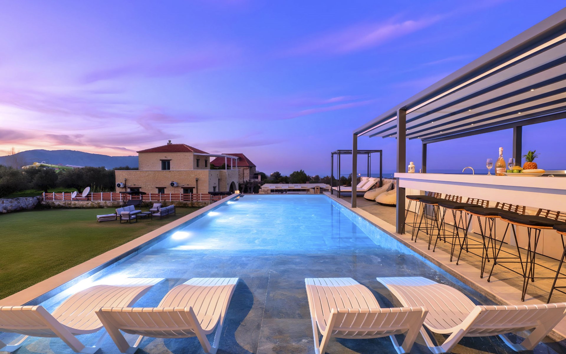 Welcome to the enchanting Grey Grand Villa, perfectly nestled above the captivating Georgioupolis beach in Crete, where breathtaking sea views await to mesmerize you. This exquisite retreat is tailor-made for those seeking a blend of luxury, comfort, and the splendid Mediterranean lifestyle. With accommodations for up to 12 guests across five elegant bedrooms, this villa is the ideal choice for family holidays or memorable getaways with friends, offering a unique escape into tranquility and elegance.The interior of the Grey Grand Villa has been thoughtfully designed to cater to your every need, featuring all the crucial amenities to ensure a comfortable stay. Each room comes equipped with air conditioning, guaranteeing cool and comfortable interiors regardless of the outdoor temperature. For your convenience, a washing machine and clothes dryer are provided exclusively for guests' use, ensuring all your laundry needs are met without hassle. The inclusion of an espresso coffee pot, dishwasher, and electric kettle in the kitchen area ensures that preparing meals and refreshments is both easy and enjoyable, adding to the overall comfort and convenience of your stay.The villa's exterior is just as impressive as its interior, boasting a private pool that invites you to take soothing swims under the clear blue sky. The surrounding terrace and balcony areas provide the perfect spots for lounging, offering an unparalleled opportunity to relax in the serene ambiance of the Mediterranean. The villa also features a private garden, where you can immerse yourself in the natural beauty of Crete and enjoy leisurely moments in a peaceful setting.Situated in the picturesque location of Paralia Kourna, Grey Grand Villa offers an excellent base from which to explore the beauty of Crete. With the beach, sea, and lake all within a kilometer's reach, guests have easy access to a variety of water-based activities and scenic spots. The nearest town center and grocery store are also conveniently located just 1000 meters away, making it simple to stock up on essentials or explore local attractions and cuisine.Grey Grand Villa invites you to experience the ultimate holiday retreat where comfort meets elegance in the heart of Crete. Whether you're soaking up the sun by the pool, exploring the natural beauty of the surroundings, or simply relaxing in the luxuriously appointed interior, this villa promises an unforgettable stay that will leave you with cherished memories for years to come. Discover the charm of Mediterranean living and let Grey Grand Villa be your haven of tranquility and luxury on your next vacation. 1335943