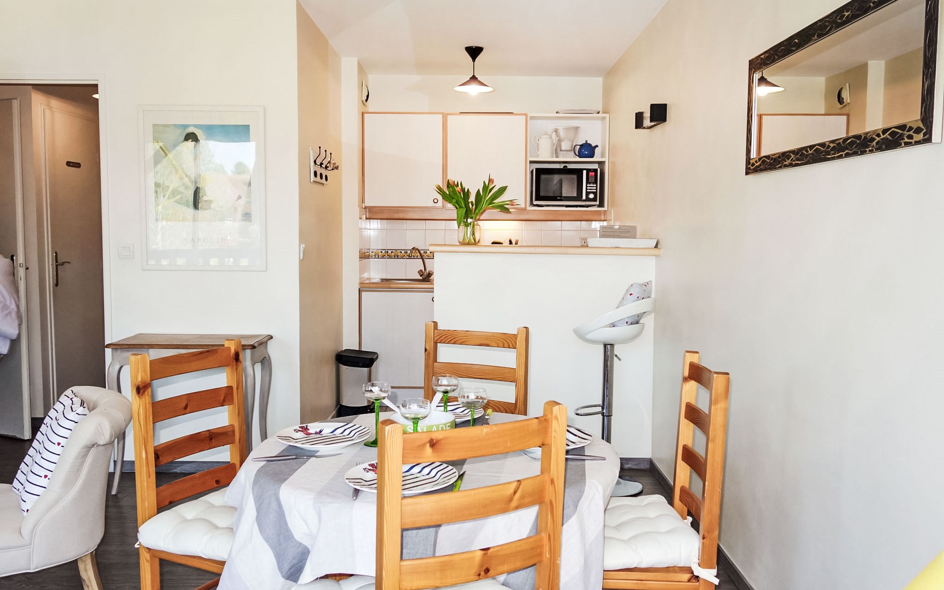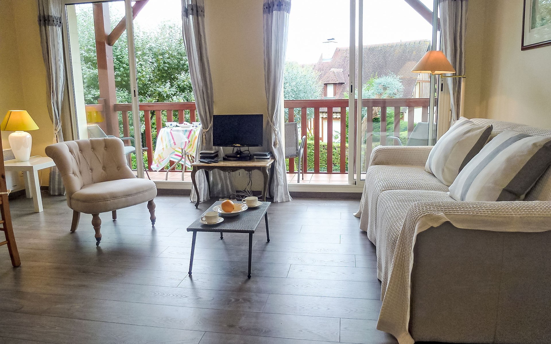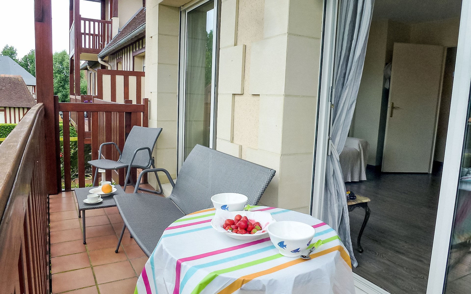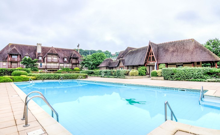 Deauville: Mooi residentie "Domaine de Clairefontaine". In de plaats, 1.4 km van het centrum, rustige ligging, 900 m van zee, 900 m van het strand. Voor medegebruik: openluchtzwembad hoekig verwarmd, omheind (6 x 15 m, seizoensgebonden beschikbaarheid: 01.Jun. - 30.Sep.). Douche/WC bij het zwembad, kinderzwembad, tennisbaan. In het complex: solarium, lift. Winkel, levensmiddelenwinkel 800 m, supermarkt 900 m, restaurant 800 m, bushalte "Avenue des courses" 200 m, station "Deauville-Trouville" 1.8 km, overdekt zwembad 1.2 km, thermaalbad "Deauville" 1.2 km. Golfterrein (18 holes) 2.8 km, manege 1.6 km. Attracties in de buurt: Hippodrome Deauville-La Touques 1 km, Centre International Deauville - CID 1.4 km, Mémorial de Caen 50 km, Plage du débarquement d'Arromanches 84 km. De sleuteloverdracht vindt plaats bij het agentschap Interhome in Deauville.