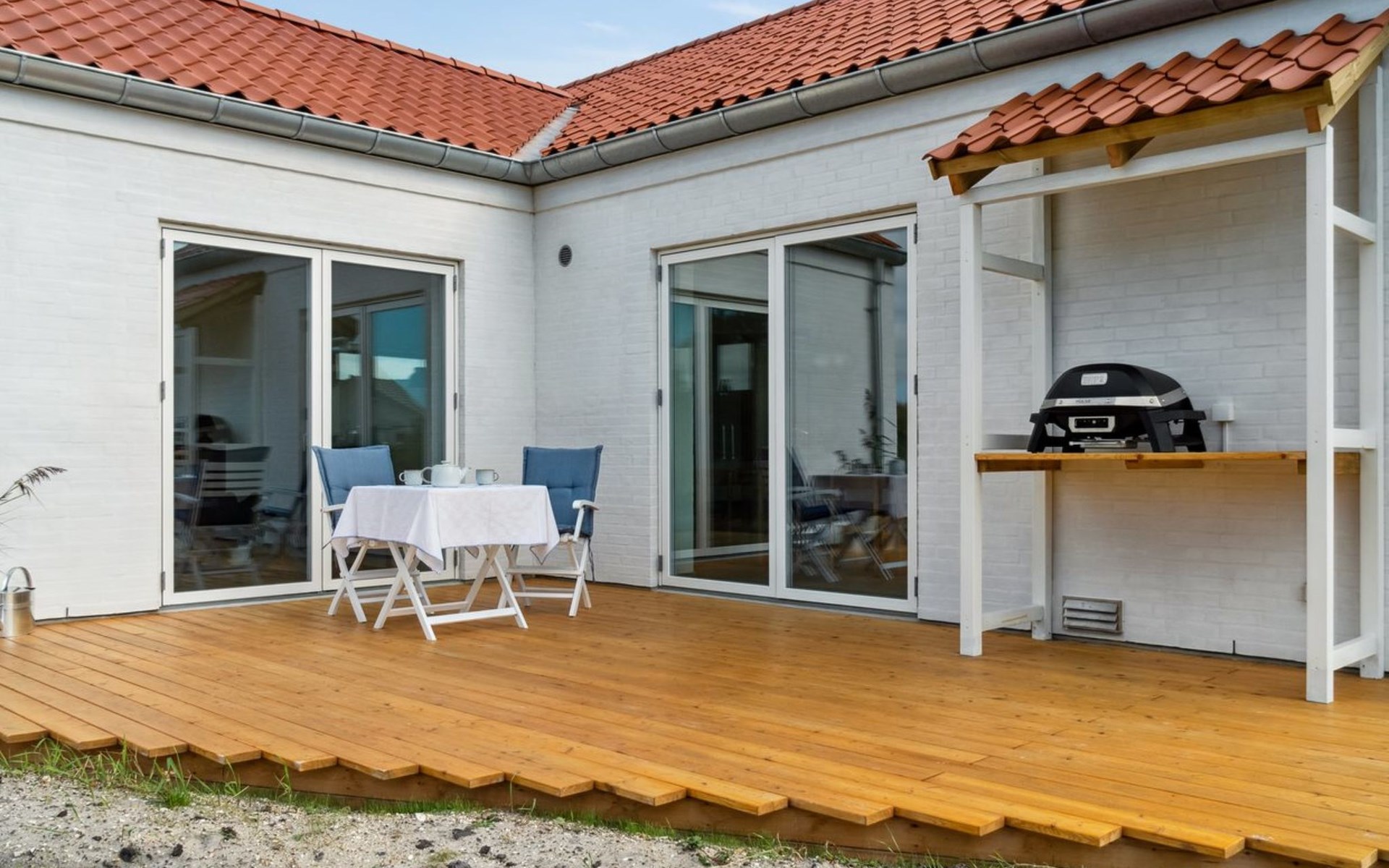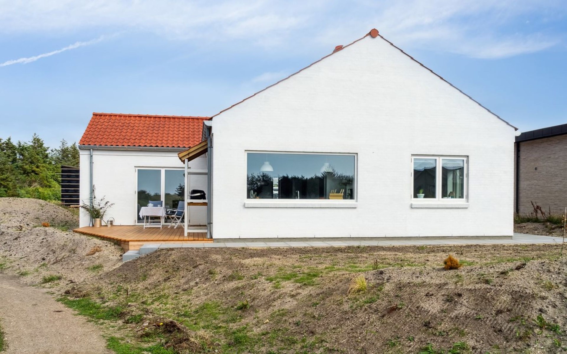 Eengezinswoning, bouwjaar 2023. 1 km van zee. Voor alleengebruik: wild terrein 845 m2. Buitendouche, terras (30 m2), barbecue. In het huis: wasmachine, droger. Parkeerplaats bij het huis. Levensmiddelenwinkel 450 m. Golfterrein 5 km. De eigenaar accepteert geen jeugdgroepen.