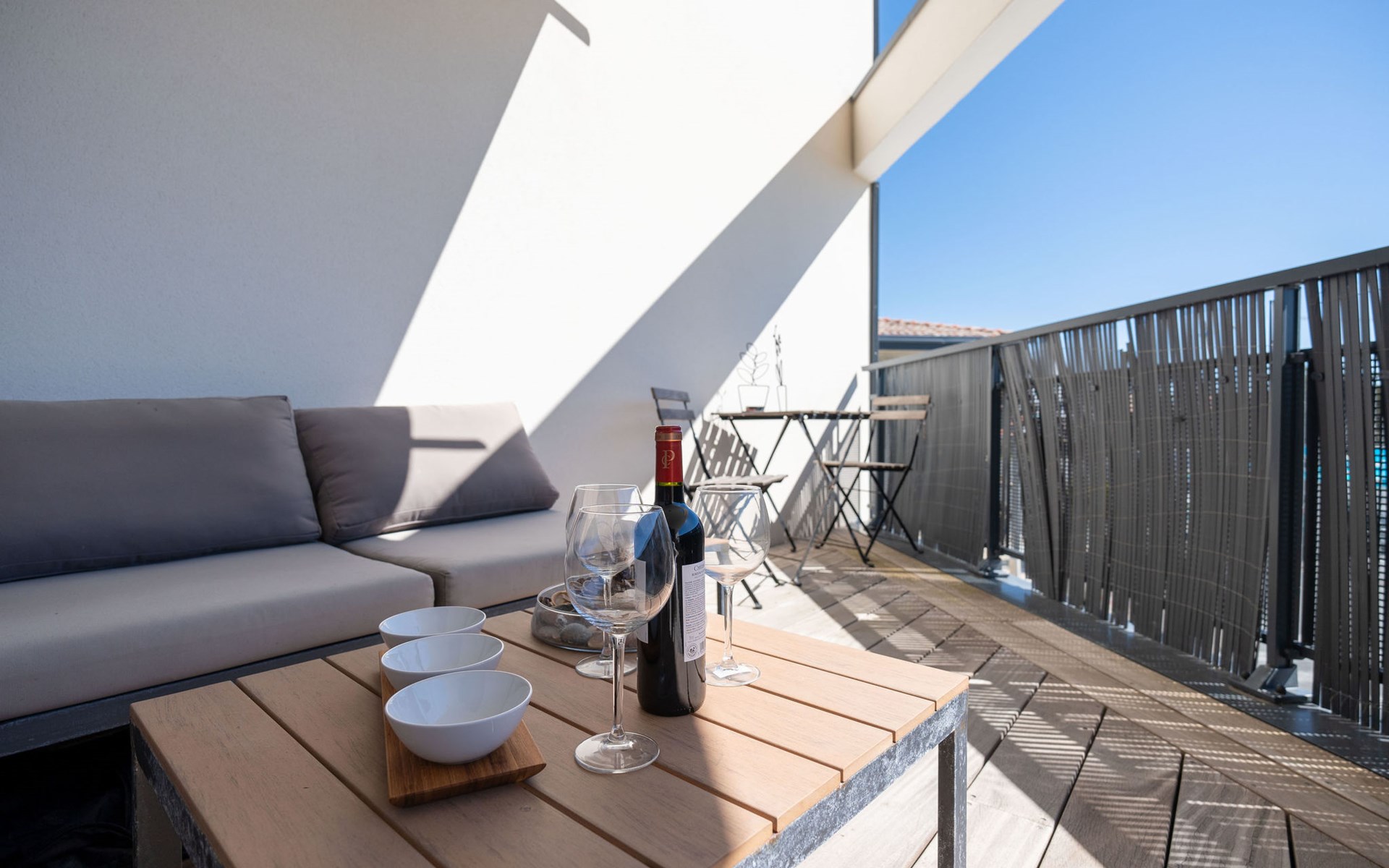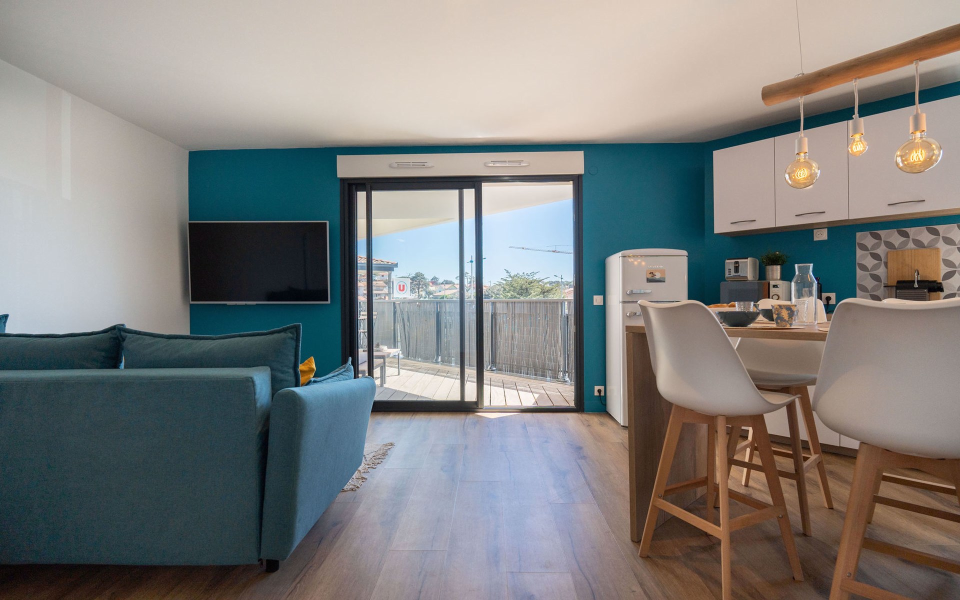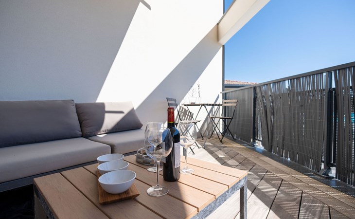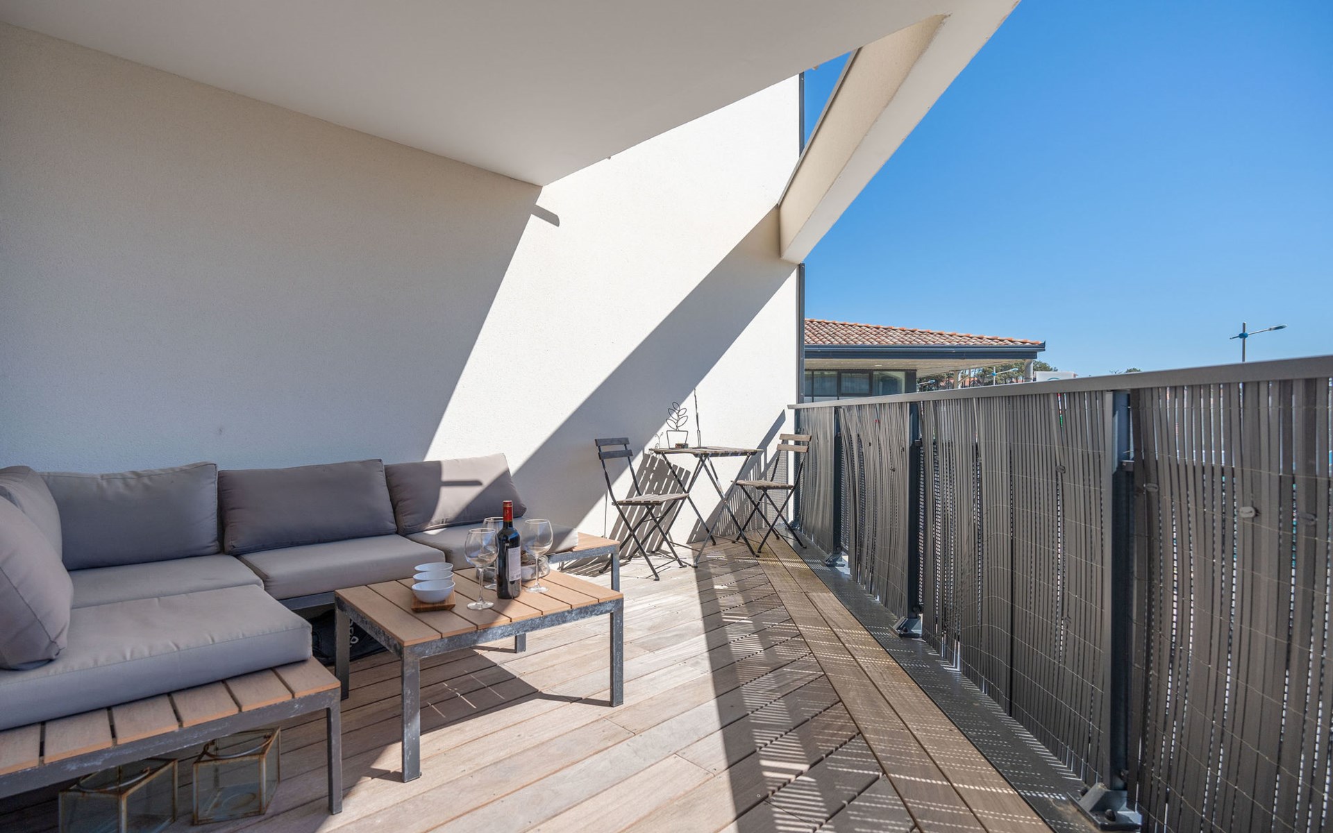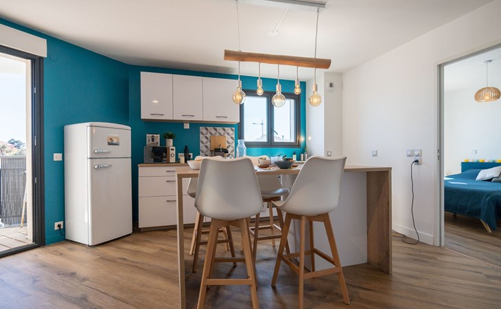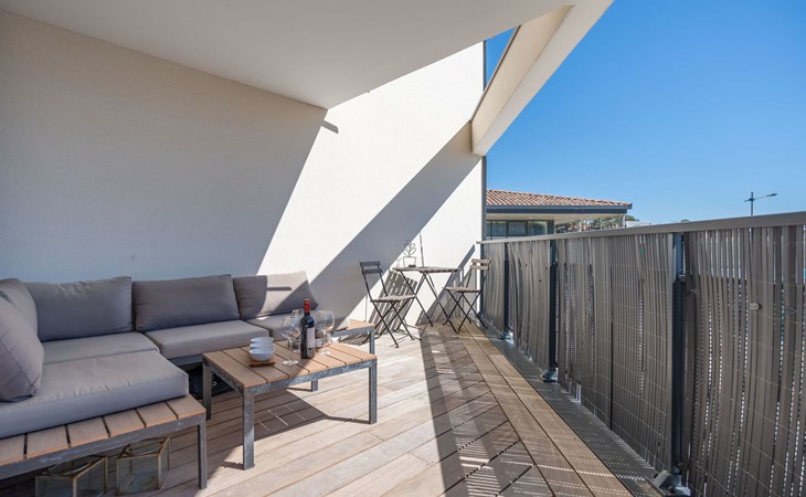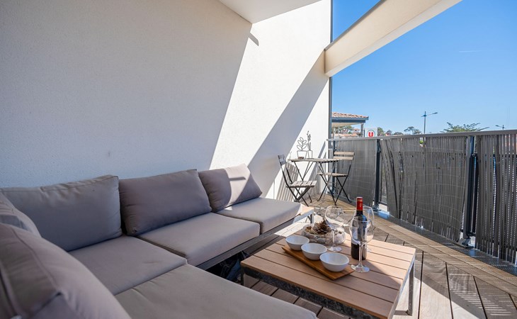 Moderne residentie "Le Rooftop", van 3 verdiepingen. In het centrum van Lacanau-Océan, centrale ligging, 300 m van zee, 5 km van het meer, 300 m van het strand. In het complex: lift. Parkeerplaats. Winkel 300 m, levensmiddelenwinkel, supermarkt 5 m, restaurant 200 m, bar, fietsverhuur 300 m, bushalte "Salle l'Escoure Océan" 550 m, zandstrand "Lacanau-Océan" 300 m. Golfterrein (18 holes) 5 km, surfschool 200 m, tennis 2 km, tennishal 2 km, manege 15 km. Attracties in de buurt: Saint-Emilion 60 km, Dune du Pilat 60 km, Bordeaux 60 km. Bekende meren kunnen gemakkelijk worden bereikt: Maubuisson 13 km, Lac du Moutchic 5 km.