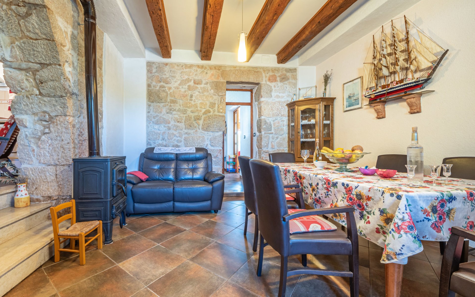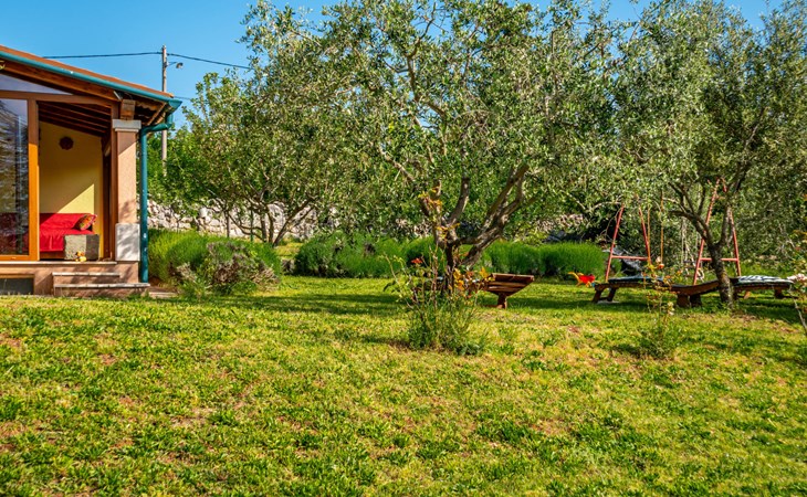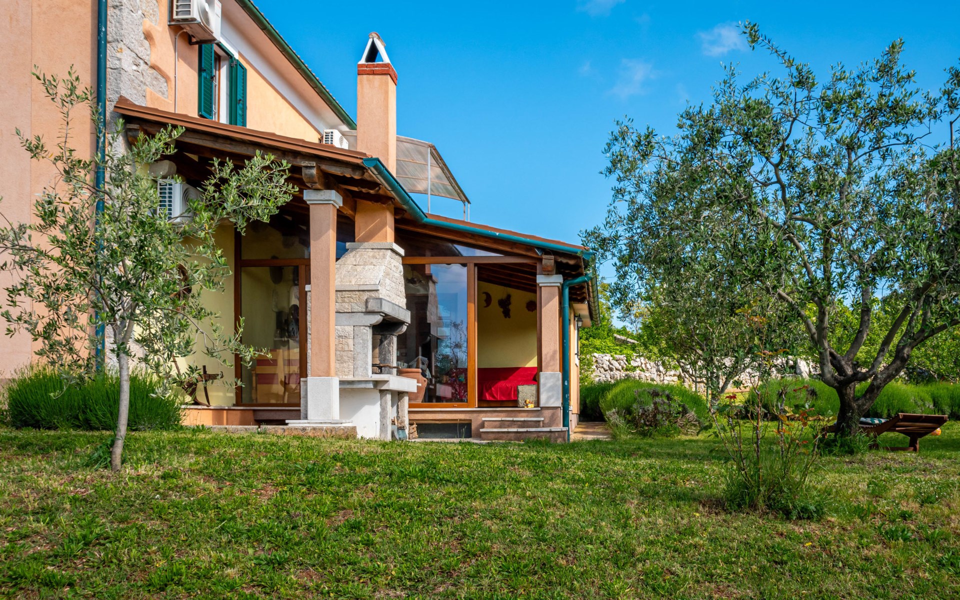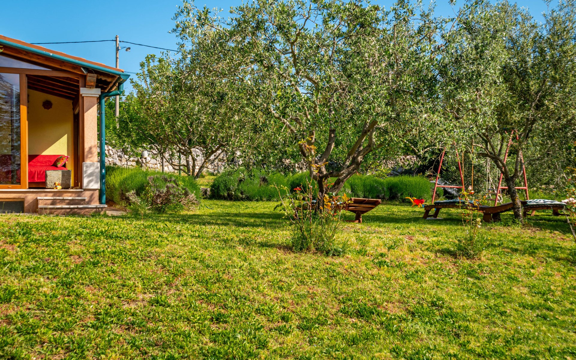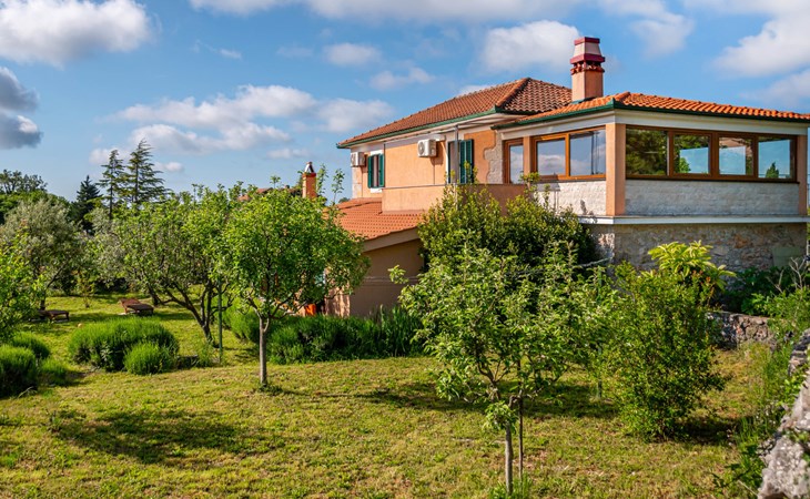 Kras: Mooi, comfortabele eengezinswoning "Tuscany for Two". 3.5 km van het centrum van Dobrinj, 9 km van het centrum van Malinska, 10 km van het centrum van Krk, zonnige ligging, 9 km van zee, 9 km van het strand, te midden van groen. Voor alleengebruik: terrein 2.700 m2 (omheind) met gazon 400 m2 bomen, mooie tuin ter ontspanning. Buitendouche, terras (6 m2), tuinmeubelen, barbecue, kinderspeelplaats (glijbaan, schommel). In het huis: internetaansluiting, wasmachine. Beschikbaar: kinderfietsen. Overdekte parkeerplaats bij het huis op het terrein. Winkel 500 m, supermarkt 8.5 km, restaurant 3 km, bushalte 7.3 km, kiezelstrand 8.5 km, betonnen strand 8.5 km. Wandelroutes 200 m vanaf het huis, fietspad 250 m. Attracties in de buurt: Biserujka cave, Frankopan castle Krk, Zipline Edison, Franciscan monastery island Košljun. Eerste verdieping is afgesloten en niet bewoond.
