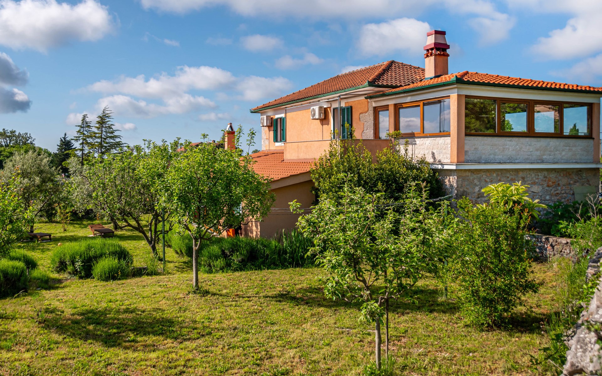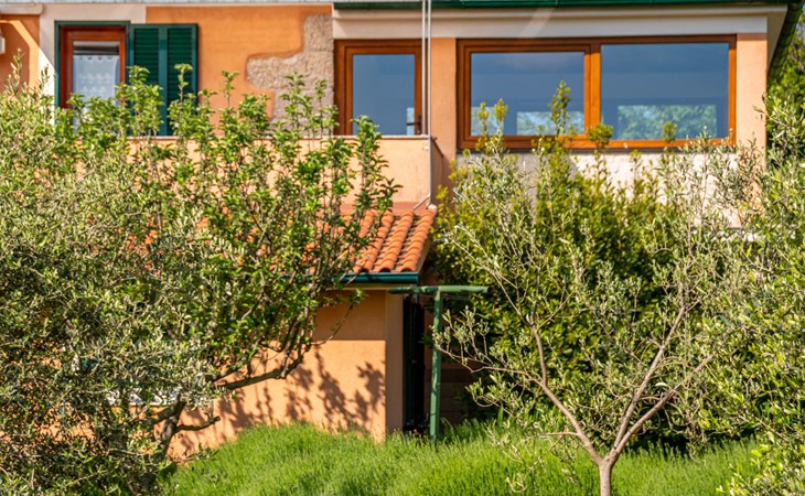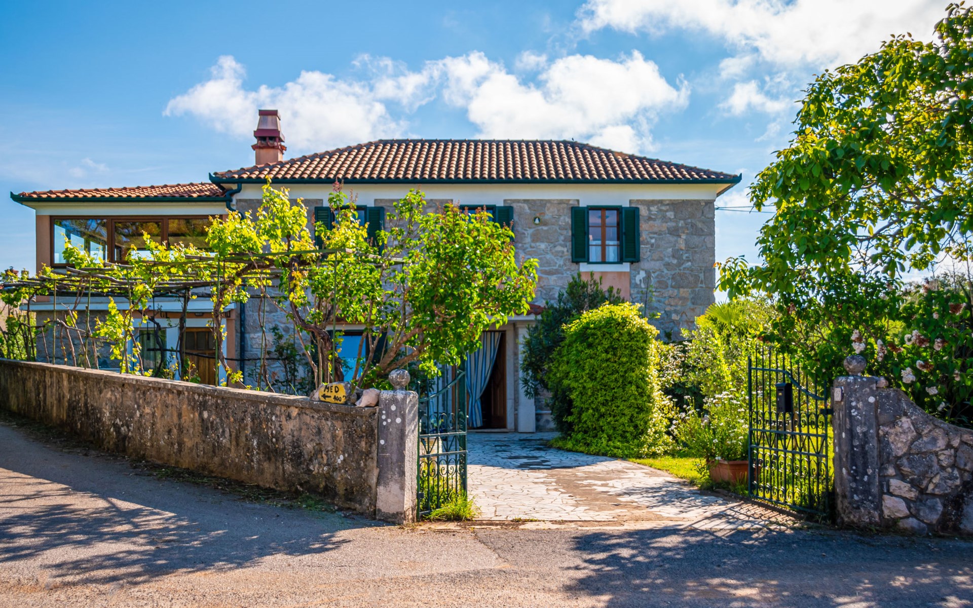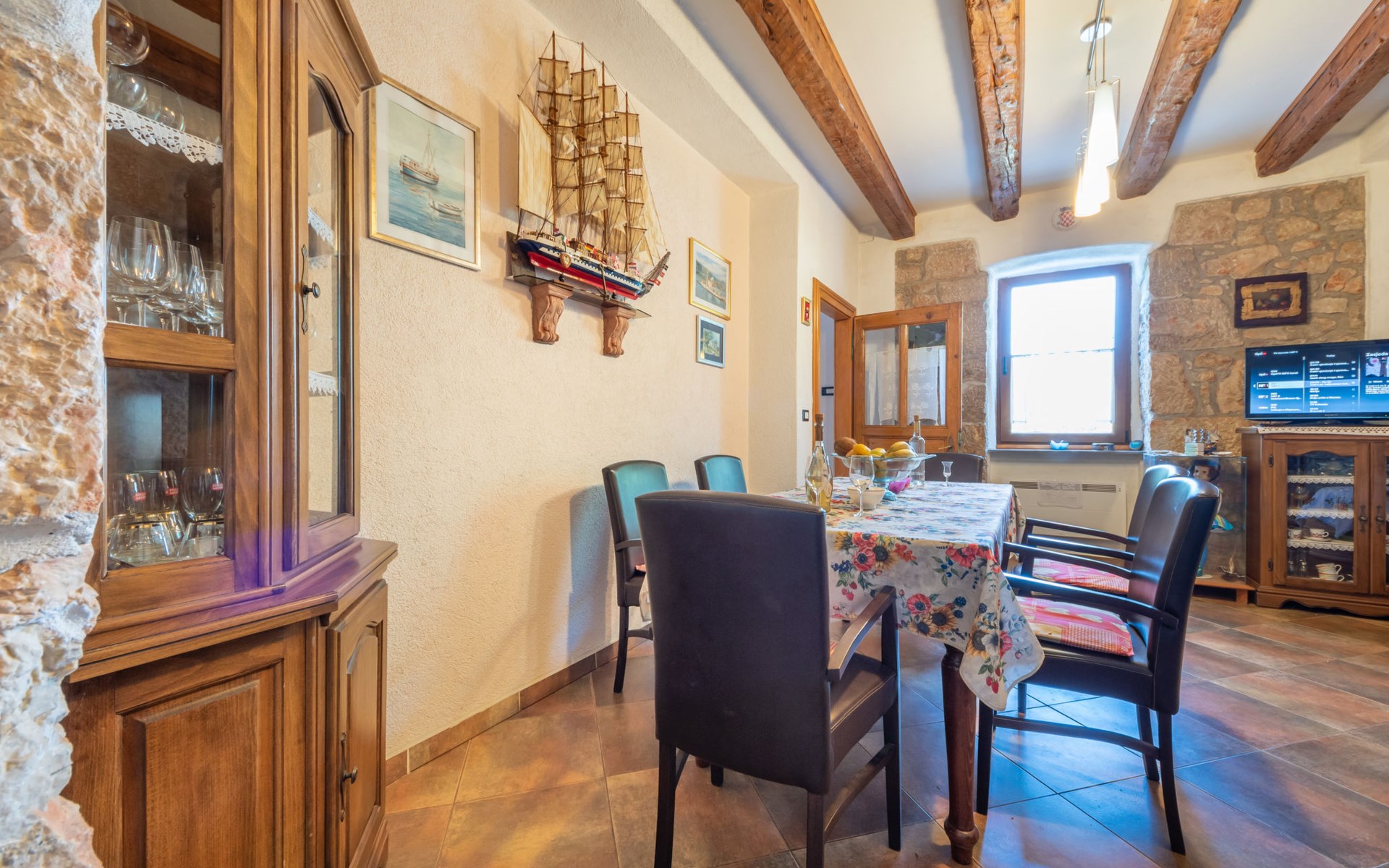 Kras: Mooi, comfortabele eengezinswoning "Tuscany for Two". 3.5 km van het centrum van Dobrinj, 9 km van het centrum van Malinska, 10 km van het centrum van Krk, zonnige ligging, 9 km van zee, 9 km van het strand, te midden van groen. Voor alleengebruik: terrein 2.700 m2 (omheind) met gazon 400 m2 bomen, mooie tuin ter ontspanning. Buitendouche, terras (6 m2), tuinmeubelen, barbecue, kinderspeelplaats (glijbaan, schommel). In het huis: internetaansluiting, wasmachine. Beschikbaar: kinderfietsen. Overdekte parkeerplaats bij het huis op het terrein. Winkel 500 m, supermarkt 8.5 km, restaurant 3 km, bushalte 7.3 km, kiezelstrand 8.5 km, betonnen strand 8.5 km. Wandelroutes 200 m vanaf het huis, fietspad 250 m. Attracties in de buurt: Biserujka cave, Frankopan castle Krk, Zipline Edison, Franciscan monastery island Košljun. Eerste verdieping is afgesloten en niet bewoond.