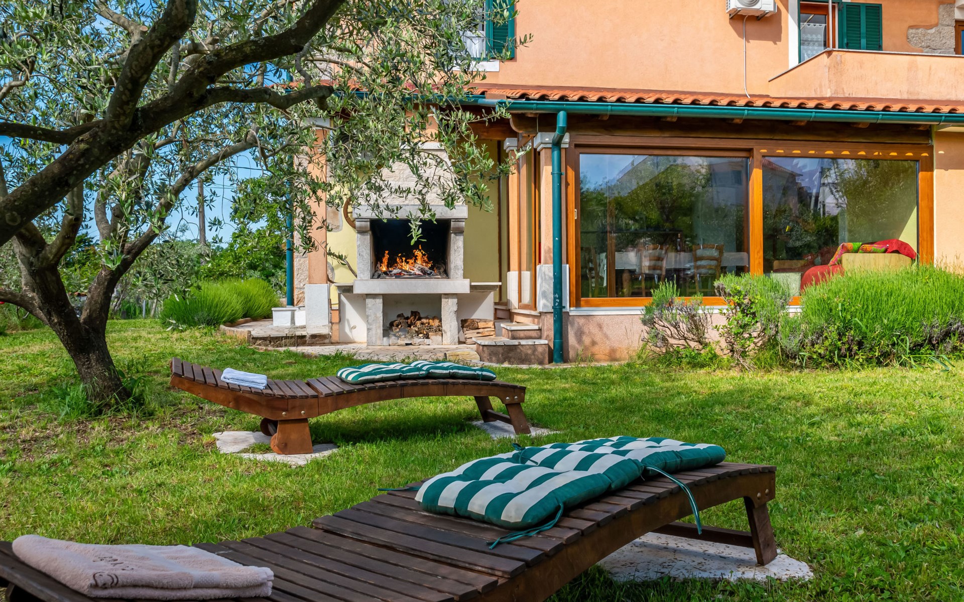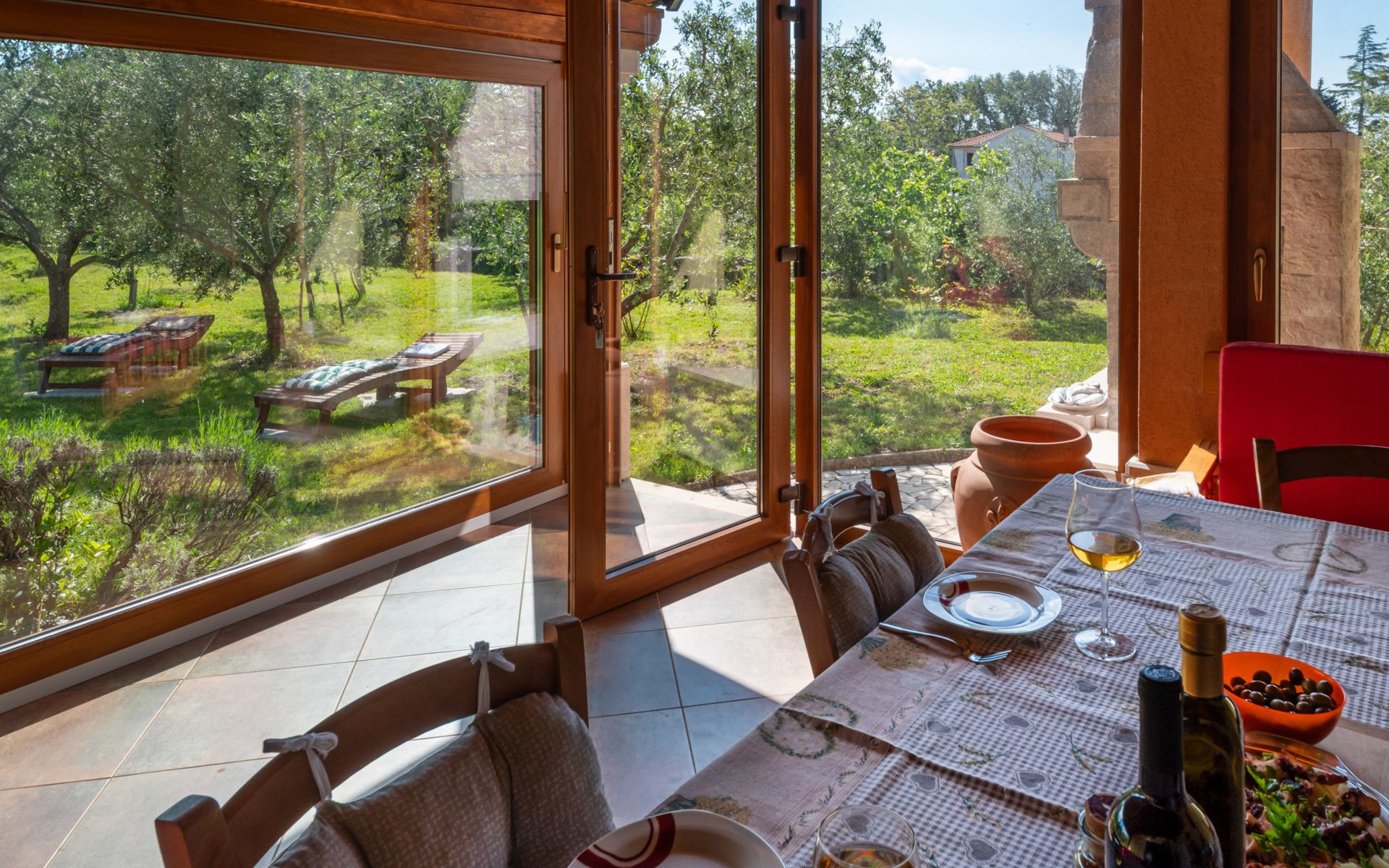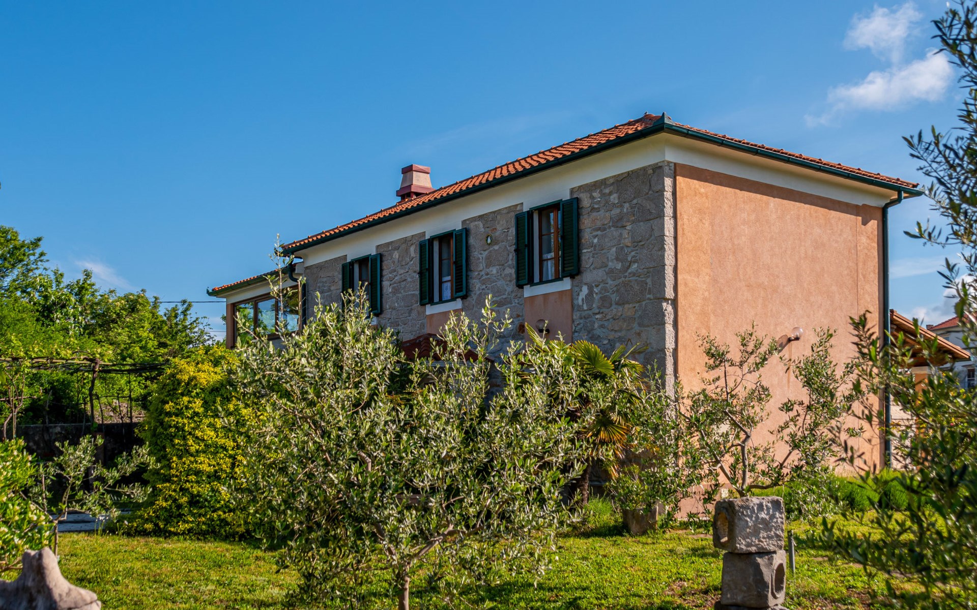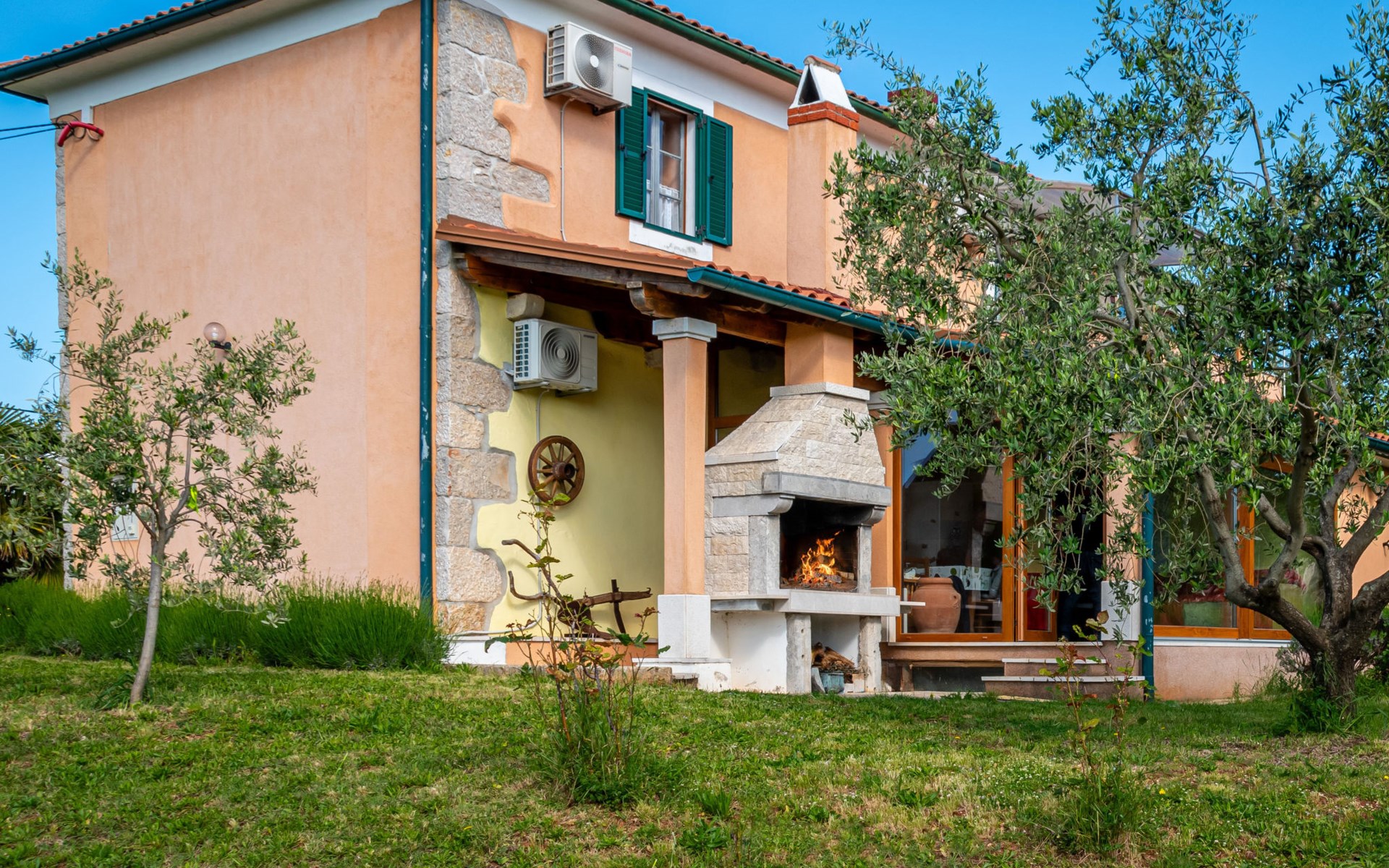 Kras: Mooi, comfortabele eengezinswoning "Tuscany for Two". 3.5 km van het centrum van Dobrinj, 9 km van het centrum van Malinska, 10 km van het centrum van Krk, zonnige ligging, 9 km van zee, 9 km van het strand, te midden van groen. Voor alleengebruik: terrein 2.700 m2 (omheind) met gazon 400 m2 bomen, mooie tuin ter ontspanning. Buitendouche, terras (6 m2), tuinmeubelen, barbecue, kinderspeelplaats (glijbaan, schommel). In het huis: internetaansluiting, wasmachine. Beschikbaar: kinderfietsen. Overdekte parkeerplaats bij het huis op het terrein. Winkel 500 m, supermarkt 8.5 km, restaurant 3 km, bushalte 7.3 km, kiezelstrand 8.5 km, betonnen strand 8.5 km. Wandelroutes 200 m vanaf het huis, fietspad 250 m. Attracties in de buurt: Biserujka cave, Frankopan castle Krk, Zipline Edison, Franciscan monastery island Košljun. Eerste verdieping is afgesloten en niet bewoond.