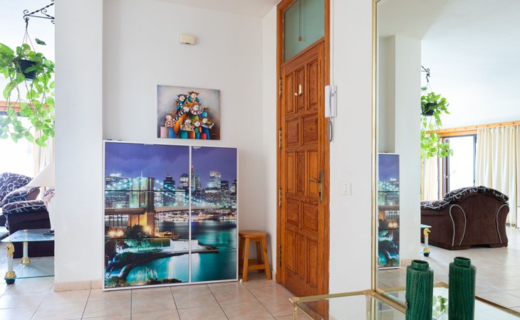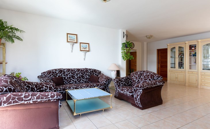 If you want to turn your back on winter and devote yourself to sun, sea and absolute relaxation, you should spend your holiday in this luxury holiday flat. This holiday flat is also available for long-term tenants and is located in a residential complex with 3 pools and sun loungers - in the 1st row by the sea.here you holiday directly by the sea - on the sunny south coast of Tenerife - enjoy a beautiful view of the Atlantic Ocean and Teide - and one of the pools is heated from November to April! here in Costa del Silencio is just before Las Galletas. There is a supermarket near the holiday flat. There are also various restaurants within walking distance. The harbour and the many surrounding cafes, shops, inexpensive restaurants and bakeries are just a short walk away, and from the centrally located bus stop in the centre of the village you can easily reach the nearby coastal towns such as Los Cristianos, Playa de las Americas and El Médano, where there is no typical sandy beach, but breathtaking cliffs and steep rocks that make the coast interesting. In some places there are stepladders from where you can safely enter the sea. This side of Tenerife is also ideal for cycling due to its flat terrain. There are 2 golf courses nearby and at the harbour there are many excursion boats and other water sports facilities.Completely renovated in 2010, this 140 m² luxury flat is fully equipped. It has two bedrooms, one of which has a large wardrobe and a double bed (mattress 180 x 200cm) and the other is furnished with a 150 x 200cm bed and LCD TV. In the living room you will find a dining area and a cosy sofa set. The kitchen is equipped with all the necessary appliances and cooking utensils such as an oven, four-ring ceramic hob, microwave, large fridge with large freezer compartment, coffee machine, toaster and much more. There is also an iron, satellite TV, a DVD player and free Internet access. One bathroom is equipped with a shower, the second with a bathtub and washing machine. Due to a special ventilation system, no air conditioning is required in the flat. You can enjoy the view of the sea from both the living room and the bedroom.The flat also has two glazed balconies (loggias) with a breakfast table, which offer wonderful panoramic views of the pool, sea and Teide. The car park in front of the door is public.On the island of TenerifeProperty description Directly by the sea in first line residential complex with 3 pools and lift USB stick for internet access can be rented Satellite TV, DVD player and 2 sun loungers Parking space in front of the flat Bed linen and towels available A hire car is recommended. If you want to turn your back on winter and devote yourself to sun, sea and absolute relaxation, you should spend your holiday in this luxury flat. This flat is available for long-term rentals. It can be booked for stays of 90 nights or more. The flat is a maximum of 20 metres from the sea. There is a lift in the building. The luxury flat is located in a residential complex with 3 pools and sun loungers in the first row by the sea in Costa del Silencio - Tenerife South Coast. Here you can enjoy views of the Atlantic Ocean and Mount Teide. Nearby you will find restaurants, bars, supermarket, bank, doctor, hairdresser and a small shopping centre. There is also a golf course, bus station and car hire 100 metres away. The airport is about 15 minutes away by car, so you can relax here in absolute tranquillity with the sea as light background music. Restaurants and shopping facilities nearby Restaurants are located in front of the house, shopping facilities are only about 150 metres away. Beaches in the neighbourhood The beach in Las Galletas is just a few minutes' walk away. There is a small natural sea water basin 50 metres from the flat where you can also swim. ESFCTU00003801600008023500000000000000A-38-4-0008