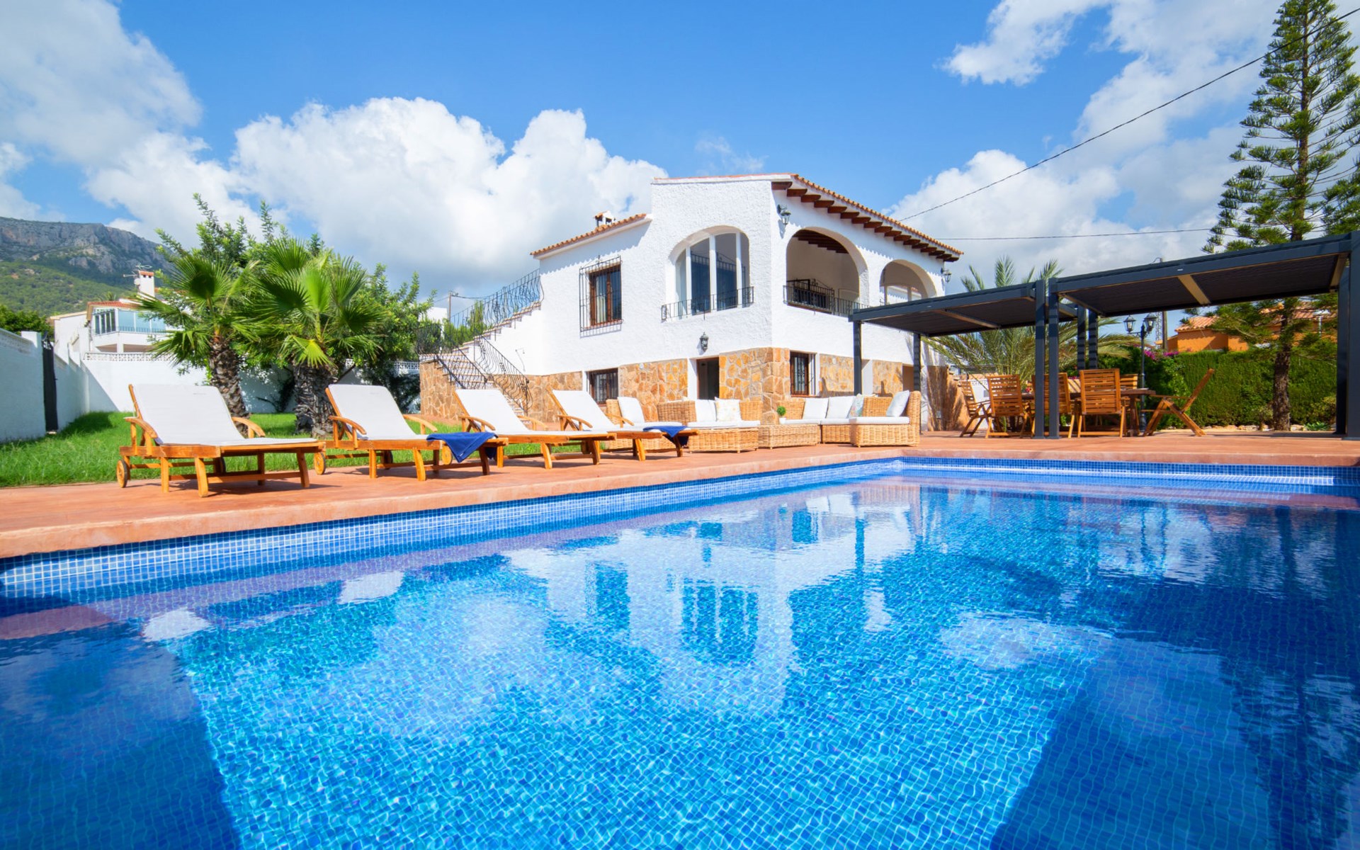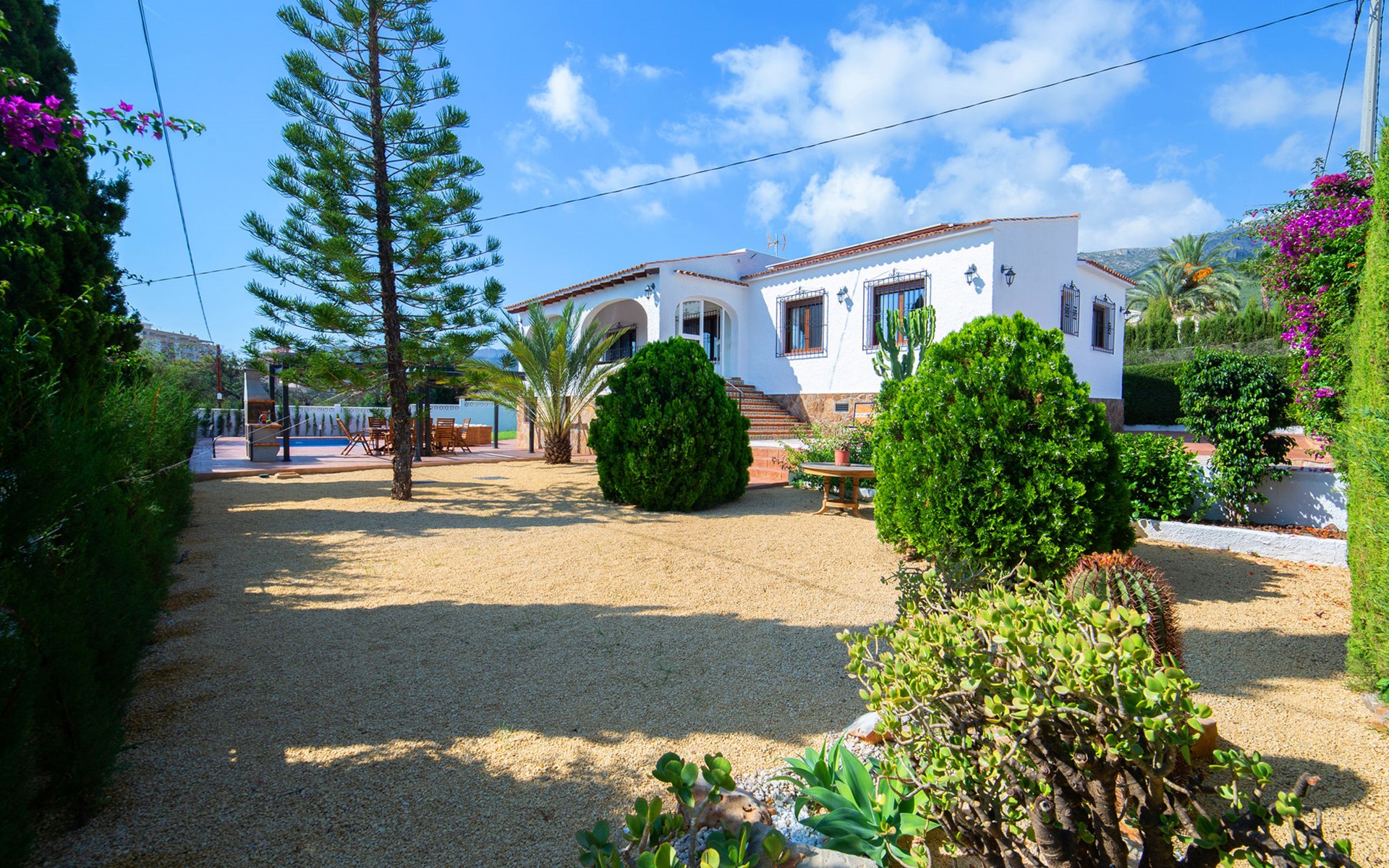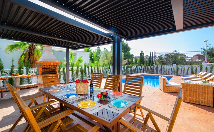 Mooi, gezellige villa "Agave", van 2 verdiepingen. 1.4 km van het centrum van Calpe, rustige, zonnige ligging villa wijk, gebied met weinig verkeer, 1.5 km van zee, 1.5 km van het strand. Voor alleengebruik: terrein 860 m2 (omheind), mooie, verzorgde tuin, ligweide, openluchtzwembad (8 x 4 m, seizoensgebonden beschikbaarheid: 01.Jan. - 31.Dec.) met zout-elektrolyse. Buitendouche, terras, tuinmeubelen, barbecue. Levensmiddelenwinkel, supermarkt 700 m, restaurant 800 m, bushalte "Parada Bus" 550 m, zandstrand "Playa Arenal" 1.6 km. Jachthaven 3.4 km, jachthaven 3.4 km, tennis 1.5 km. Attracties in de buurt: Aqualandia, Mundomar, Terra MÃtica, Terra Natura, Les Fonts de l'Algar, Castillo de Guadalest. De eigenaar accepteert geen jeugdgroepen.