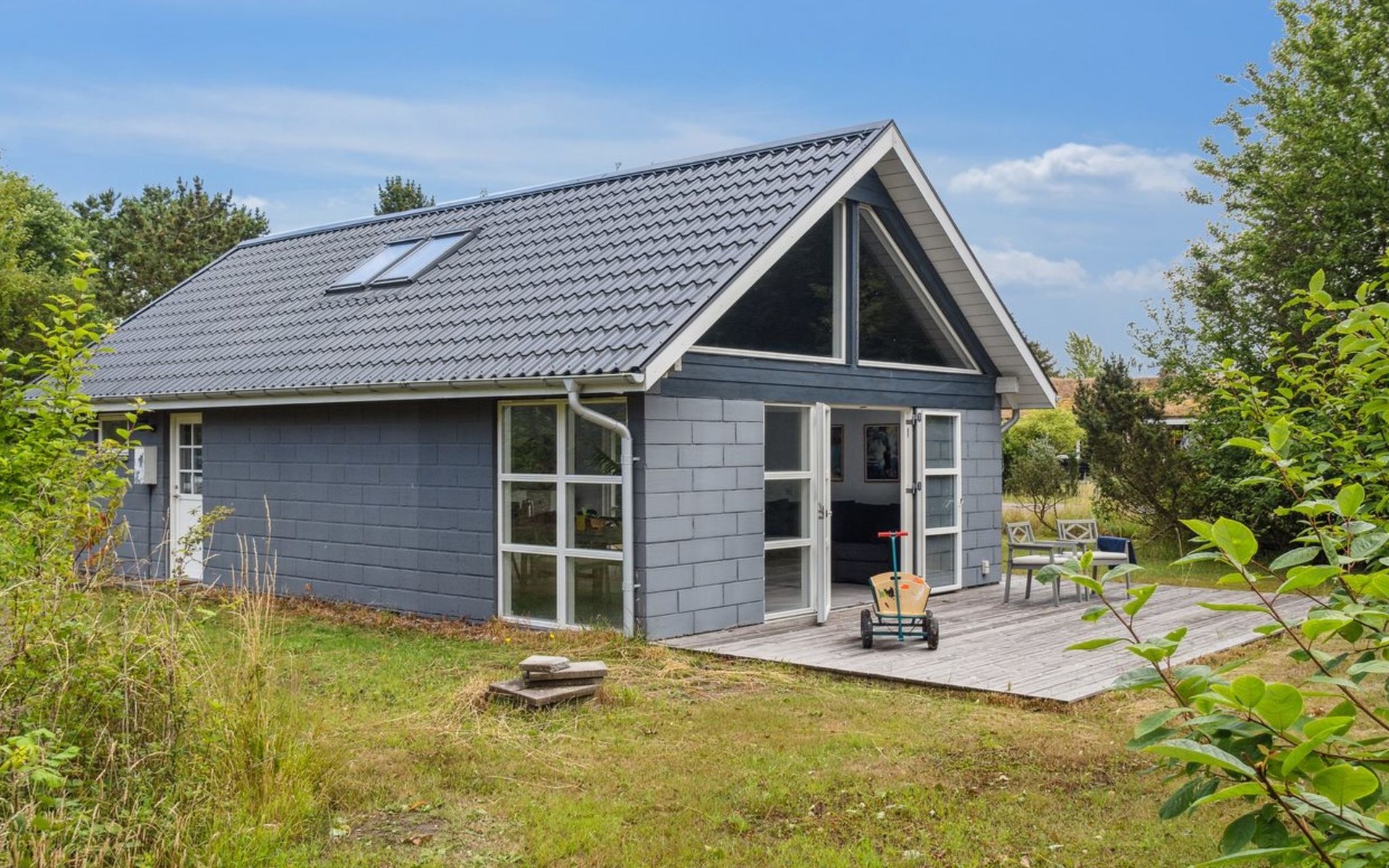 Eengezinswoning, bouwjaar 1973. 400 m van zee. Voor alleengebruik: wild terrein 800 m2, parkeerplaats bij het huis. Levensmiddelenwinkel 2 km. De eigenaar accepteert geen jeugdgroepen.