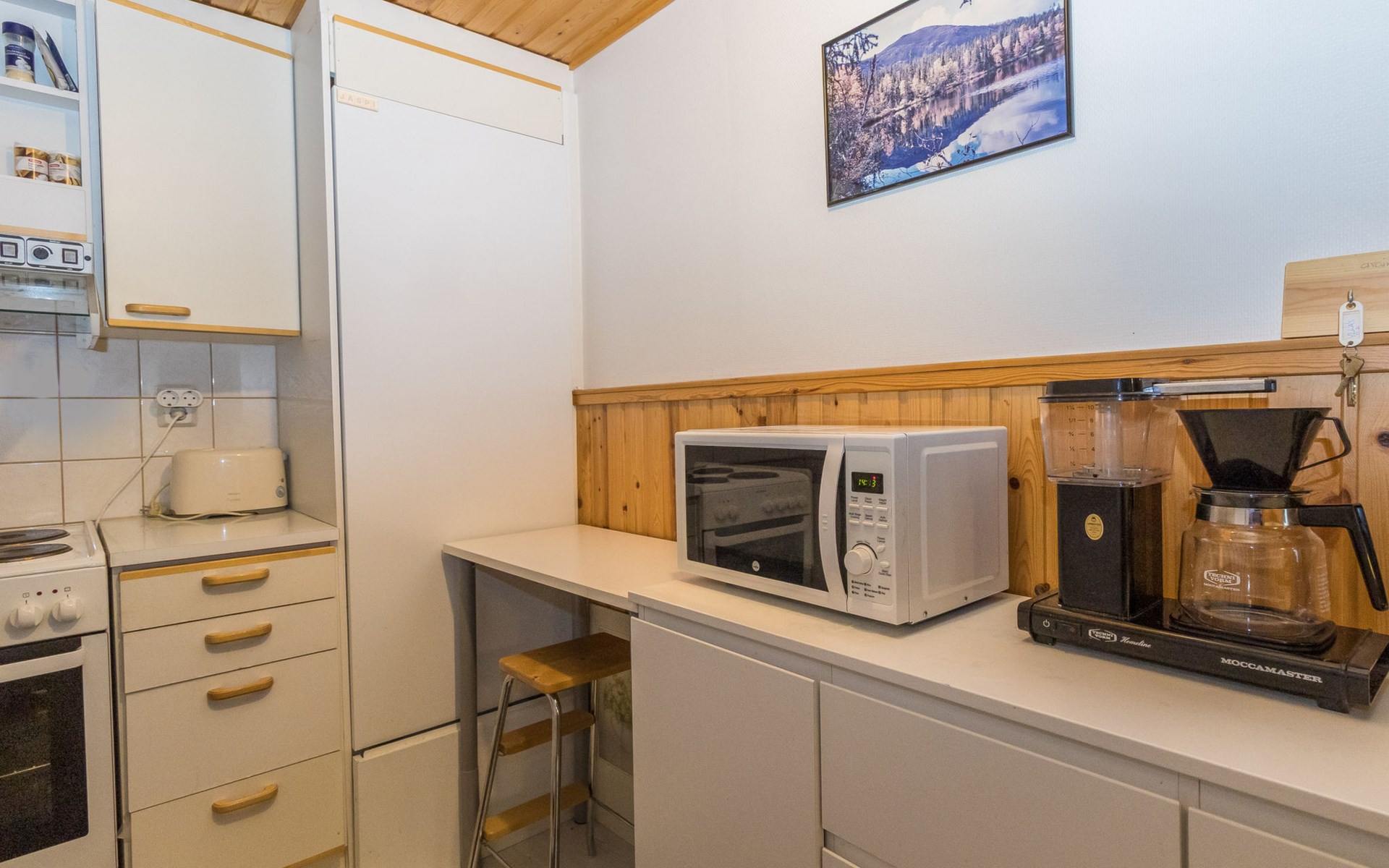 This terraced apartment in a quiet area was built in 1988 and exudes an authentic cottage atmosphere combined with practical amenities. The generously sized living room and kitchen are the heart of the apartment – the fireplace provides warmth, which is perfect for enjoying winter evenings or relaxing after summer days.