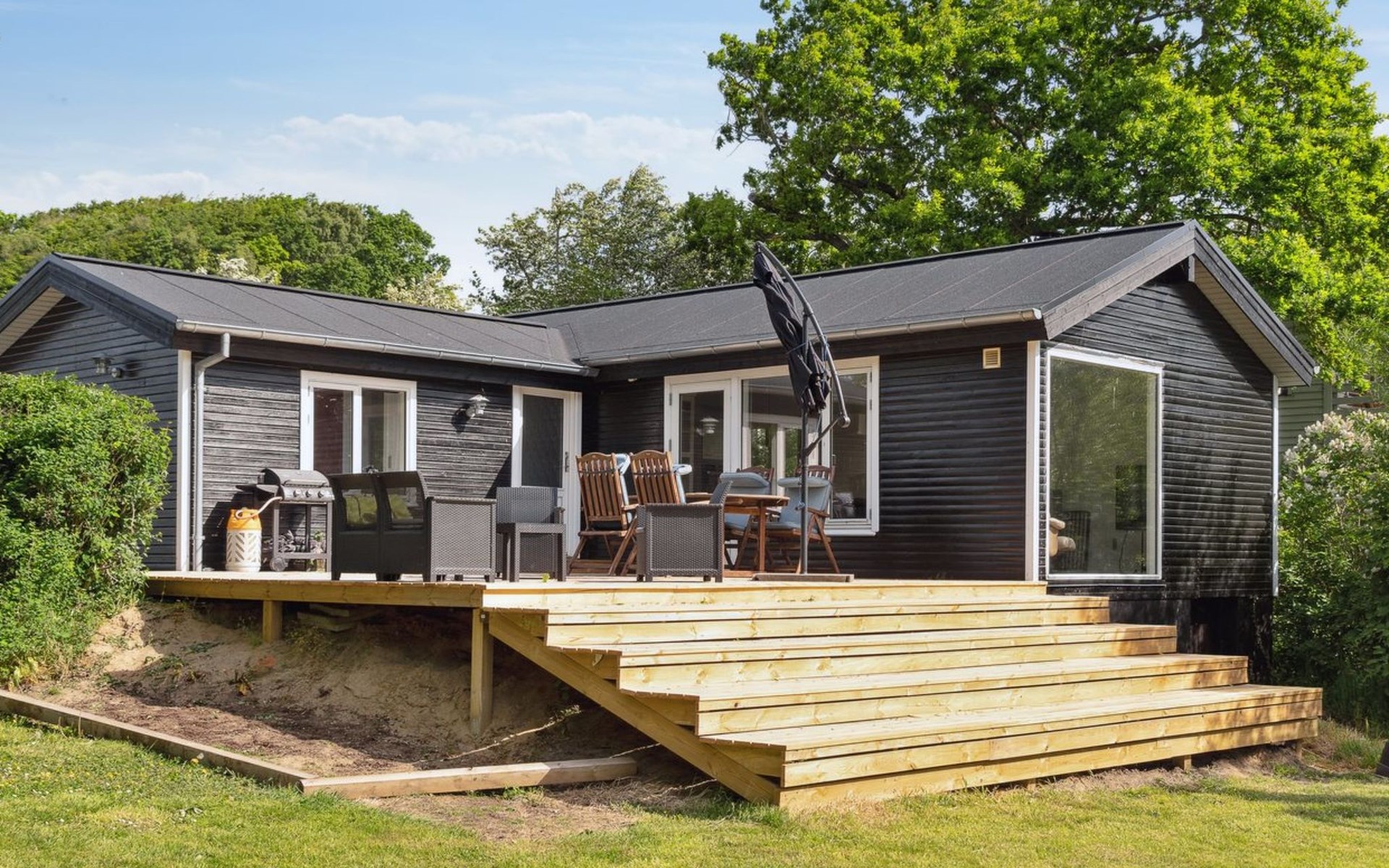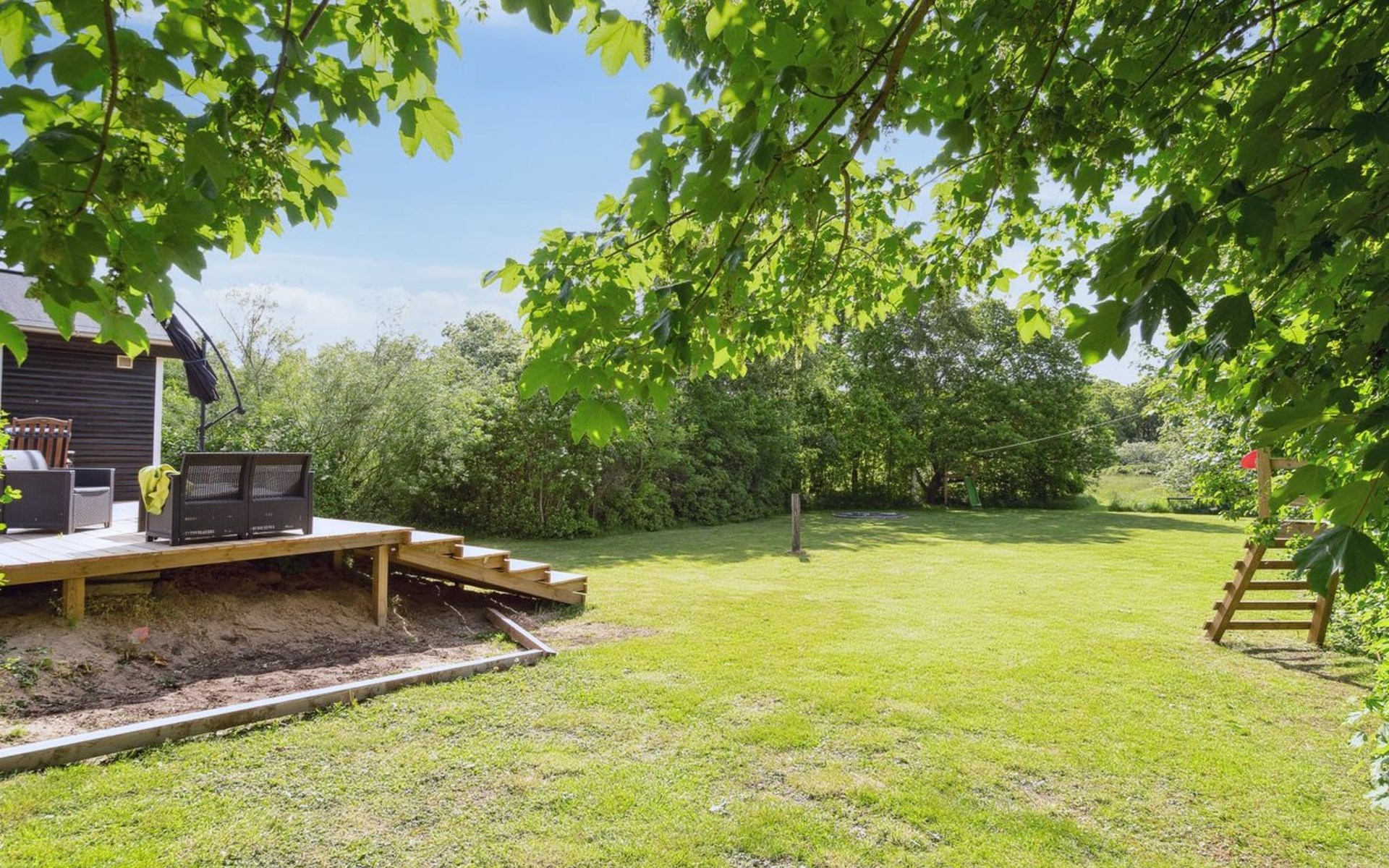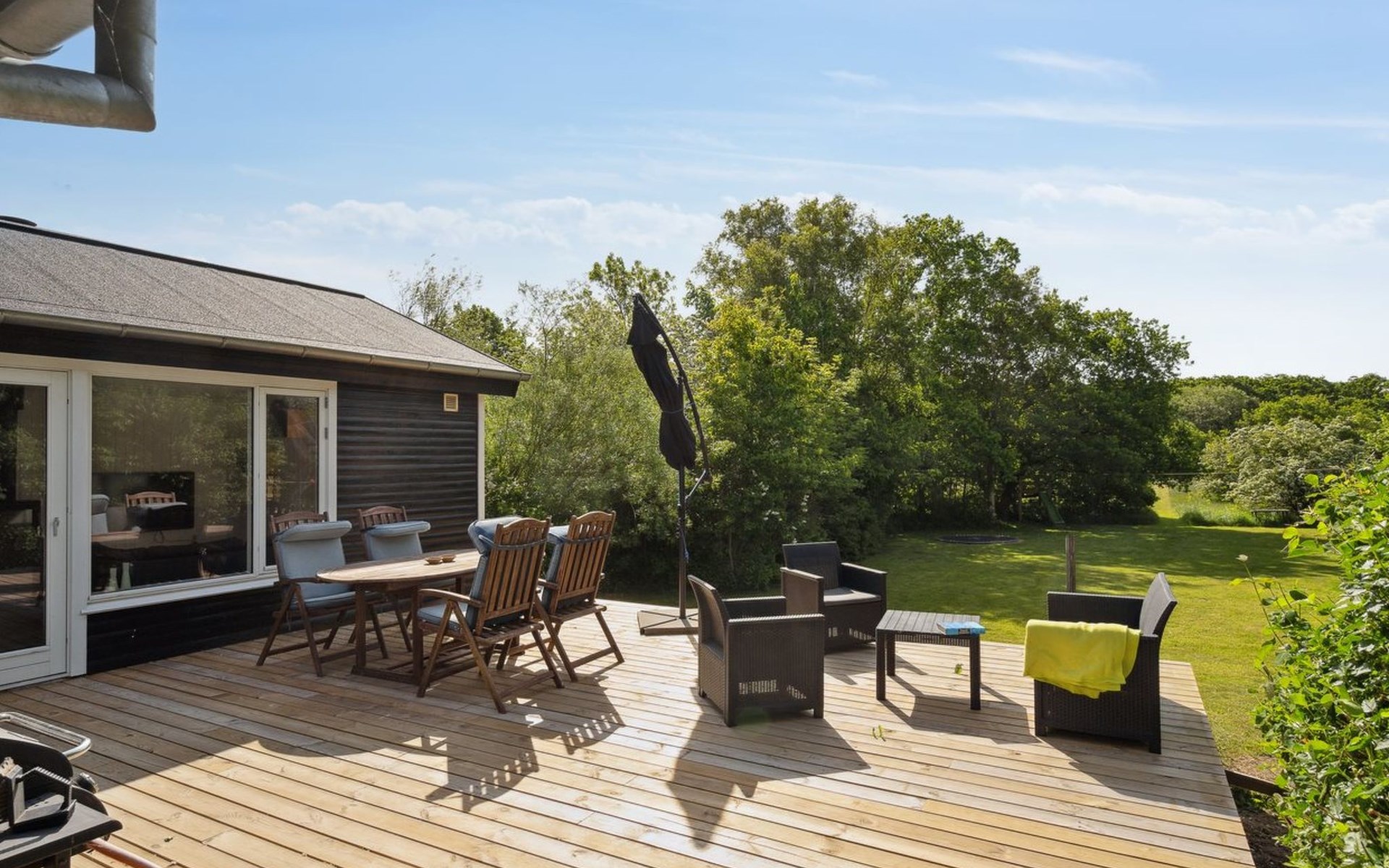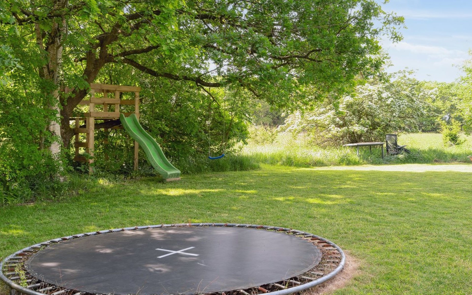 Eengezinswoning, bouwjaar 1978. Voor alleengebruik: wild terrein 2.900 m2. Barbecue (glijbaan). In het huis: trampoline. Parkeerplaats bij het huis. Levensmiddelenwinkel 6.6 km. Golfterrein 11 km. De eigenaar accepteert geen jeugdgroepen.