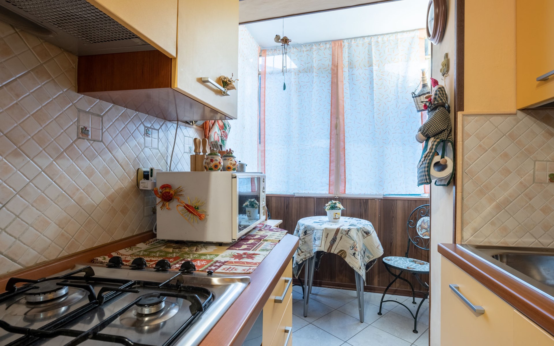Rustieke flatgebouw "Cristallo", 1.009 m boven zeeniveau. In het centrum van Limone Piemonte, in een woonwijk, 400 m van het skigebied. In de winter sneeuwkettingen aanbevolen. Parkeerplaats bij het huis. Supermarkt 700 m, restaurant 200 m, bar 270 m, bushalte 1 km, treinstation 1.3 km. Skiverhuur 220 m, skischool 240 m. Attracties in de buurt: Cuneo 29 km, Colle di Tenda 18 km. Bekende skigebieden kunnen gemakkelijk worden bereikt: Cabinovia Severino Bottero 350 m, Riserva Bianca 850 m, Maneggio 400 m. Geen lift.