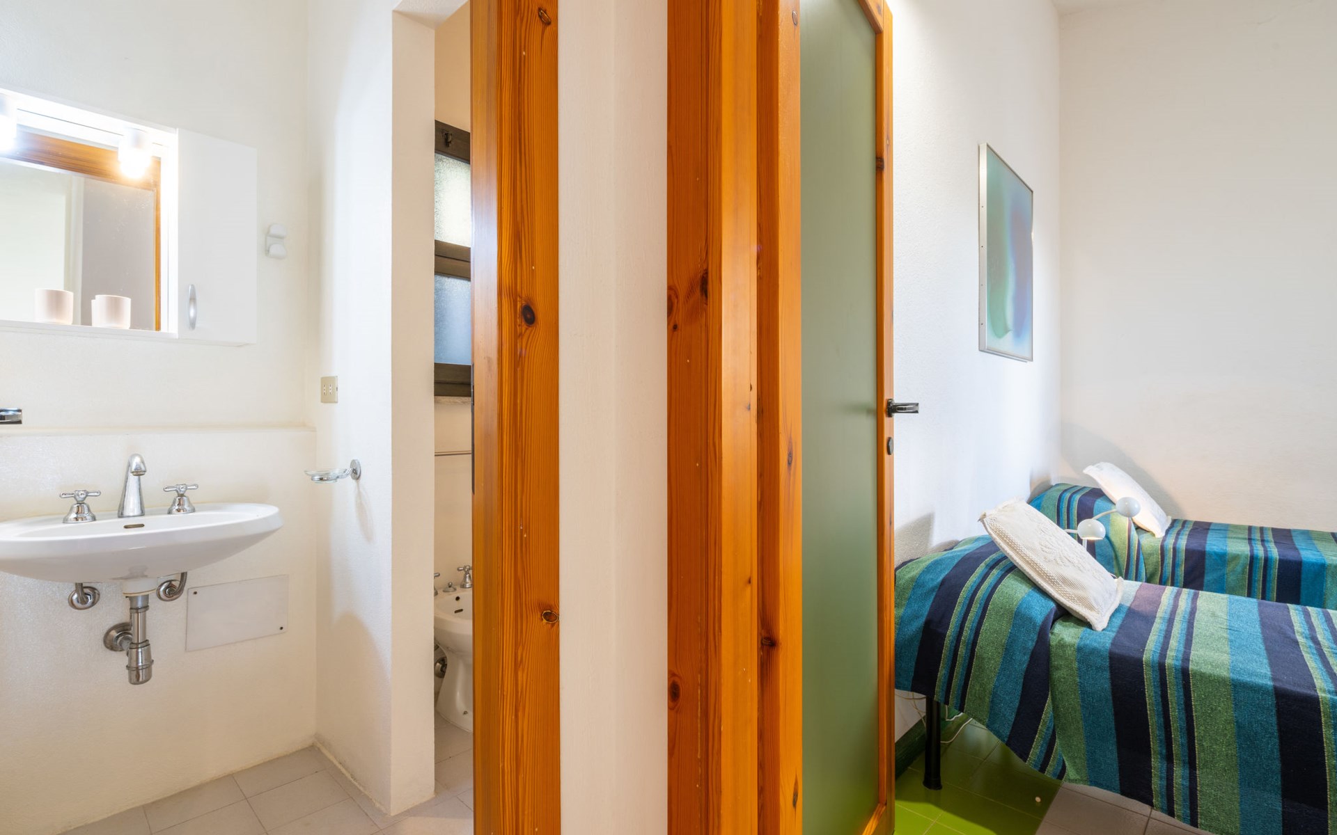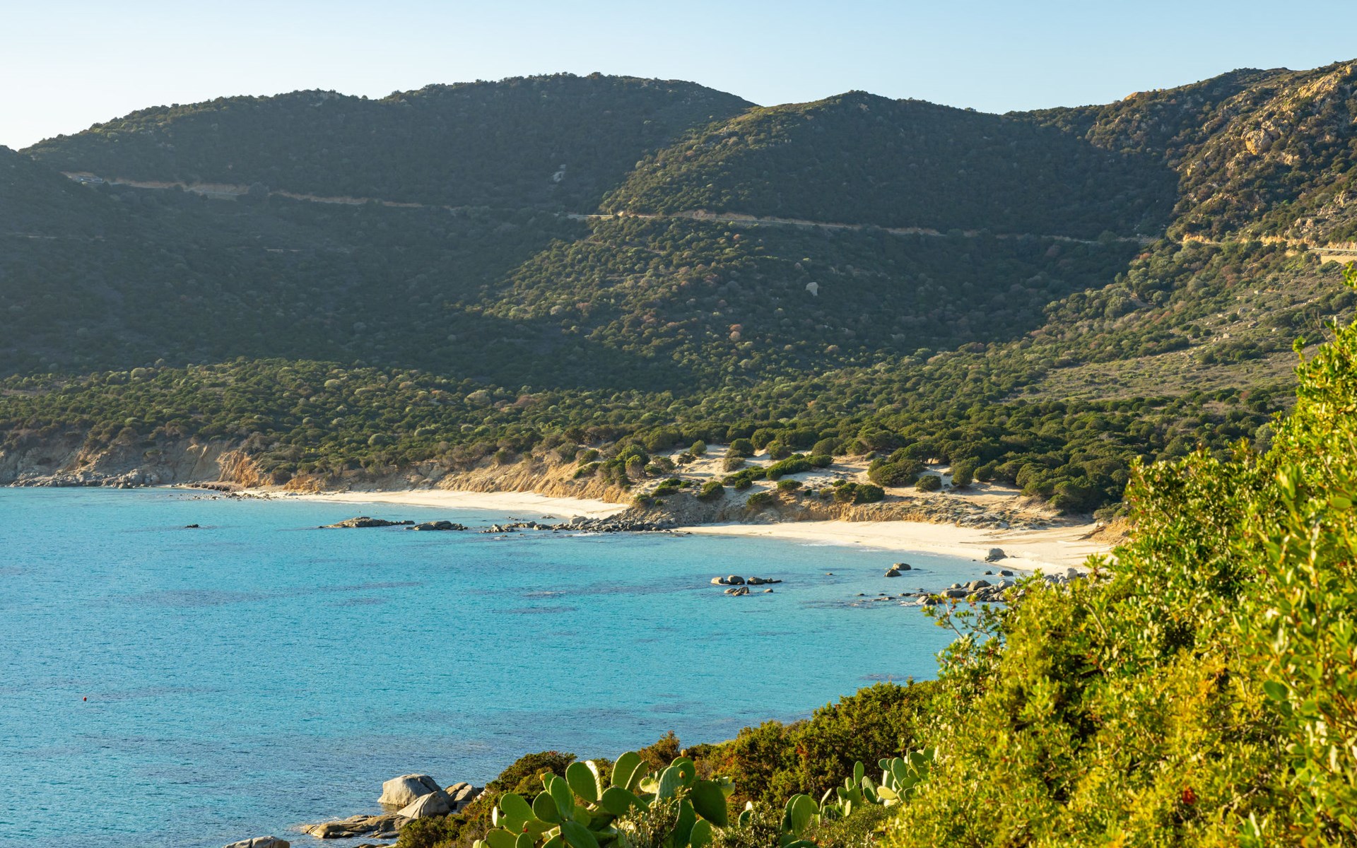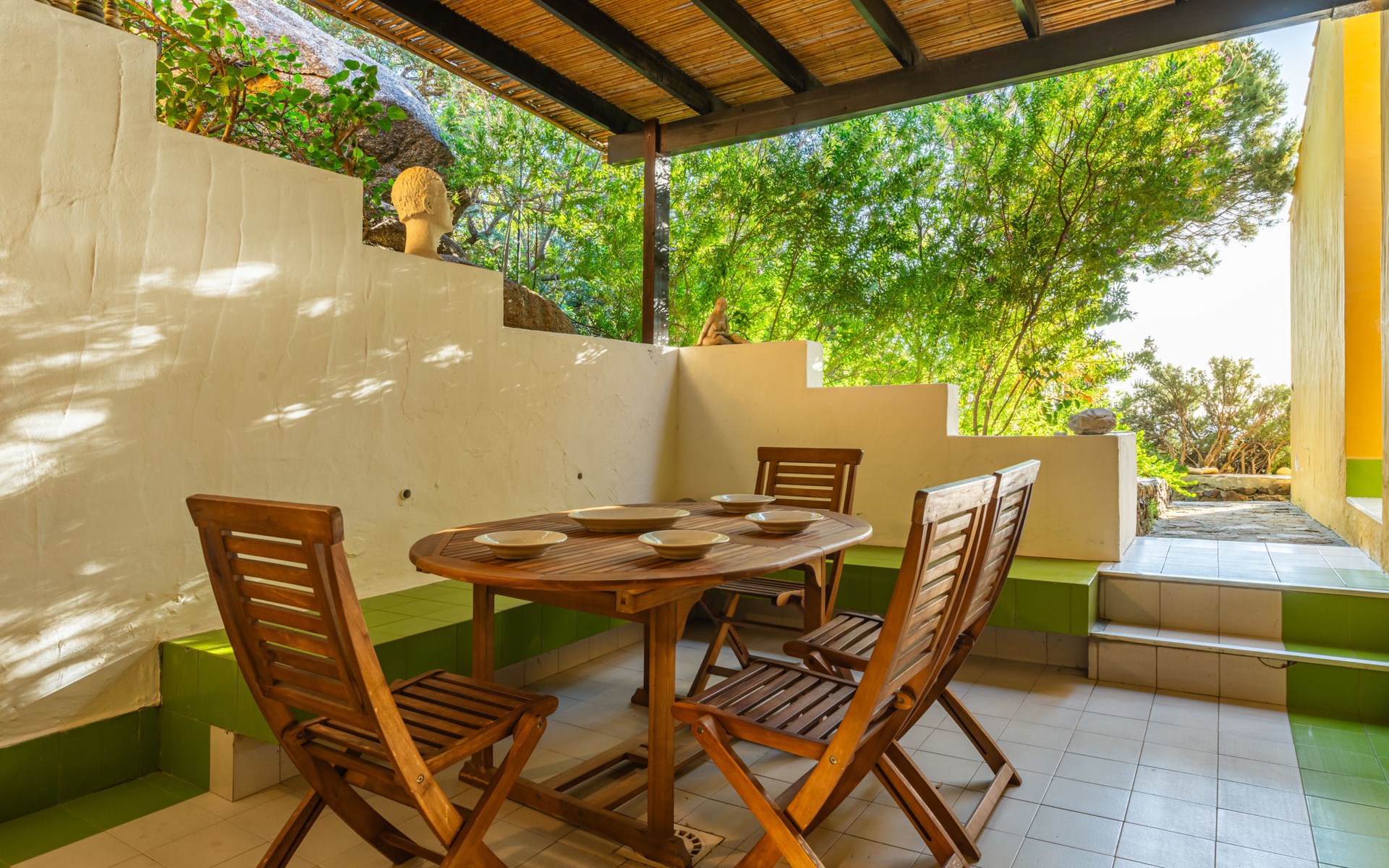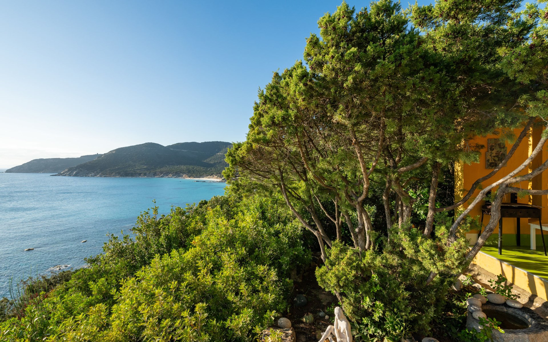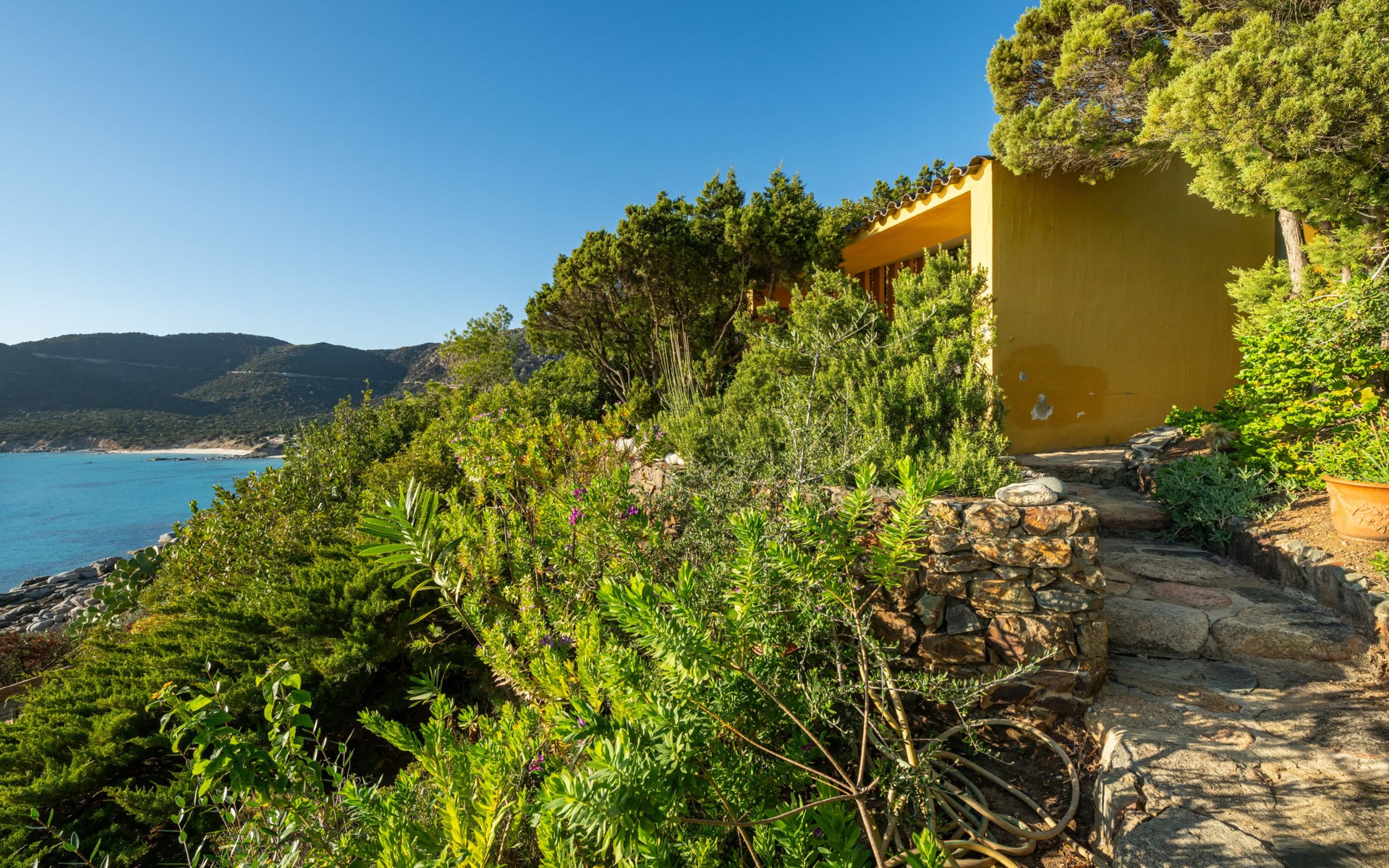 Mooi residentie "Capo Boi", omgeven door bomen en weiden. Aan de rand van de plaats, 6 km van het centrum van Villasimius, 300 m van zee, 300 m van het strand, directe toegang tot het strand, te midden van groen. Voor alleengebruik: terrein (omheind). 500 m lange steile toegangsweg (onverharde weg). Parkeerplaats. Supermarkt 2 km, restaurant 2 km, bushalte "Capo boi" 300 m, station "cagliari" 50 km, zandstrand "Capo Boi" 300 m. Jachthaven 10 km, golfterrein (18 holes) 6 km. Attracties in de buurt: Punta Molentis 12 km, Costa Rei 20 km, Cagliari 50 km. Auto noodzakelijk. Bewaakt vakantiecomplex. Gesloten residentie met een elektrische deur.