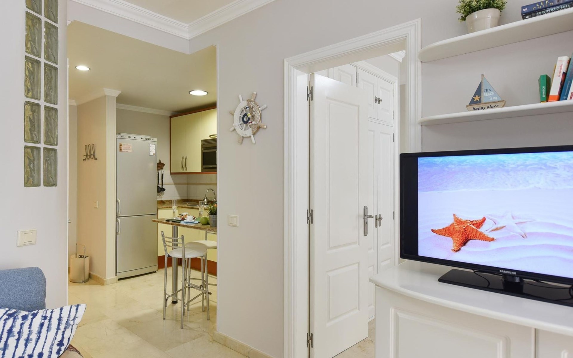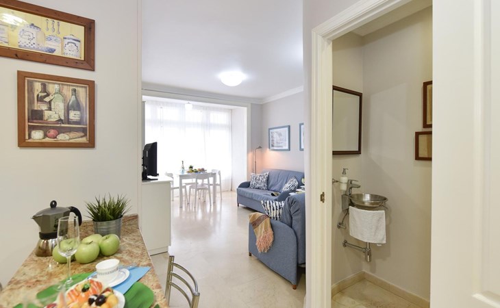 Eenvoudig, comfortabel flatgebouw "Apartment at Las Canteras Beach". Las Canteras, Las Palmas de Gran Canaria Las canteras, rustige ligging, direct aan het strand. In het huis: Internet (WiFi), lift. Winkel, levensmiddelenwinkel, winkelcentrum, restaurant 100 m, bushalte "Fernando Guanarteme" 140 m, zandstrand "100". Auto noodzakelijk. Geschikt voor families, geschikt voor senioren. De eigenaar accepteert geen jeugdgroepen. Vliegveld 25 km van het huis. De omgeving is gevoelig voor geluidsoverlast. Gelieve geen lawaai te maken en de rust te bewaren.